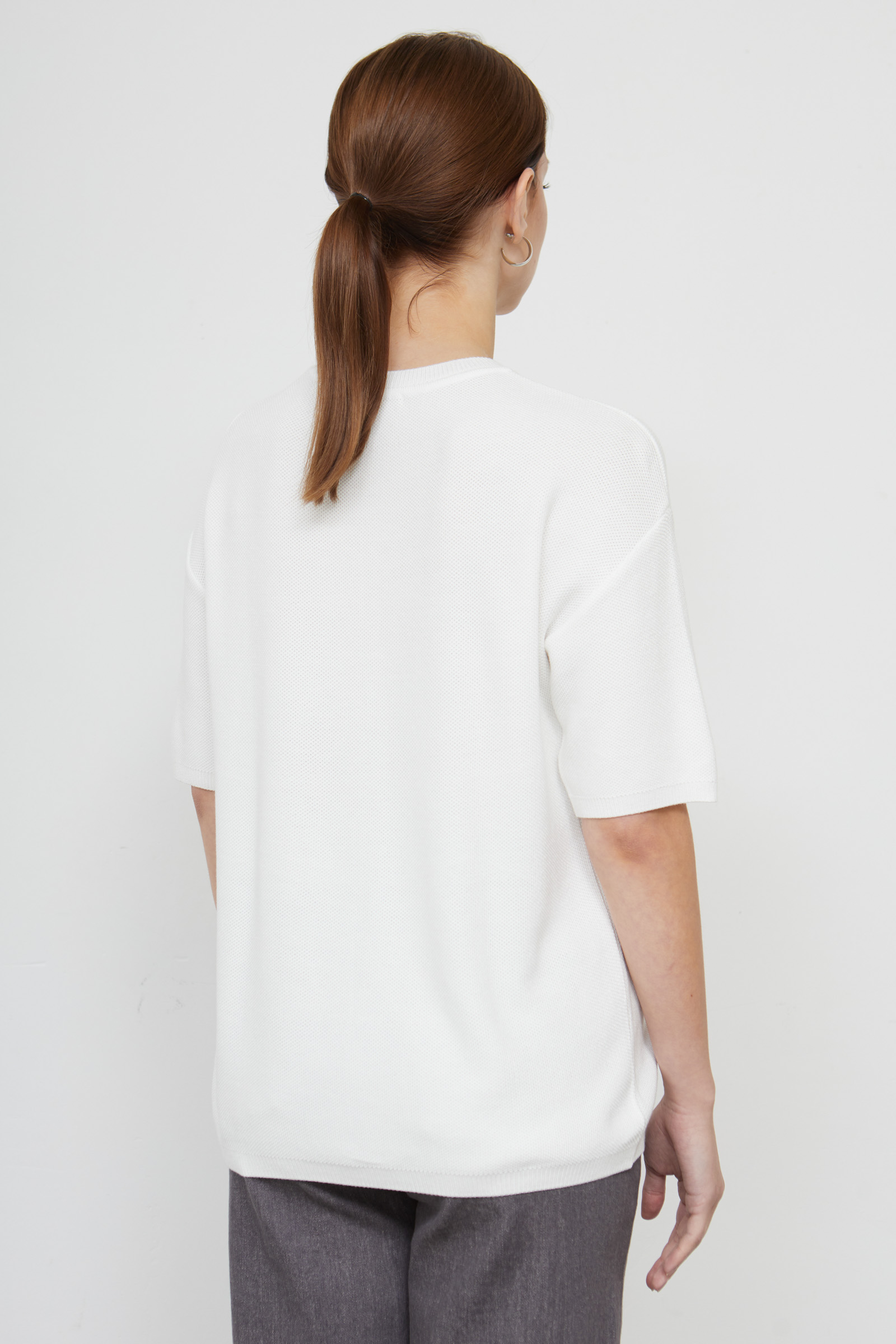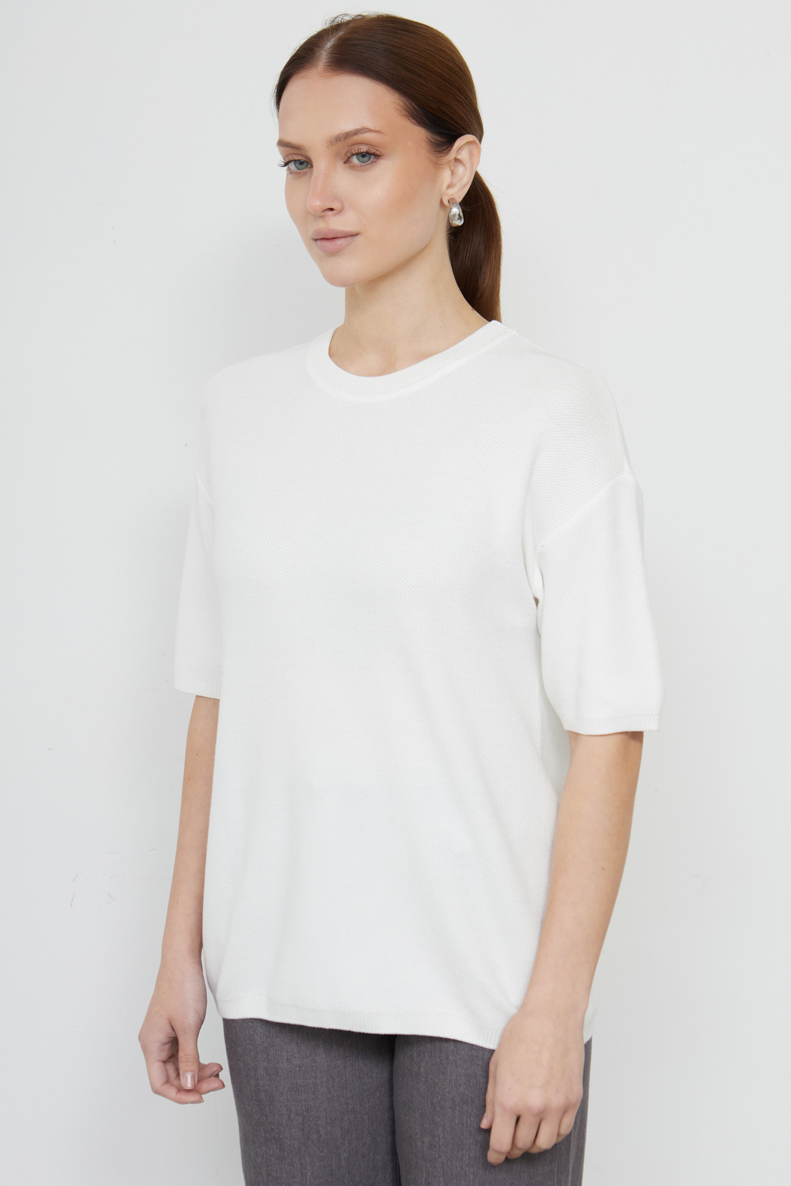 Джемпер oversize из мягкого вязаного трикотажа с короткими рукавами.