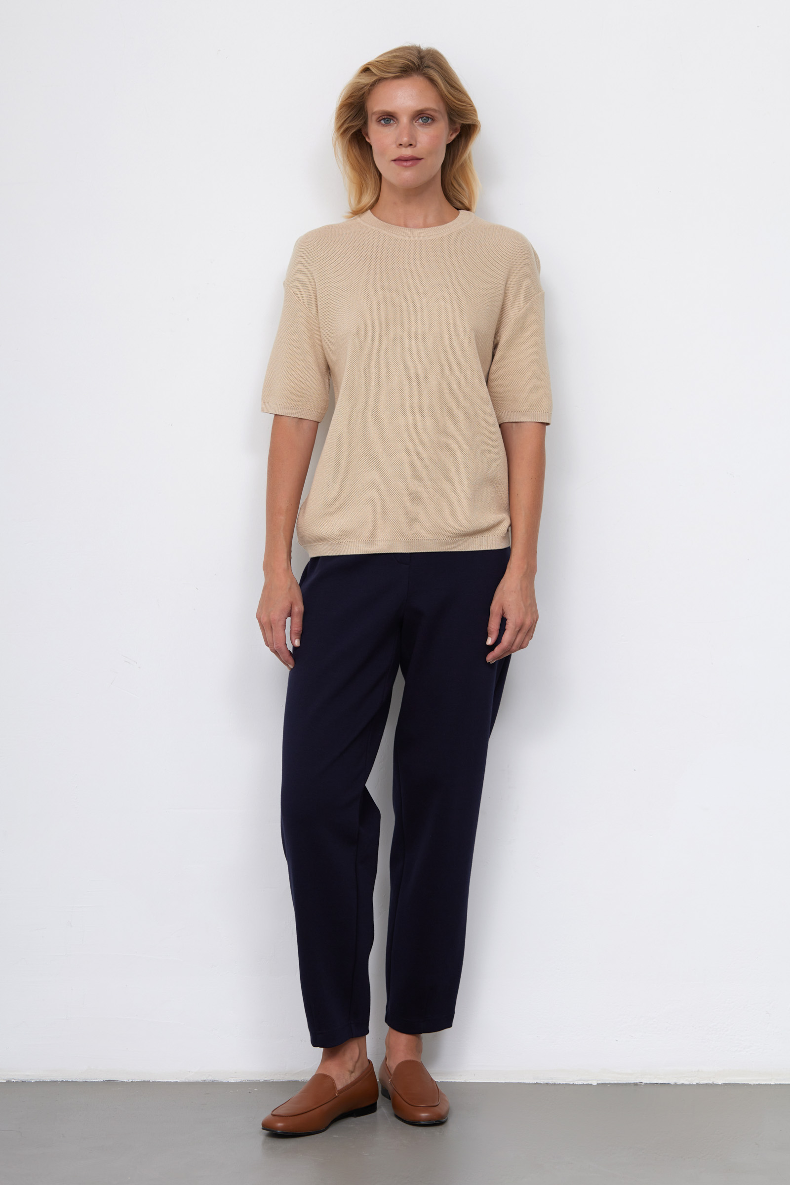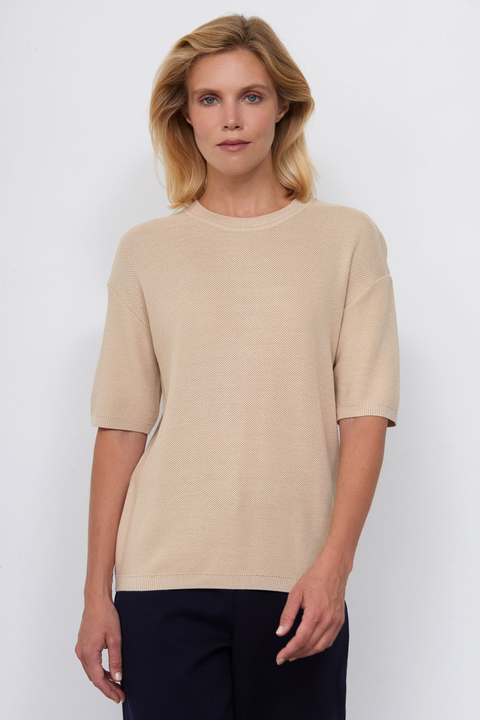 Джемпер oversize из мягкого вязаного трикотажа с короткими рукавами.