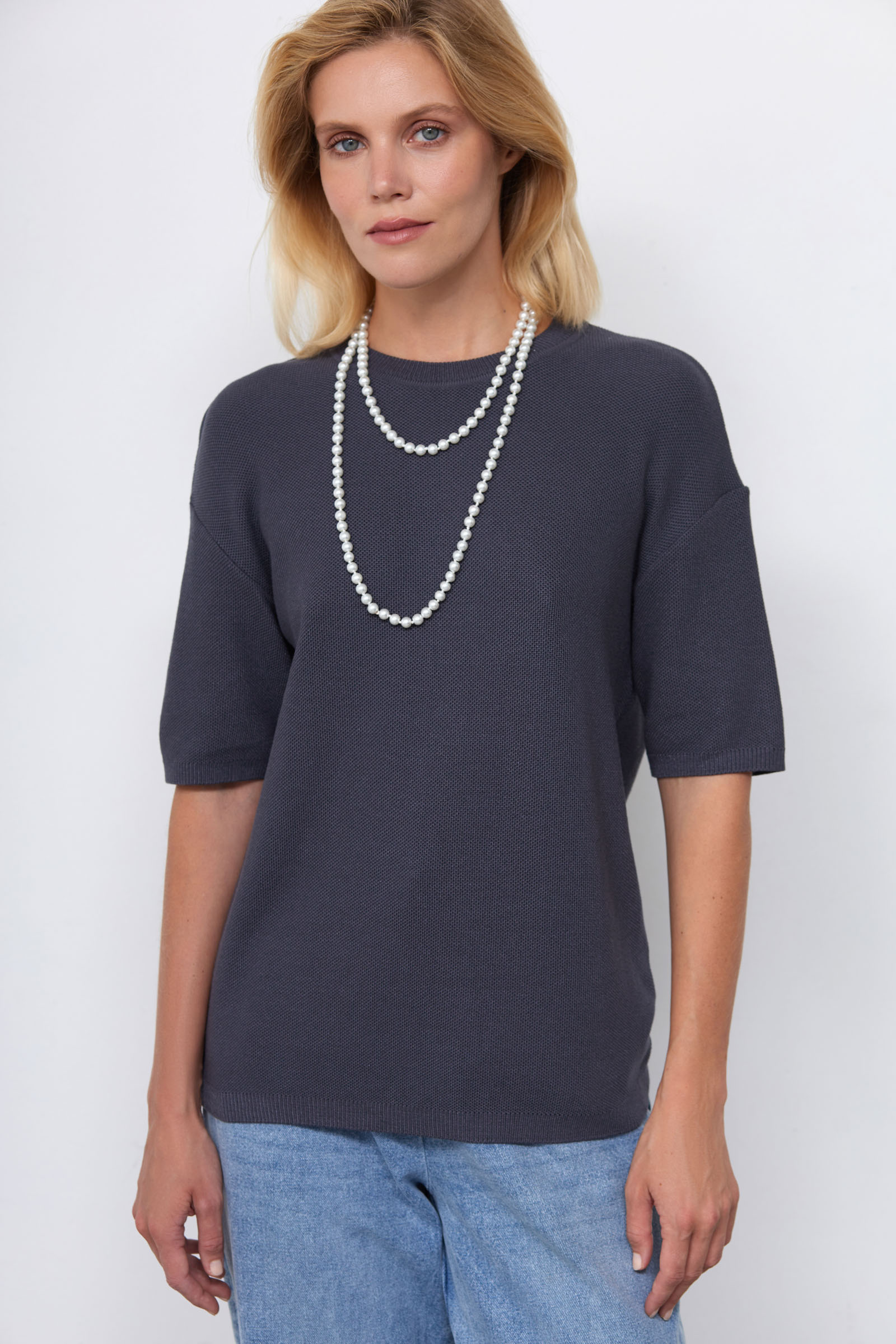 Джемпер oversize из мягкого вязаного трикотажа с короткими рукавами.