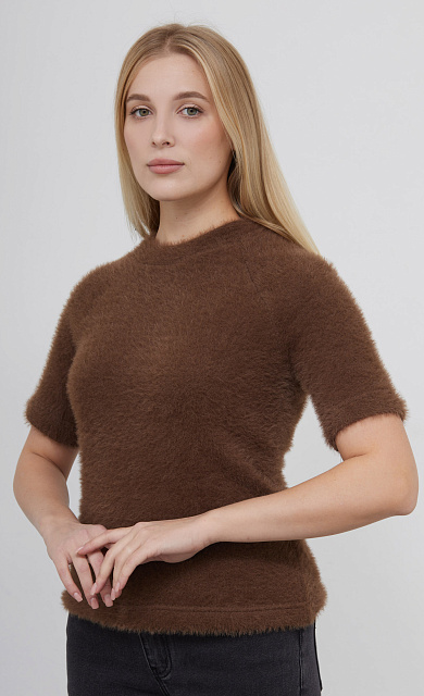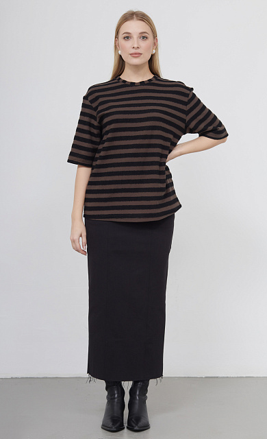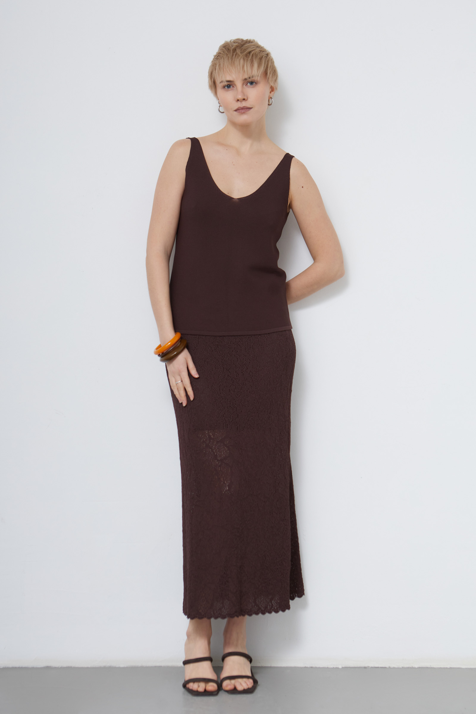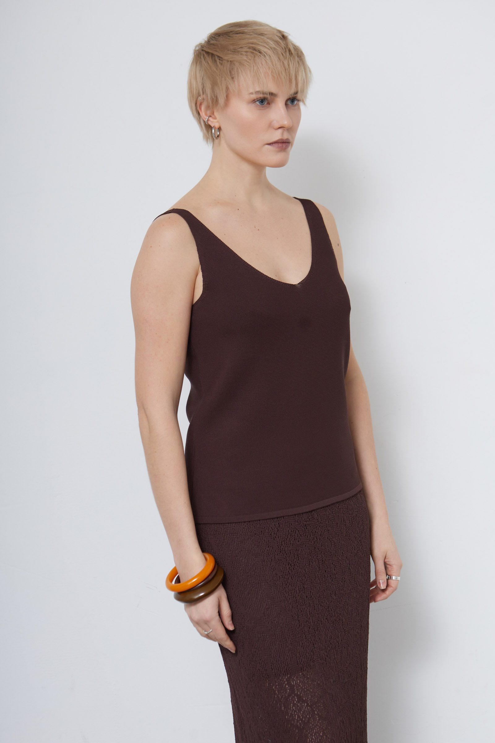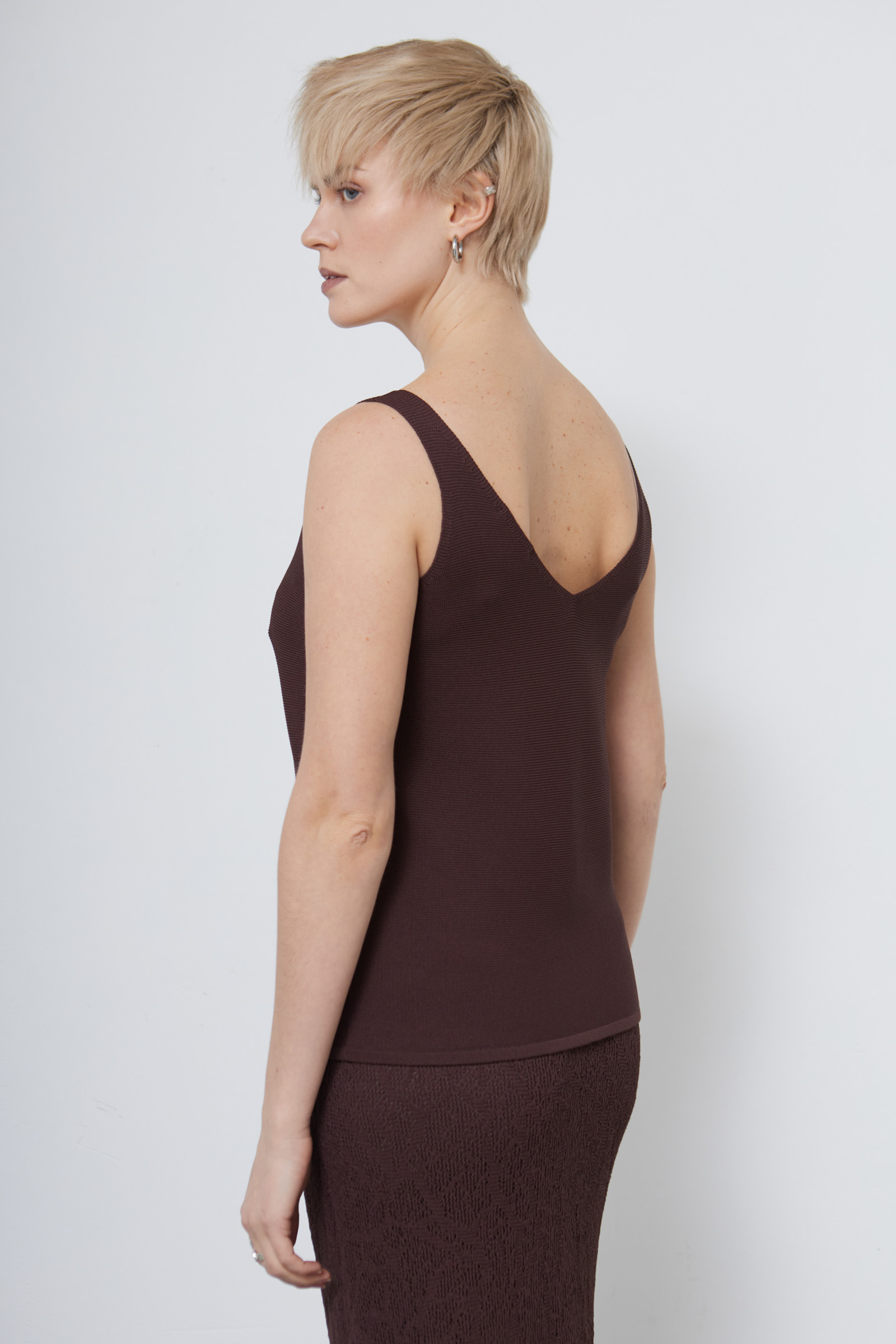 Топ из вязаного трикотажа в рубчик с V-вырезом.