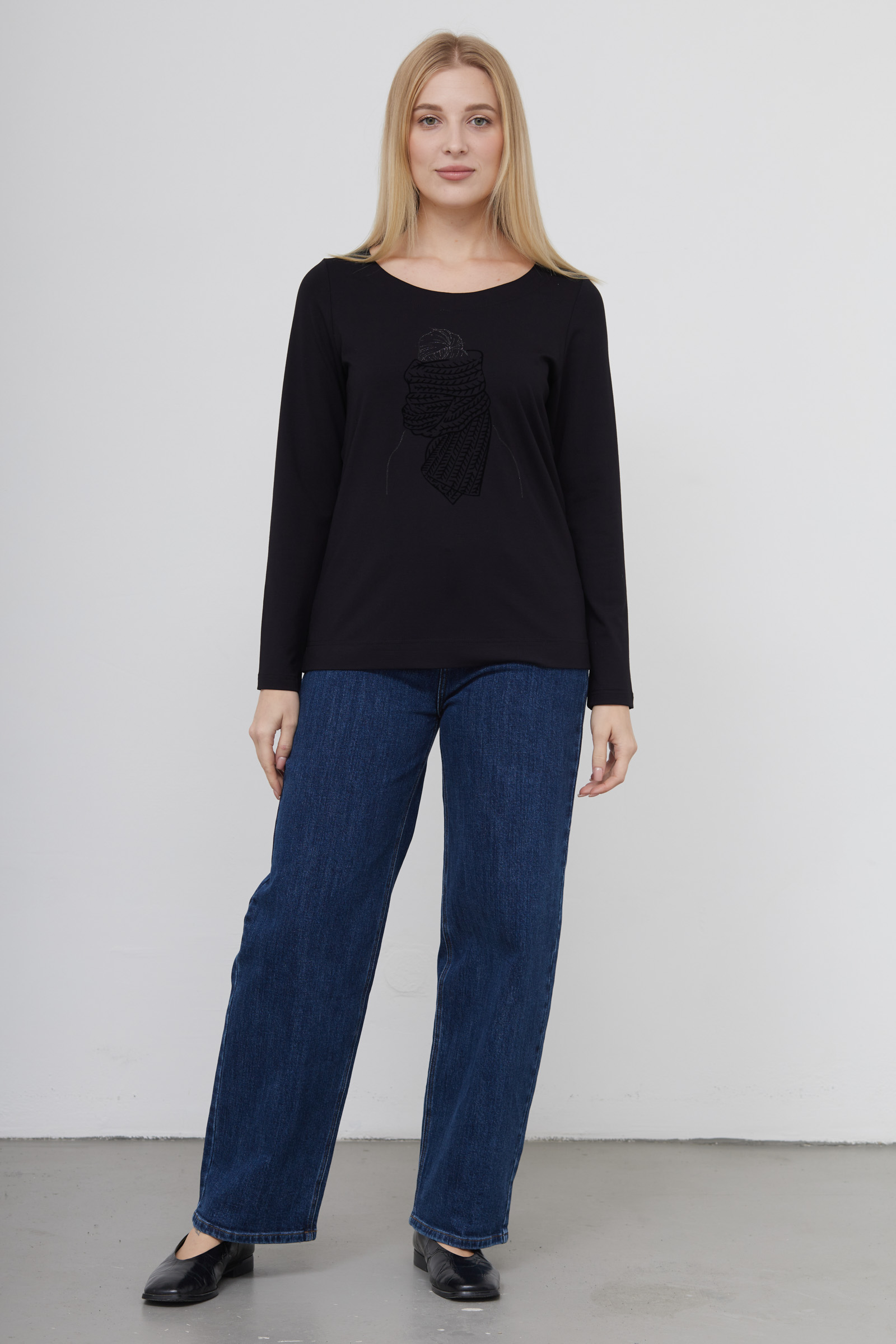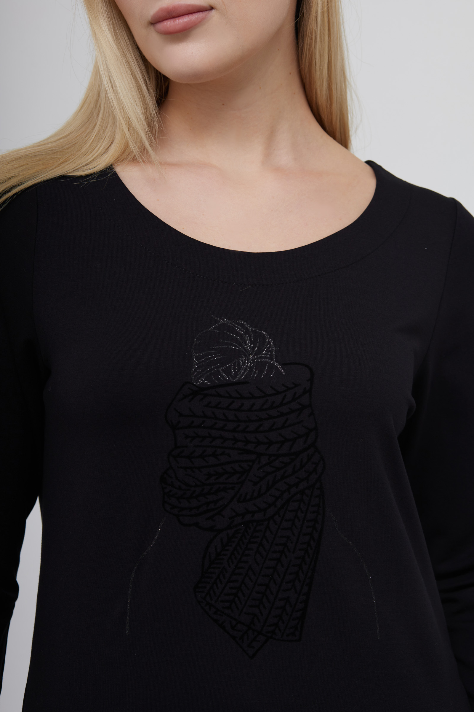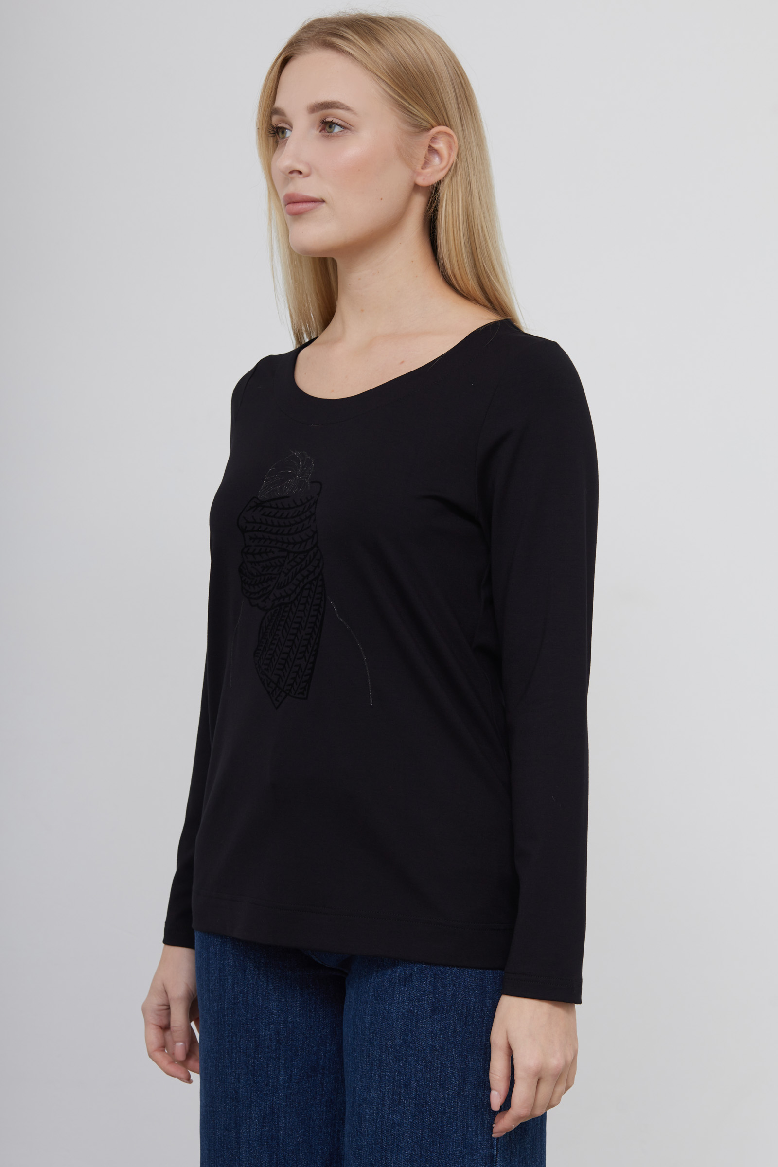 Лонгслив из вискозного трикотажа с флокированным принтом.