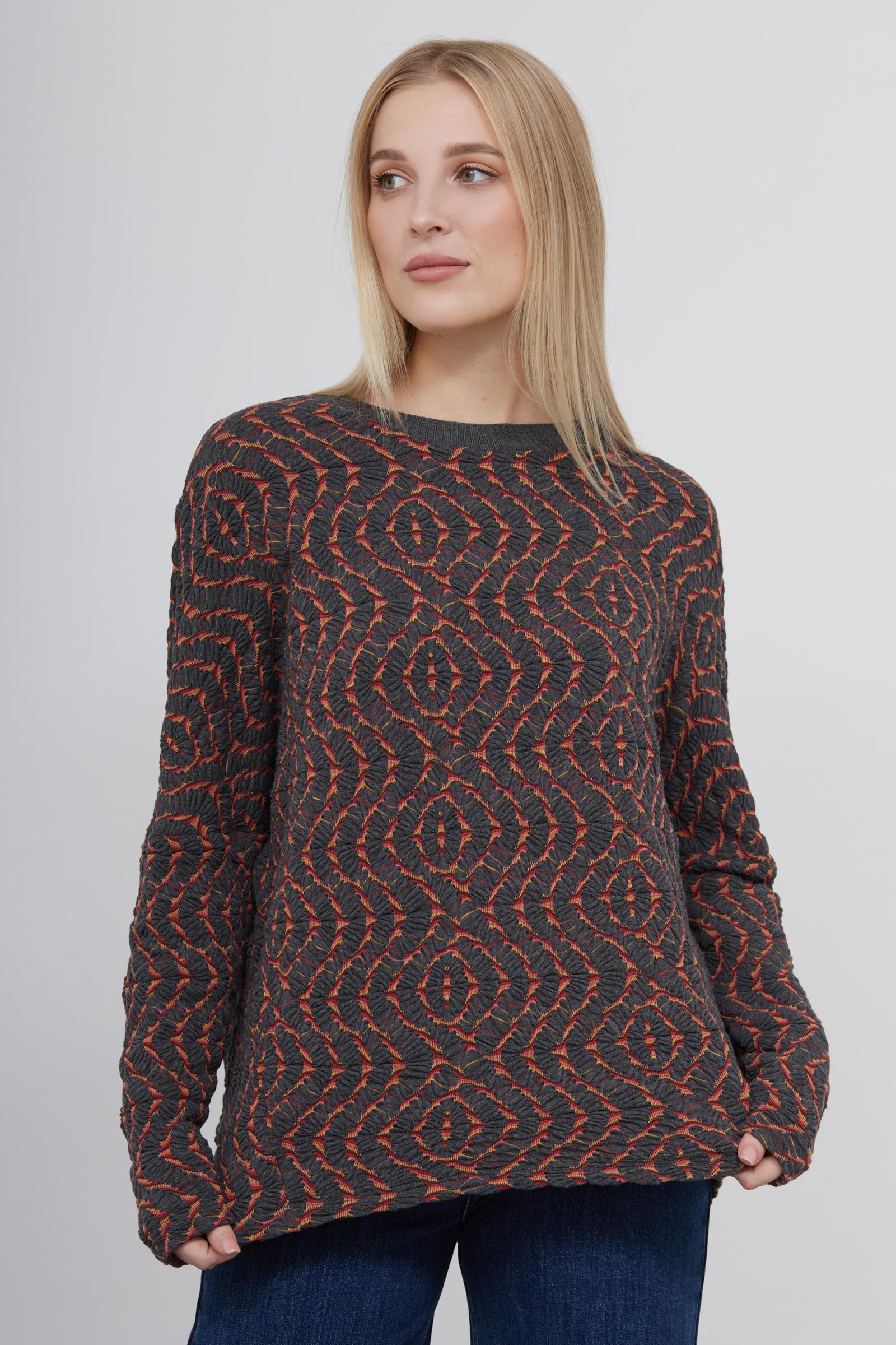 Джемпер oversize из мягкого трикотажа с объемным рисунком.