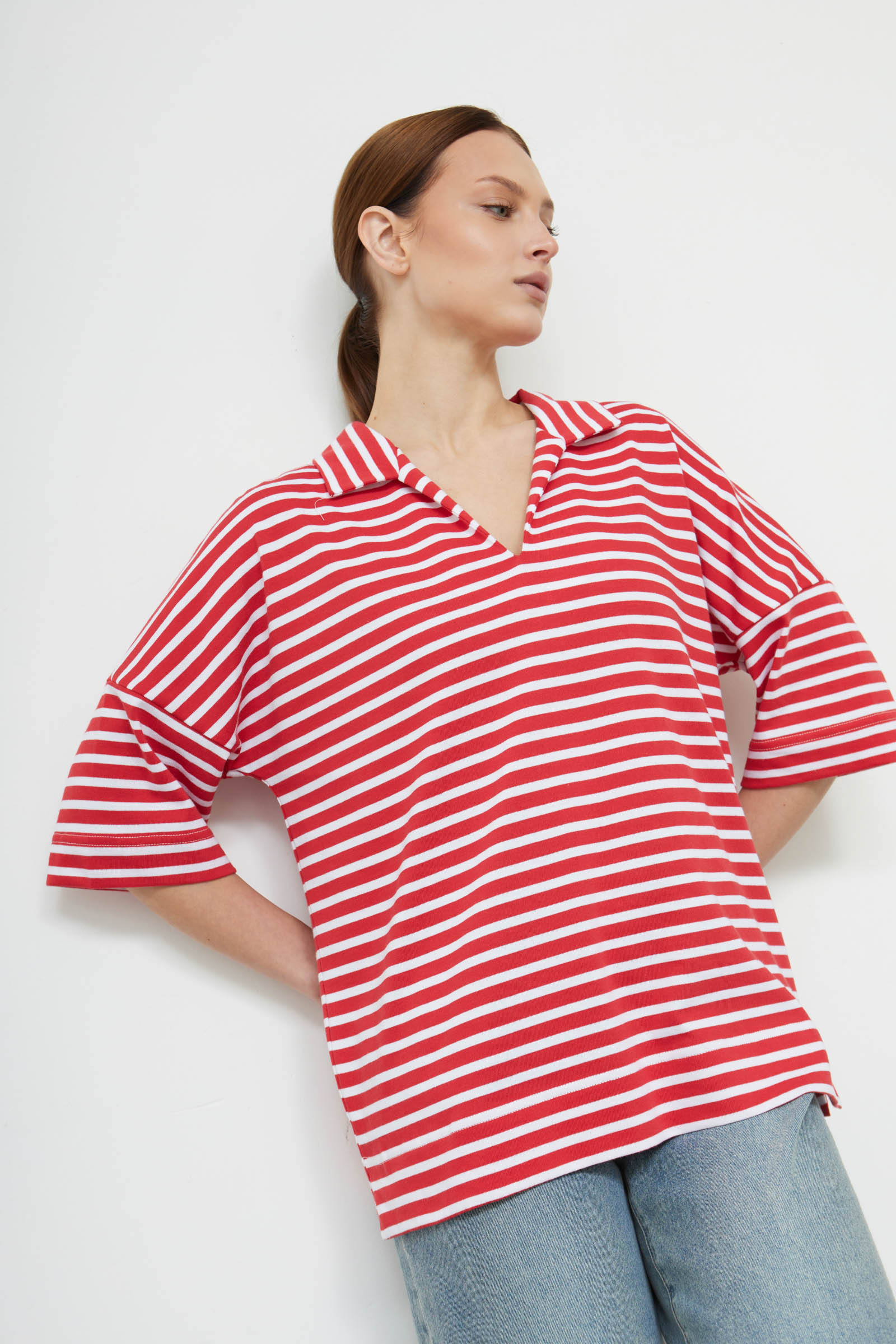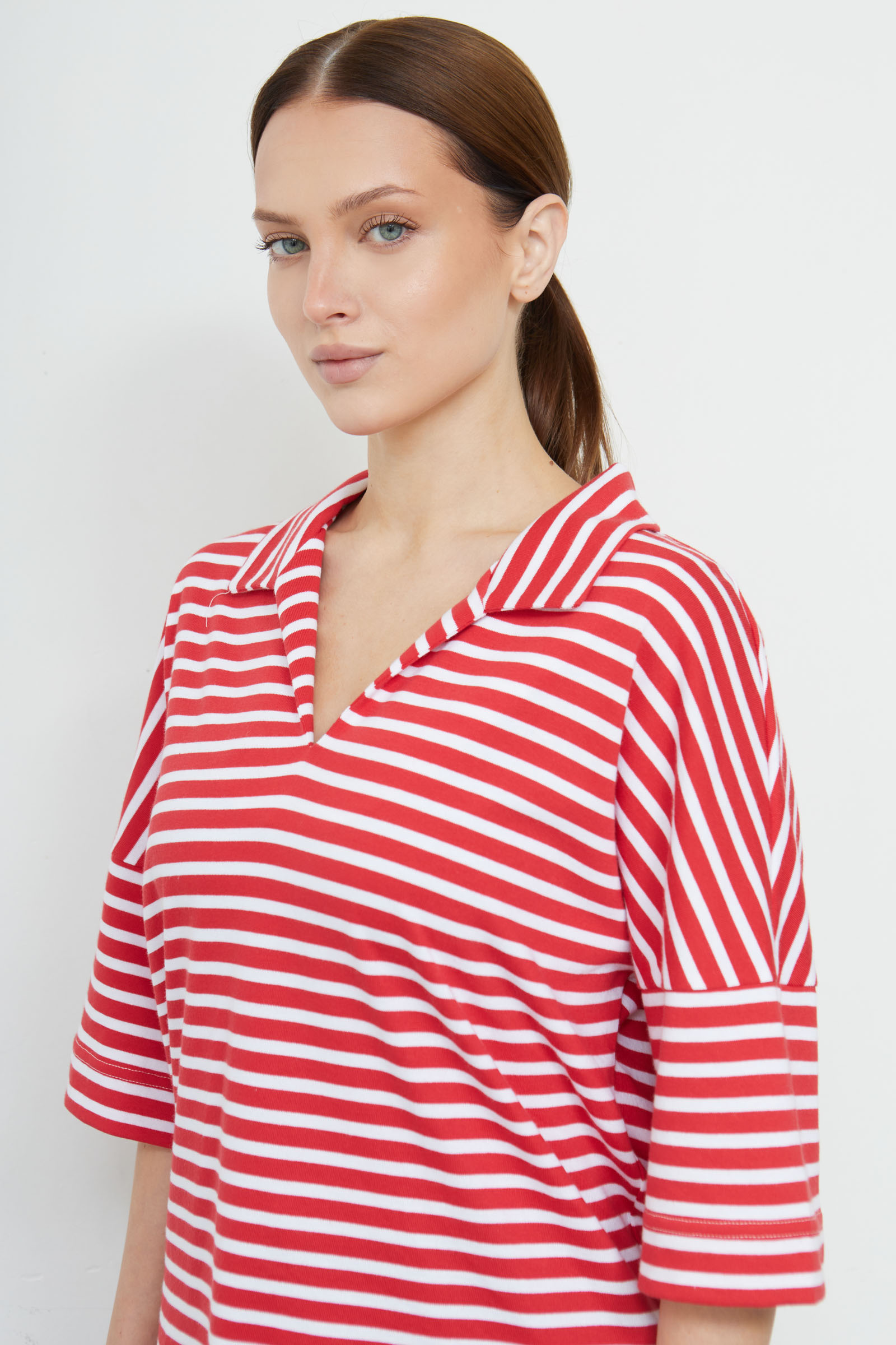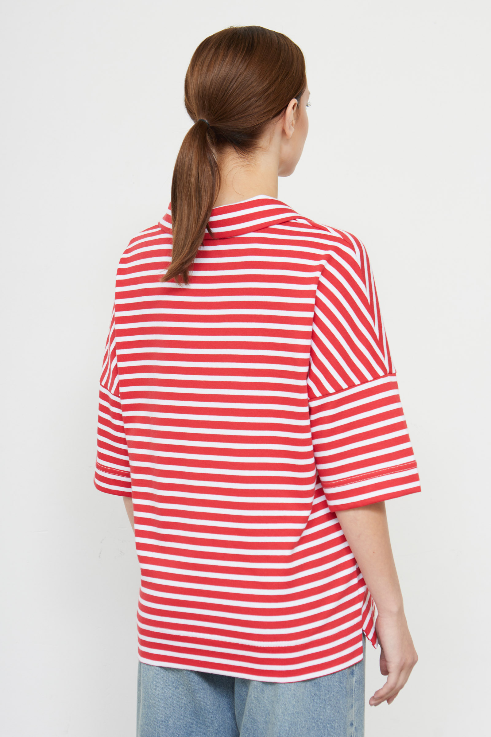 Футболка-поло oversize из плотного хлопкового трикотажа в полоску.
