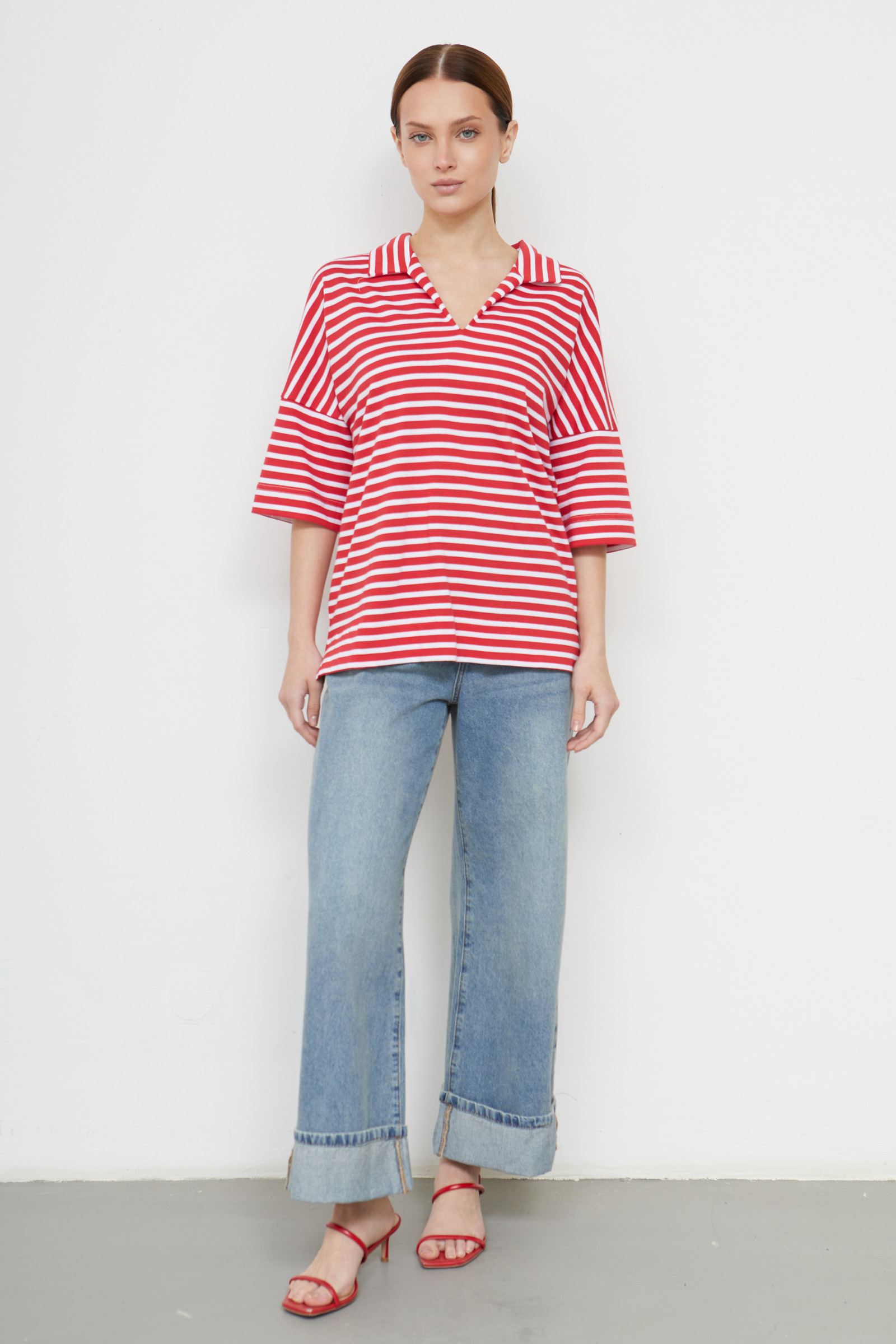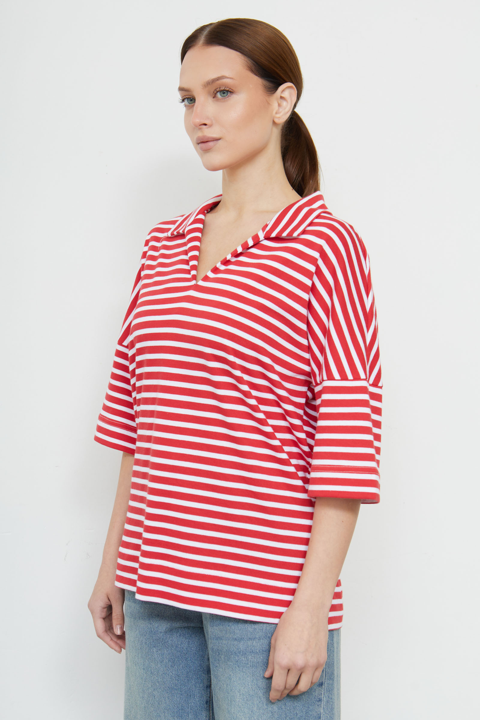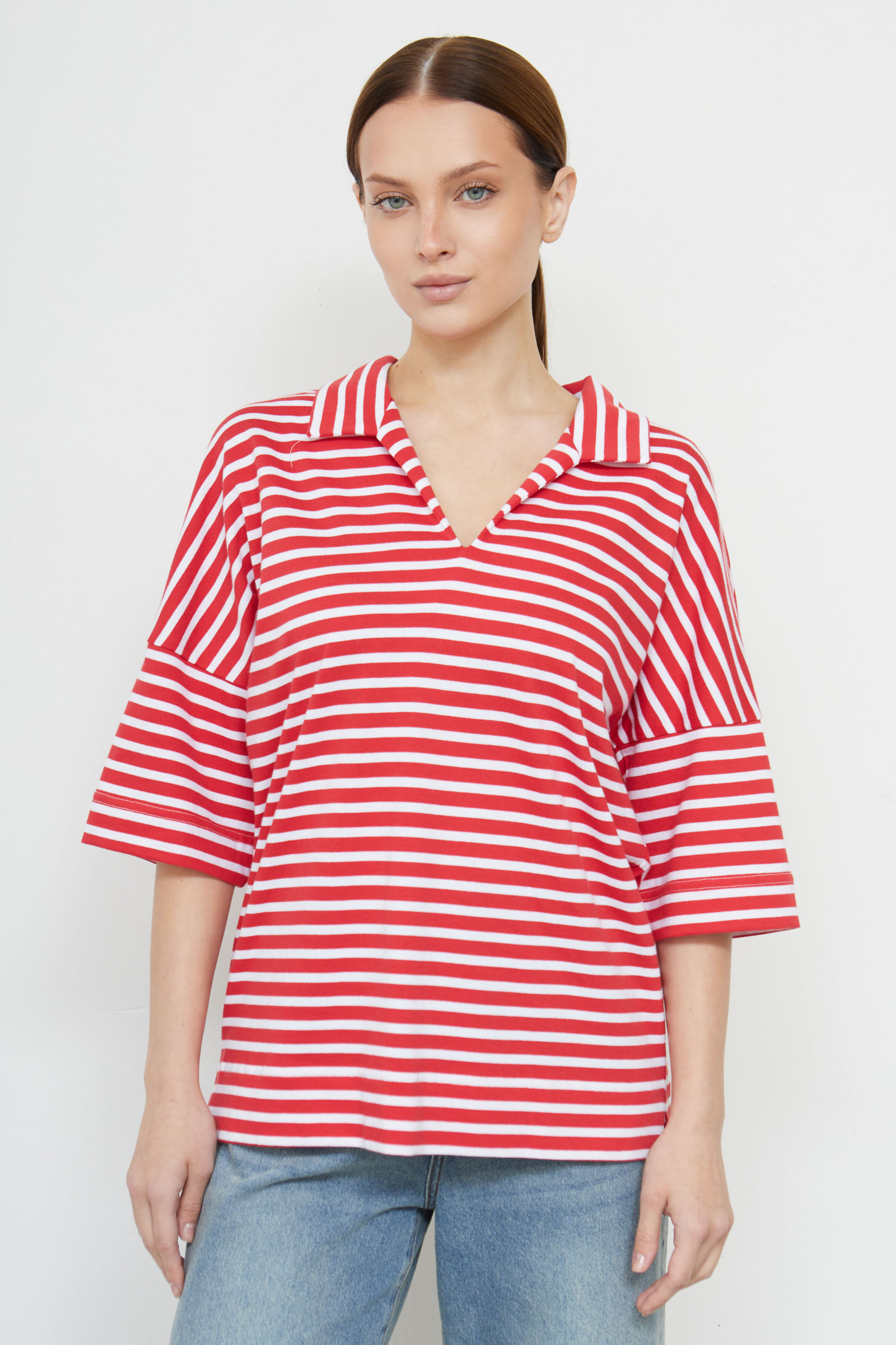 Футболка-поло oversize из плотного хлопкового трикотажа в полоску.