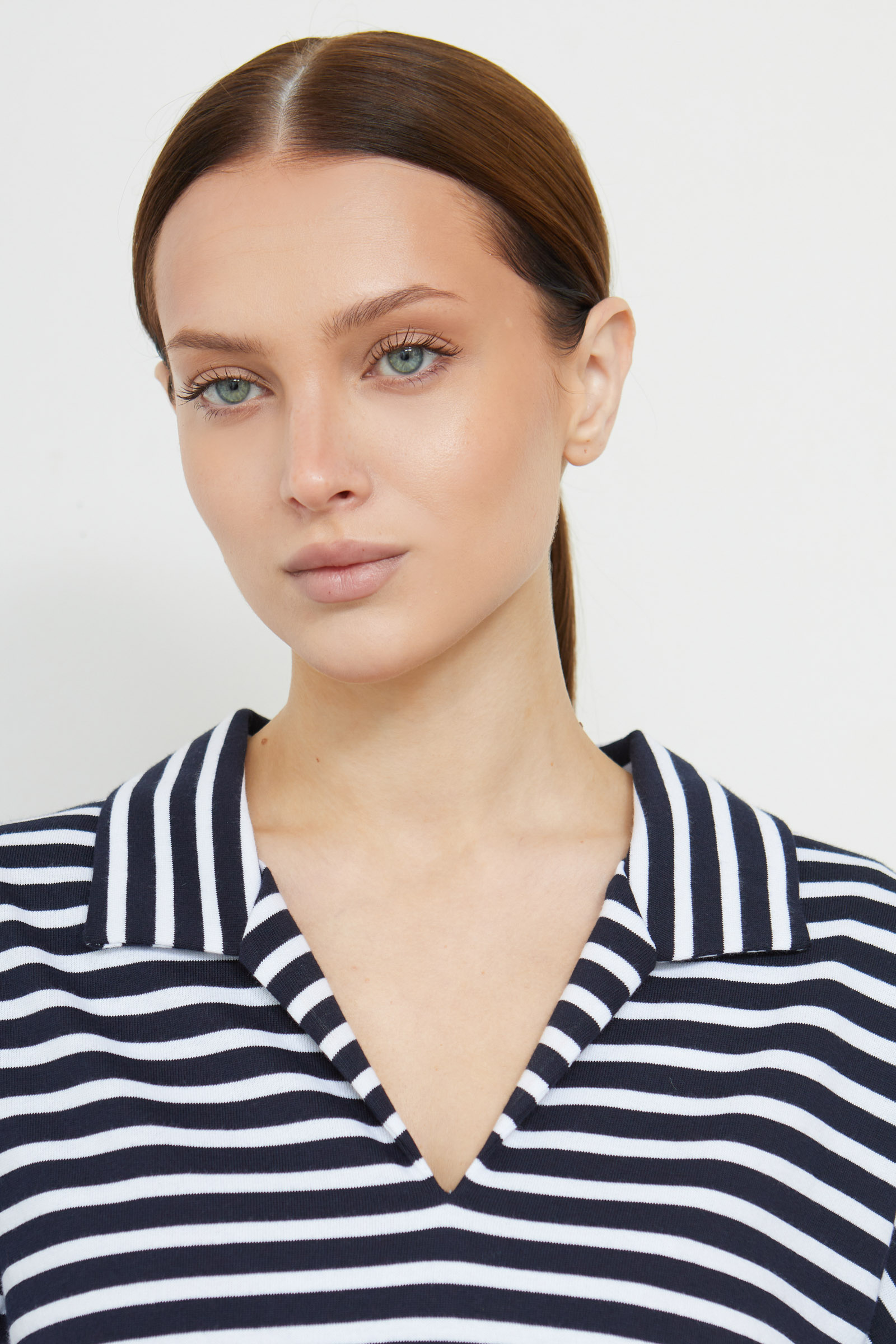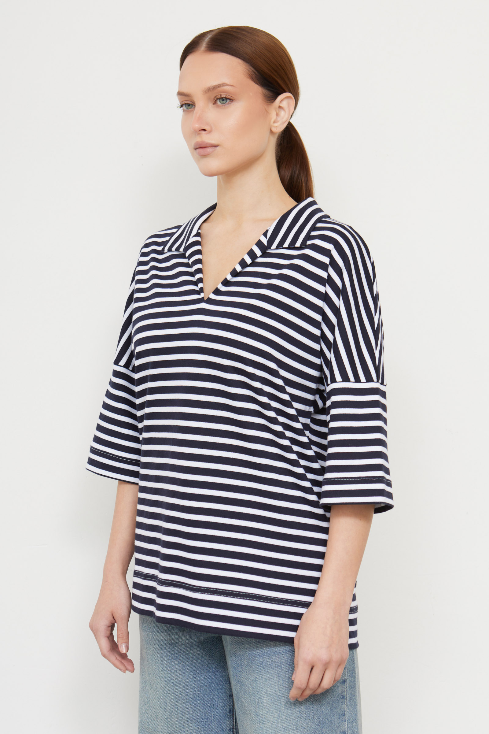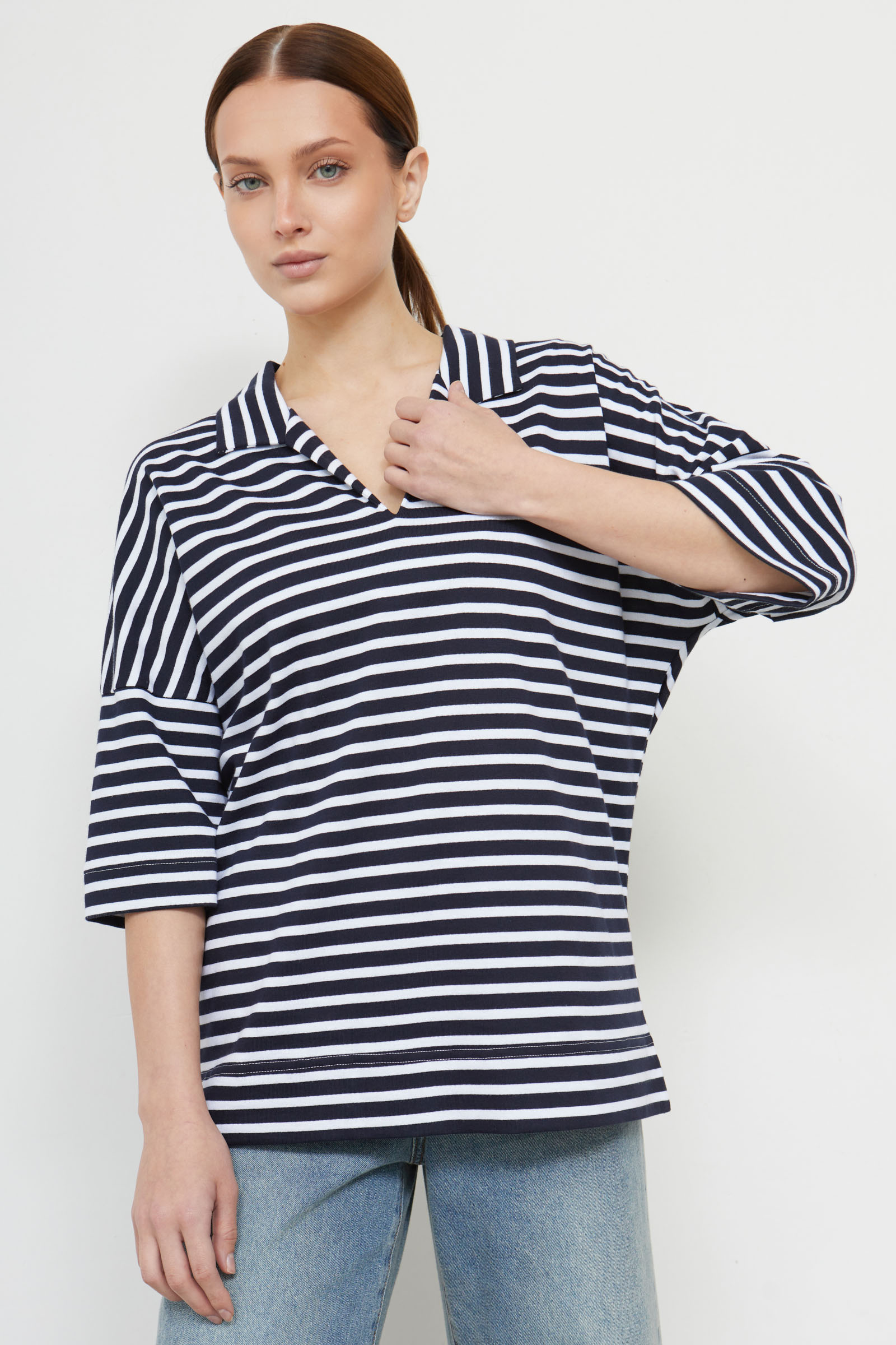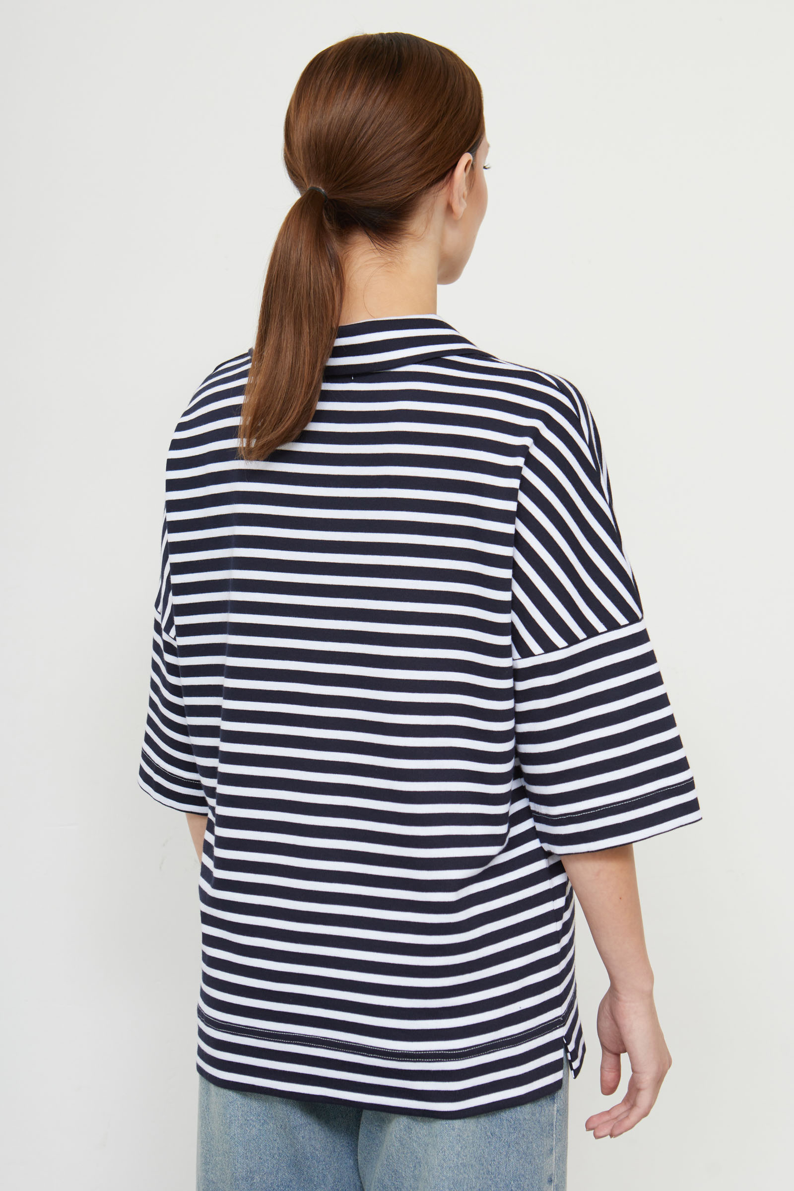 Футболка-поло oversize из плотного хлопкового трикотажа в полоску.