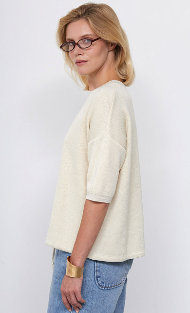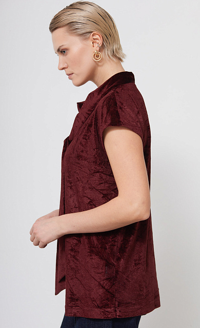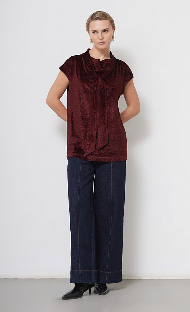 Блузка из тонкого бархата с жатым эффектом и воротником аскот.