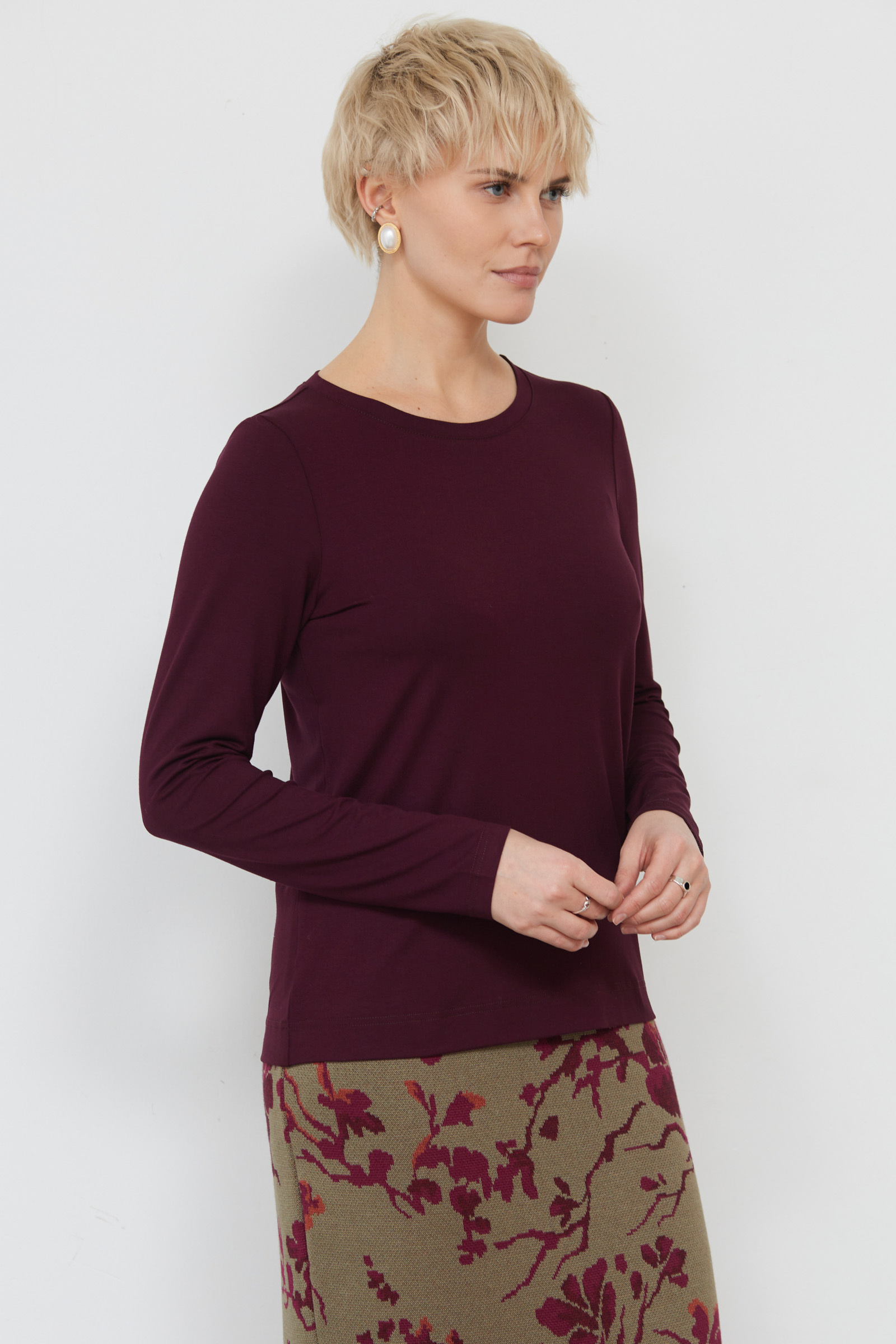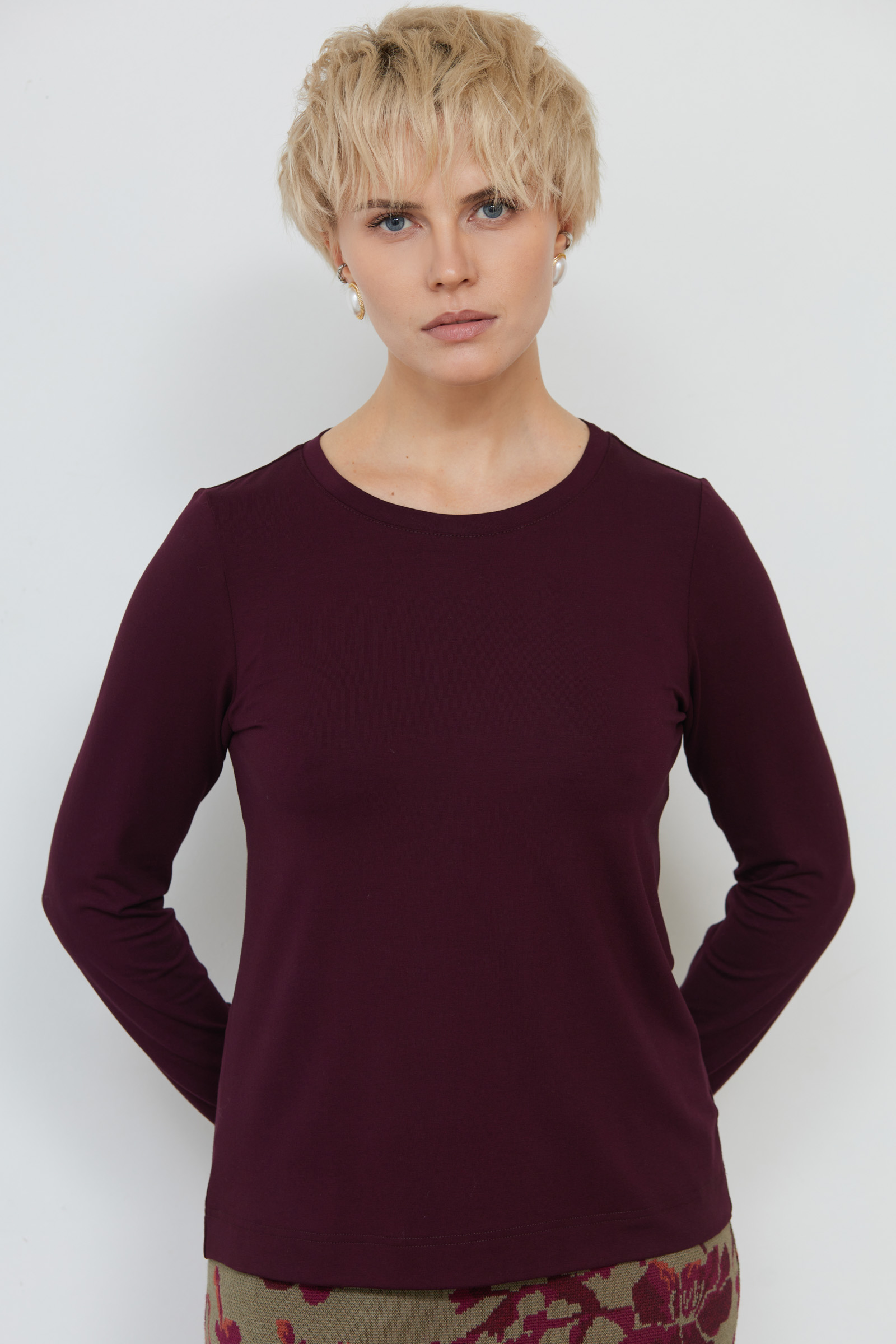 Базовый лонгслив из мягкого вискозного трикотажа.