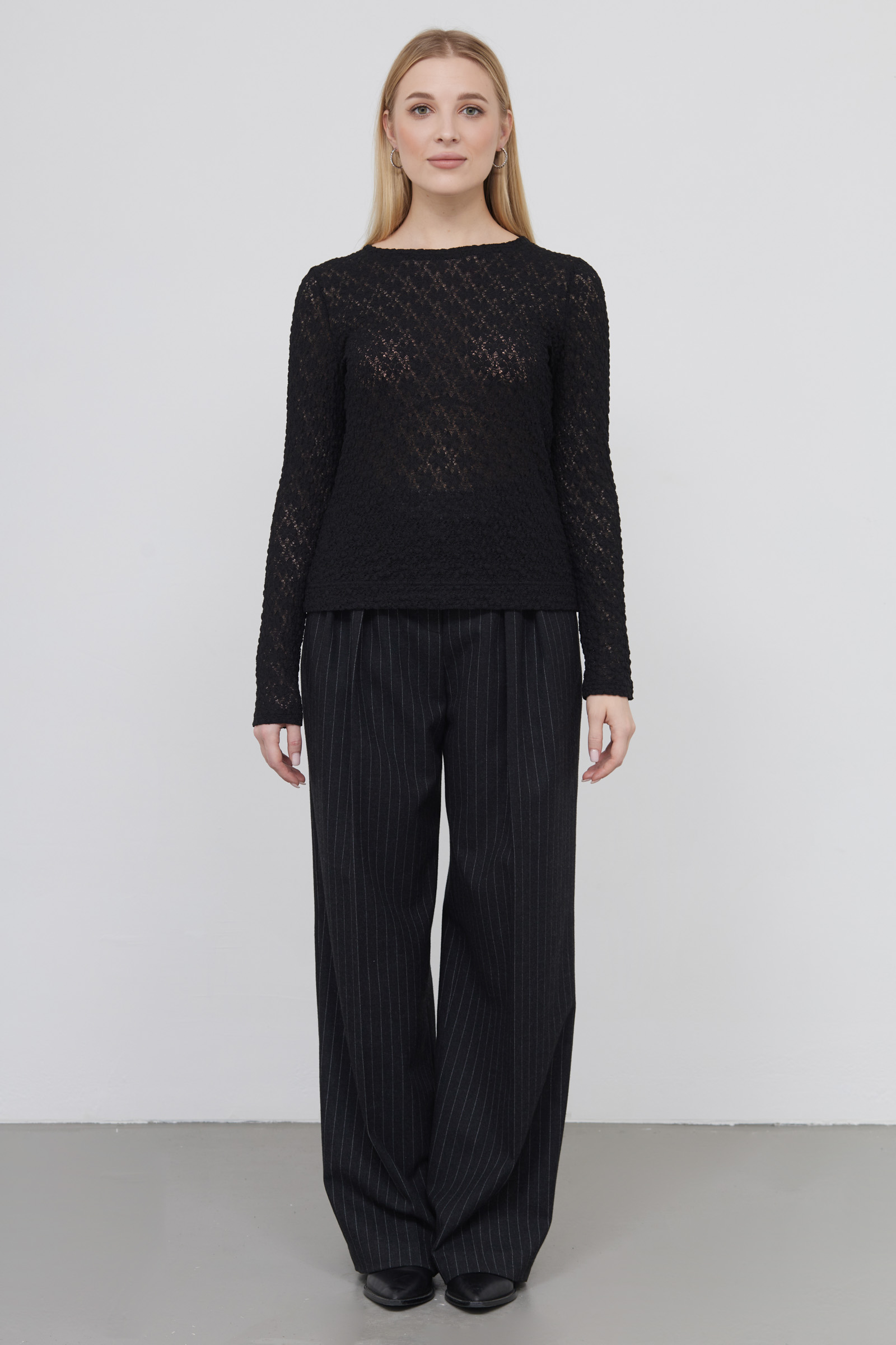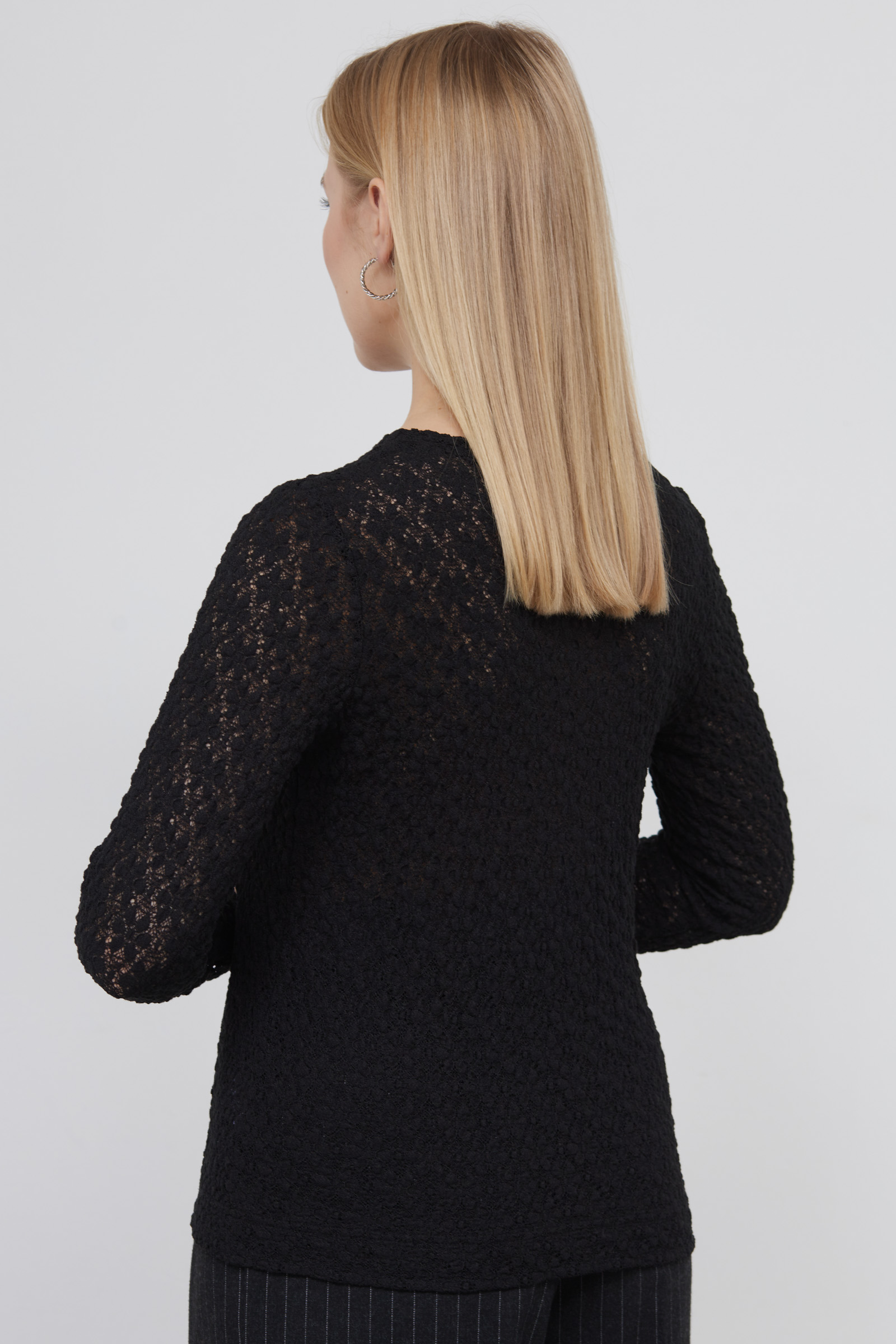 Лонгслив из эластичной кружевной ткани.