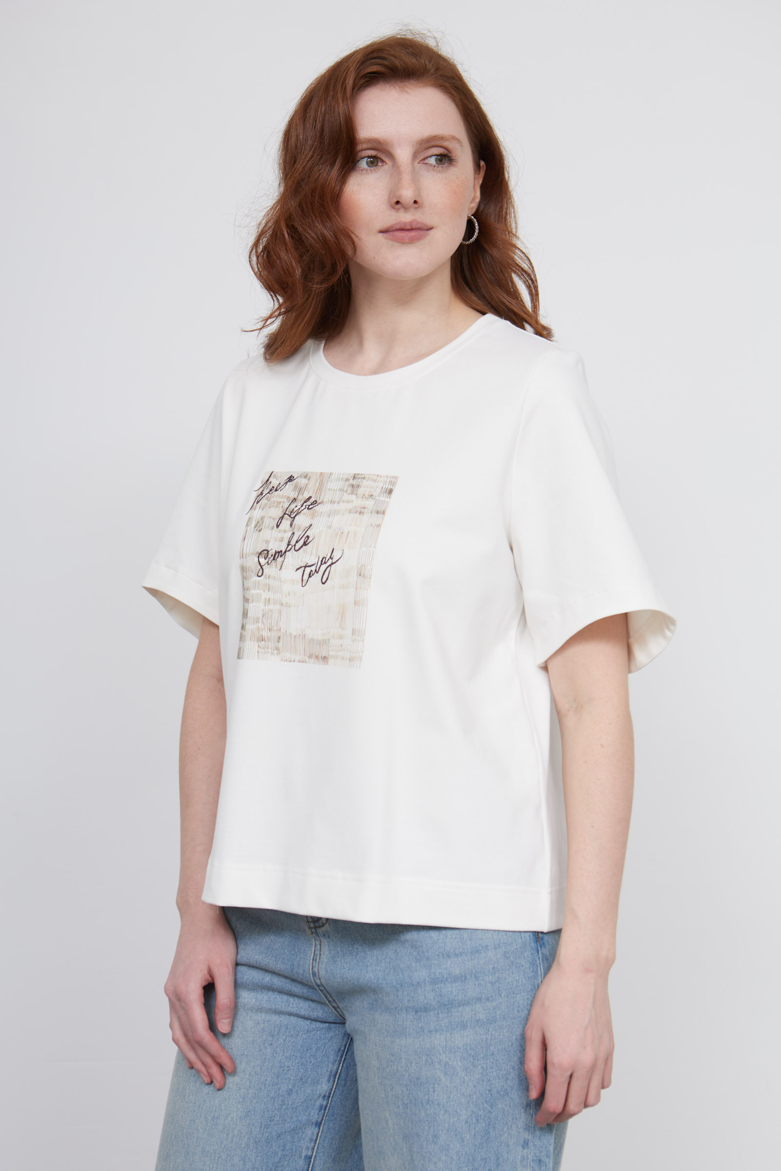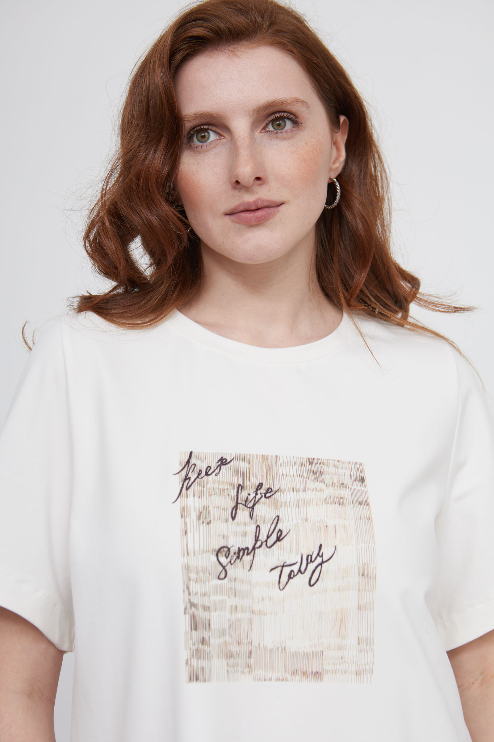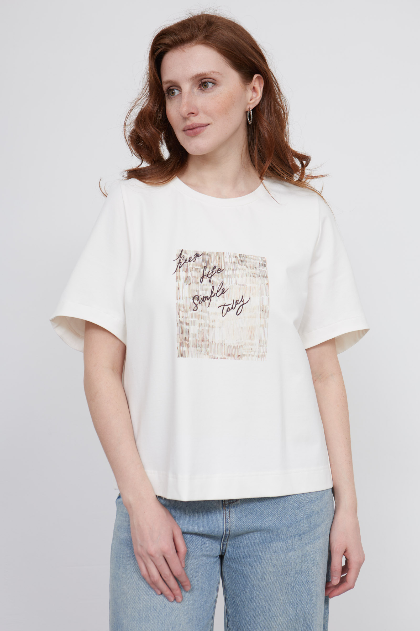 Футболка оверсайз из премиум хлопка с пич-эффектом, печатным принтом и вышивкой.