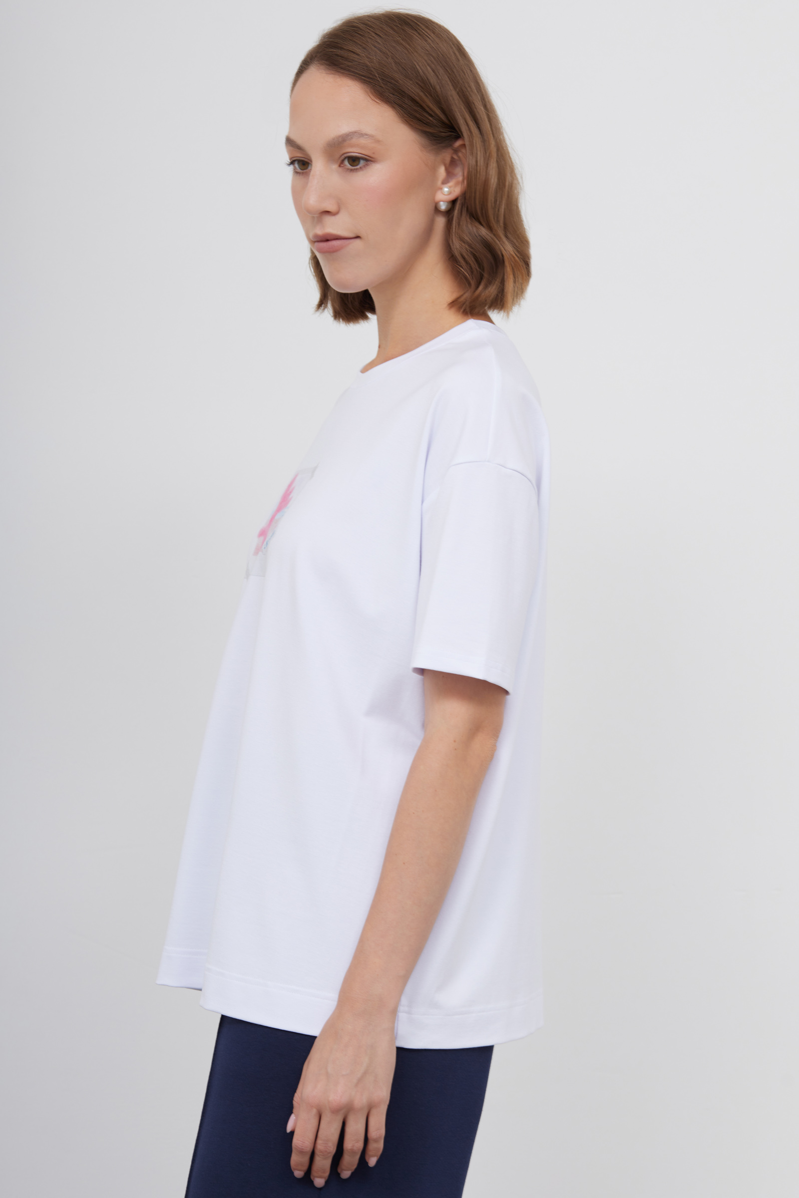 Футболка oversize из плотного вискозного трикотажа с печатным принтом.