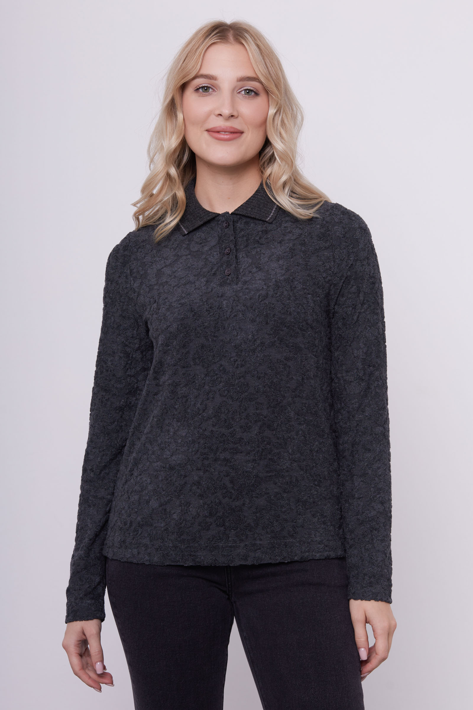 Джемпер-поло из мягкого трикотажа с фактурным рисунком.