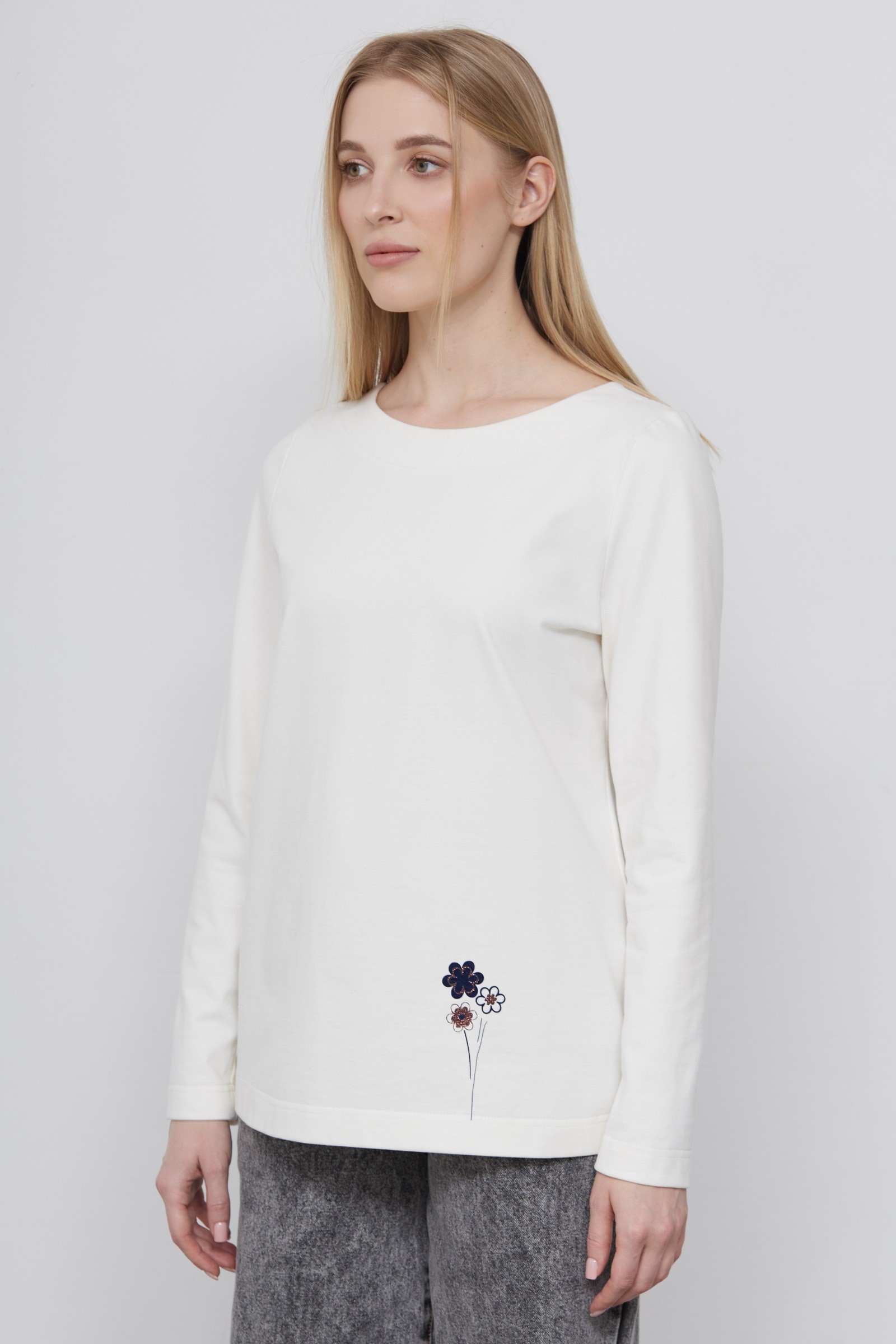 Лонгслив из мягкого хлопкового трикотажа с минималистичным печатным принтом.