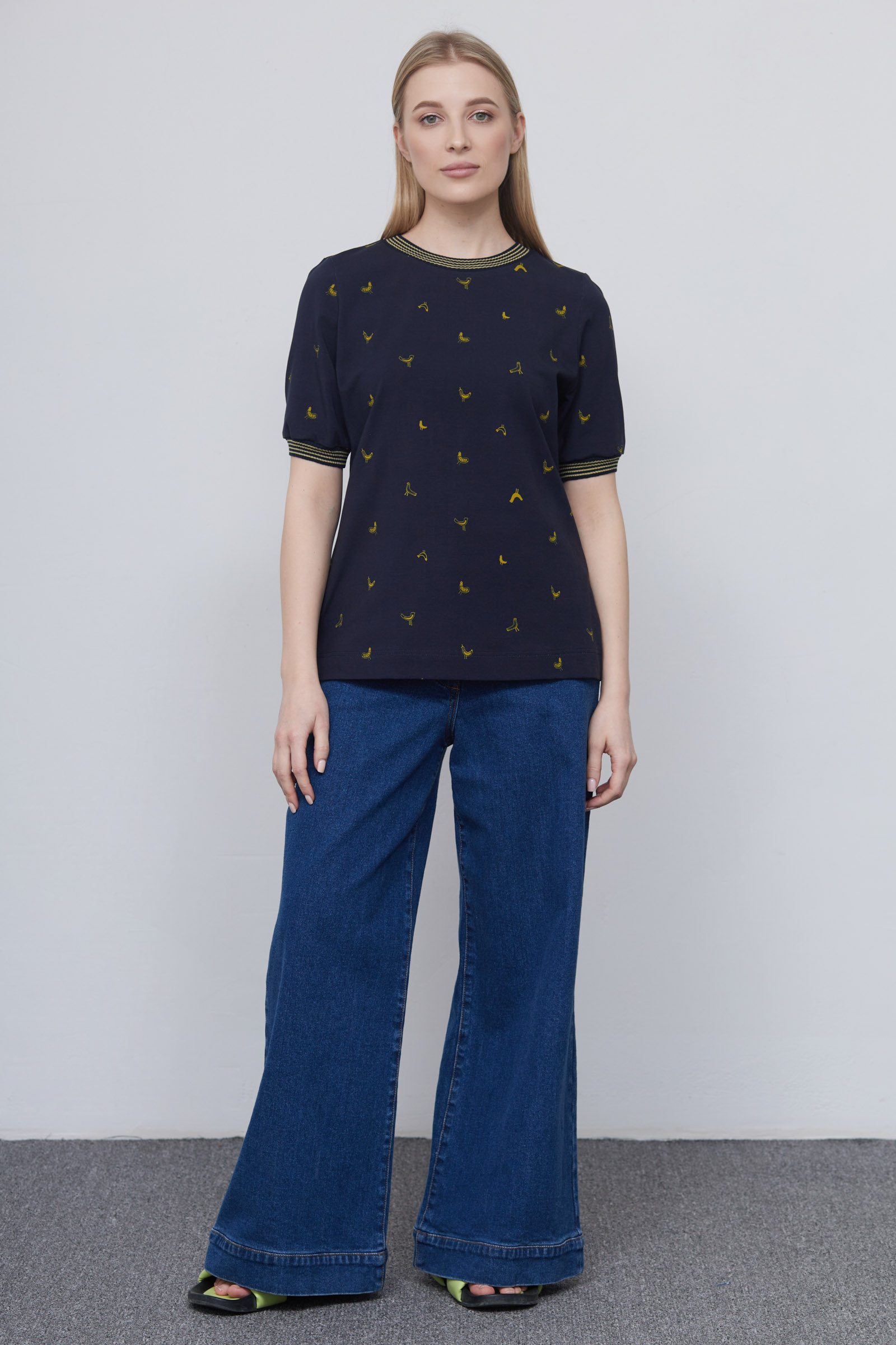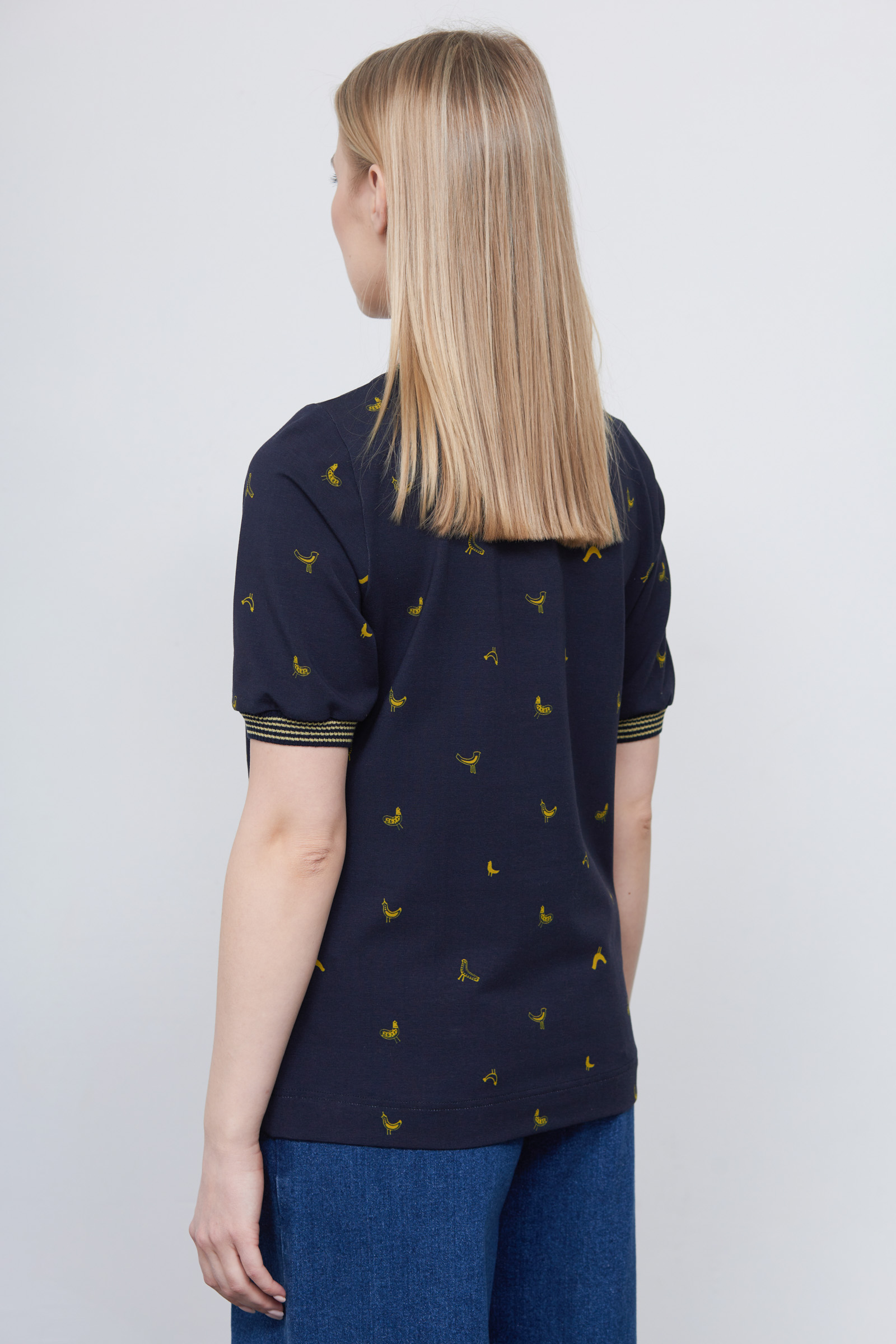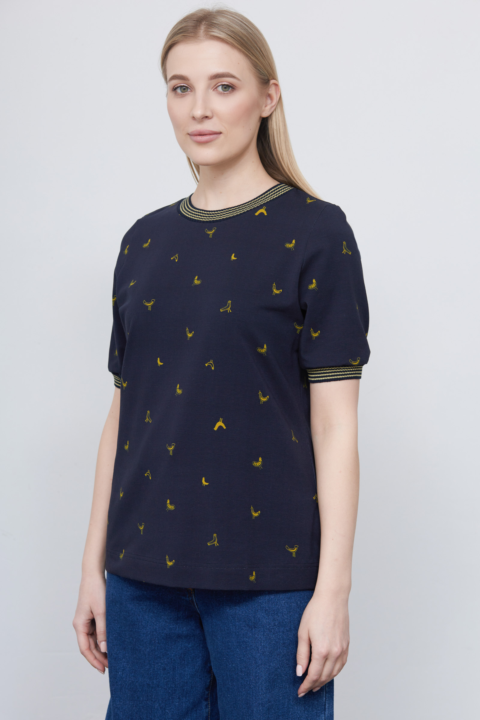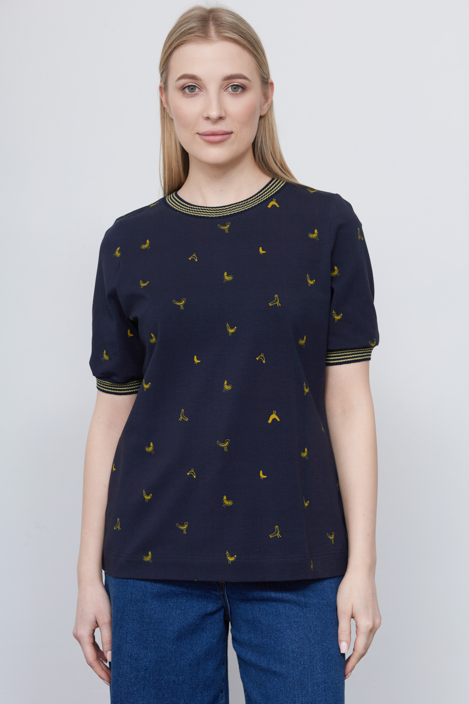 Хлопковая футболка с принтом и трикотажной отделкой.