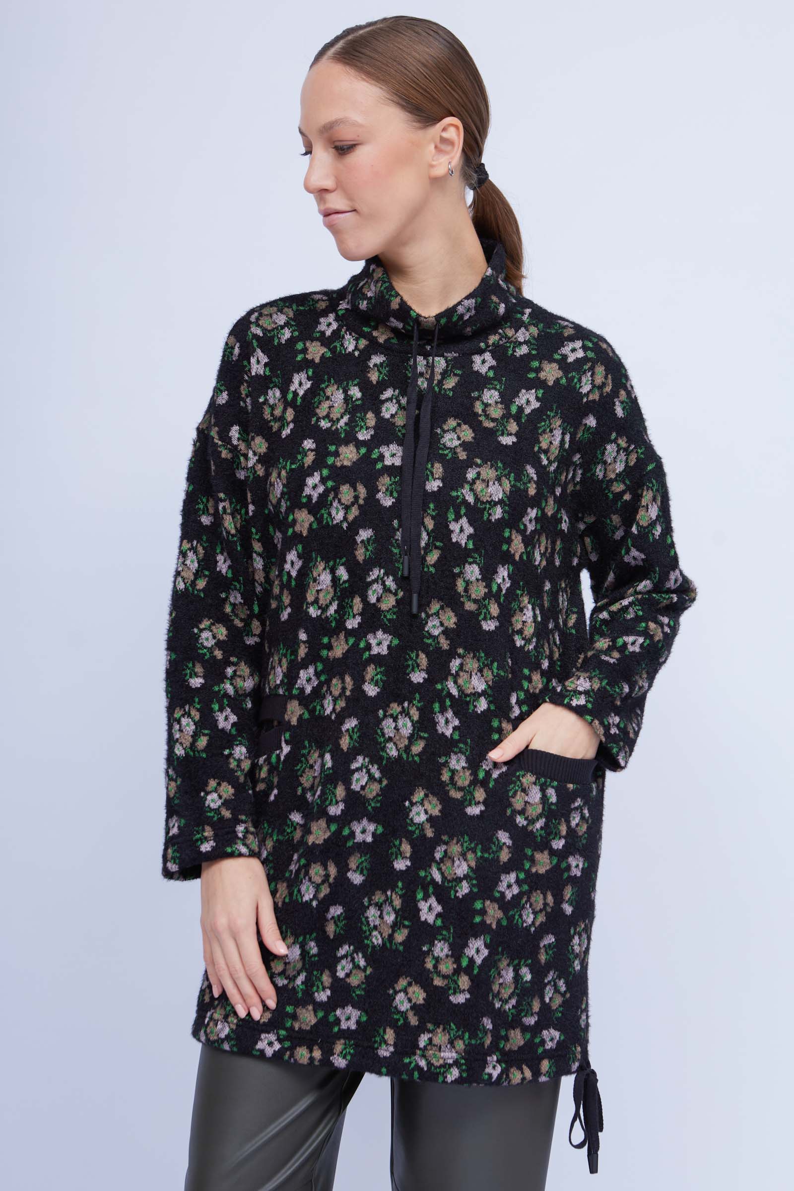 Удлиненный джемпер oversize из пушистого трикотажа с цветочным рисунком.