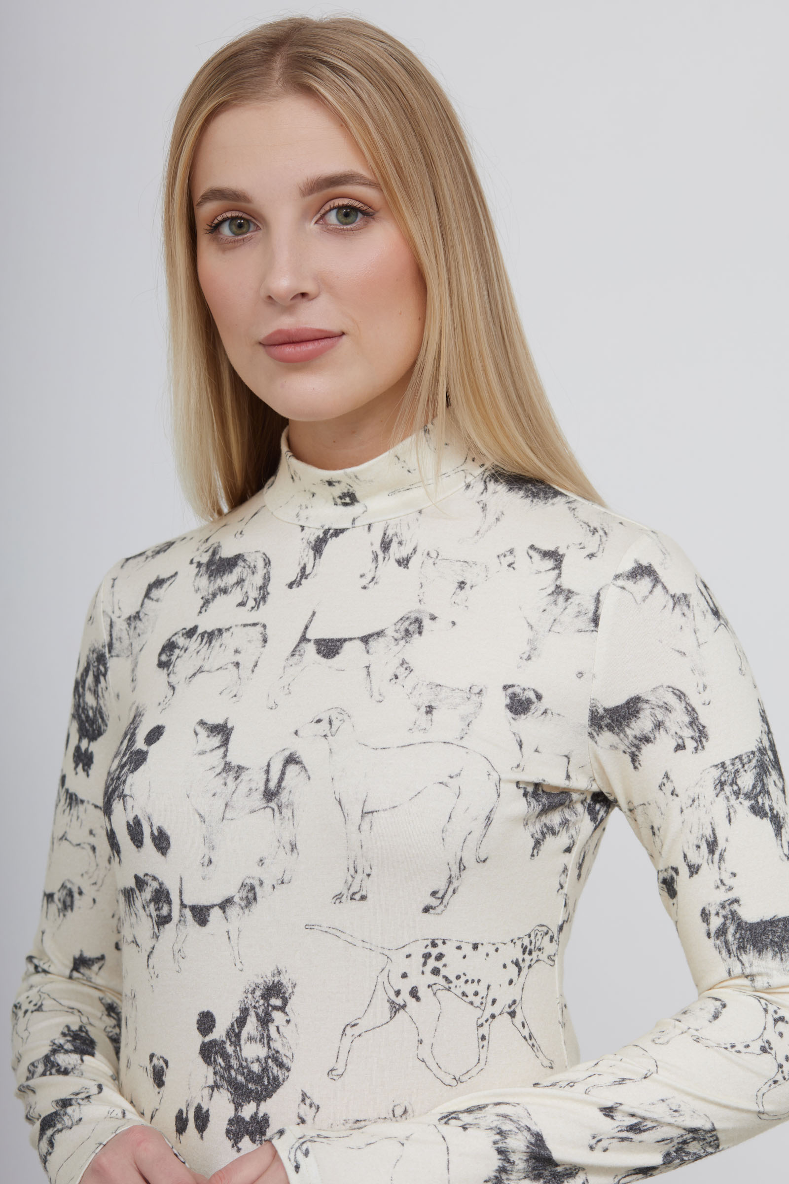 Водолазка из мягкого вискозного трикотажа с начесом и принтом в виде собак.