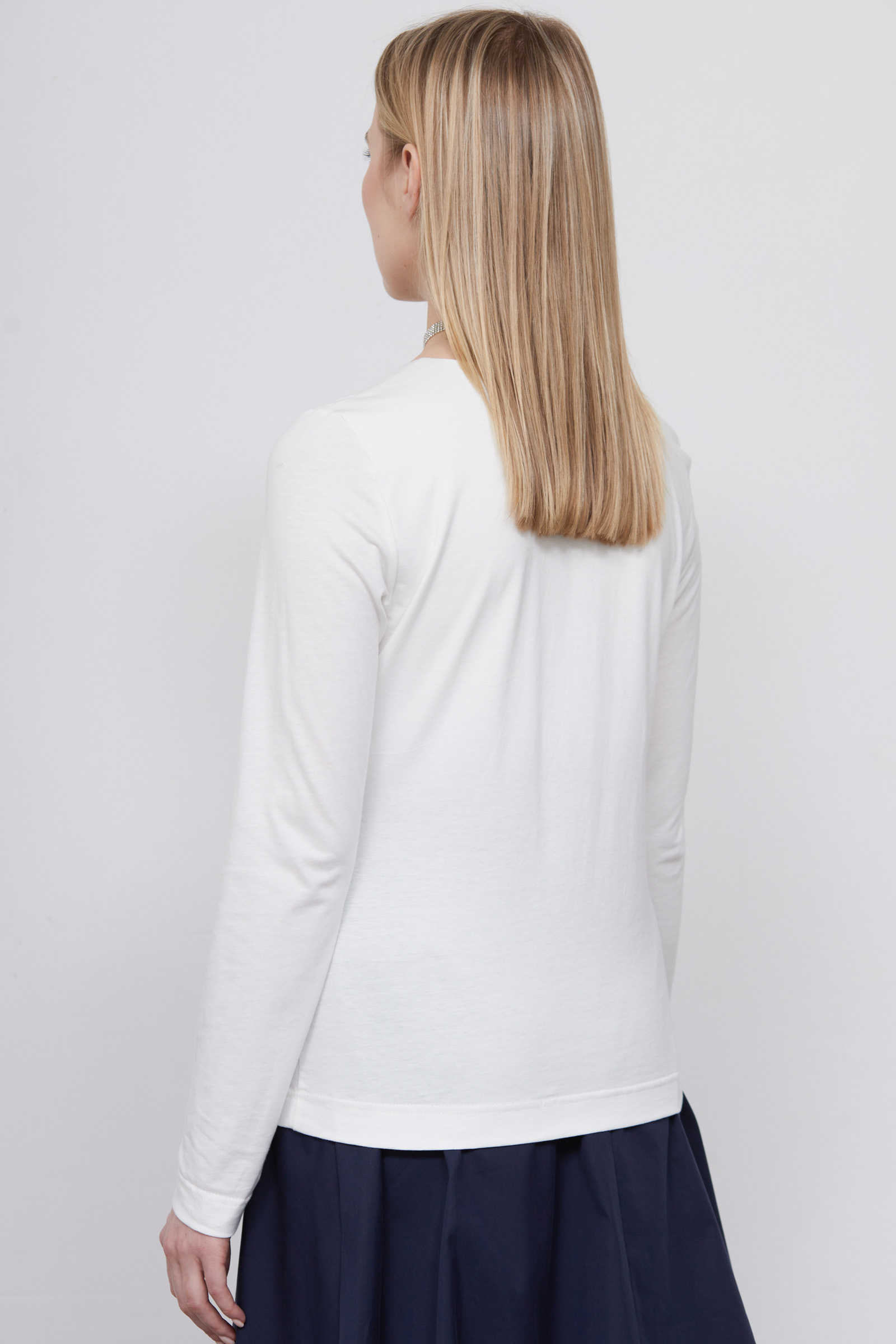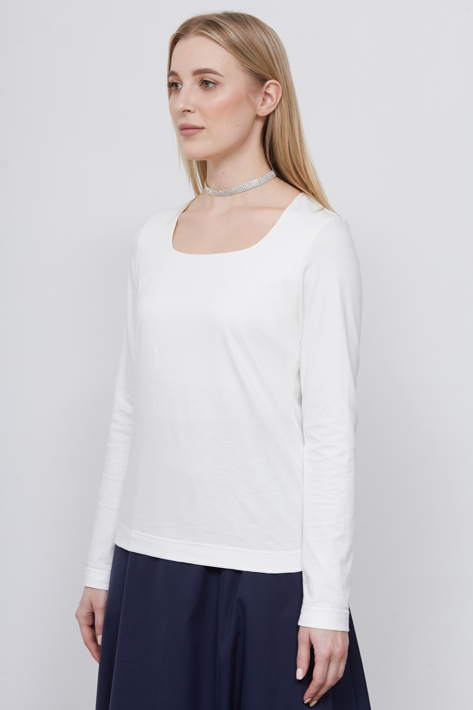 Лонгслив из мягкого хлопкового трикотажа с вырезом каре.