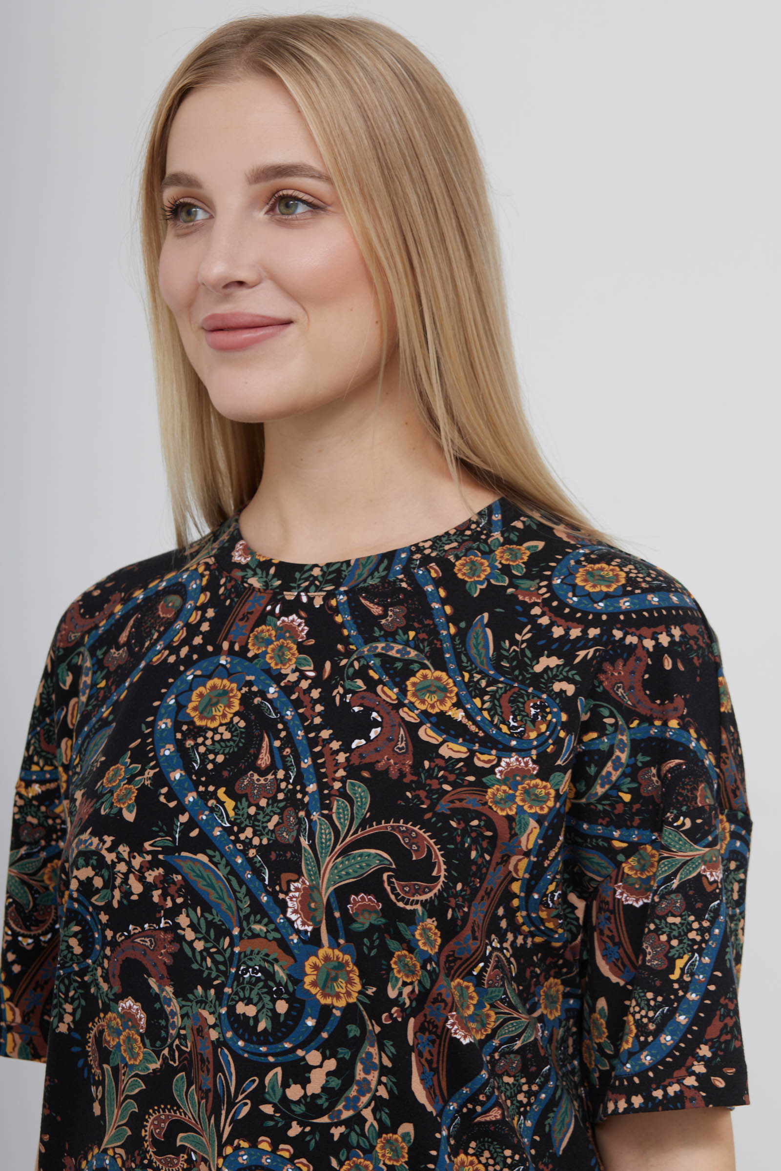 Футболка oversize из мягкого хлопкового трикотажа с принтом пейсли.