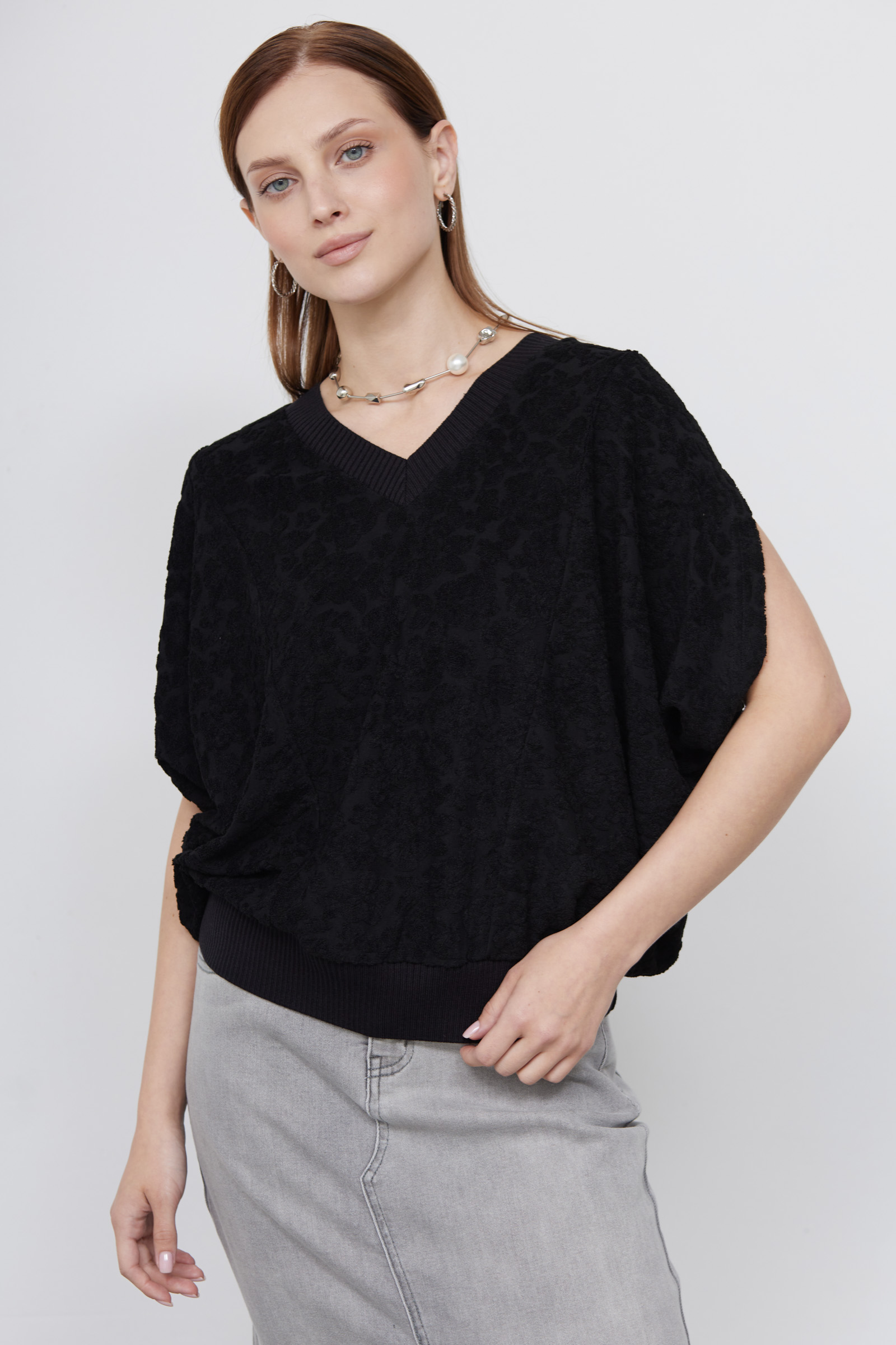 Блуза oversize с объемным махровым принтом в форме цветов.