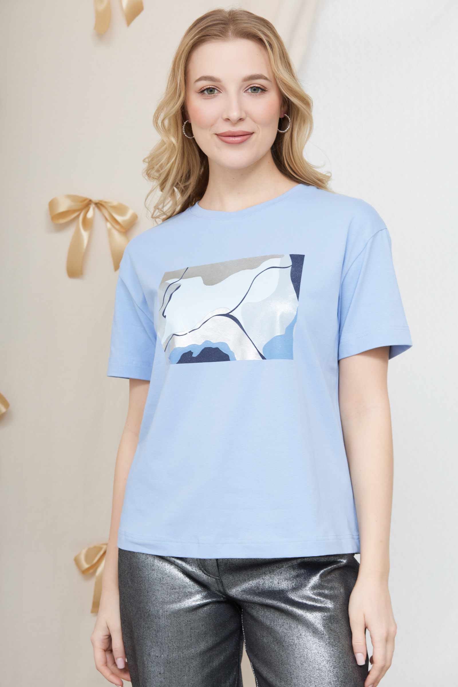 Футболка из мягкого хлопкового трикотажа с блестящим печатным принтом.