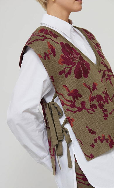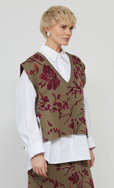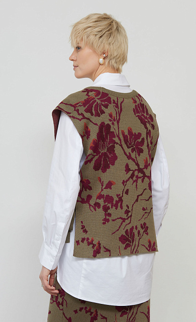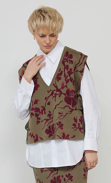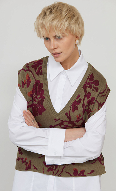 Комбинированный топ с верхней частью из хлопкового трикотажа и низом из гладкого хлопкового текстиля на пуговицах.