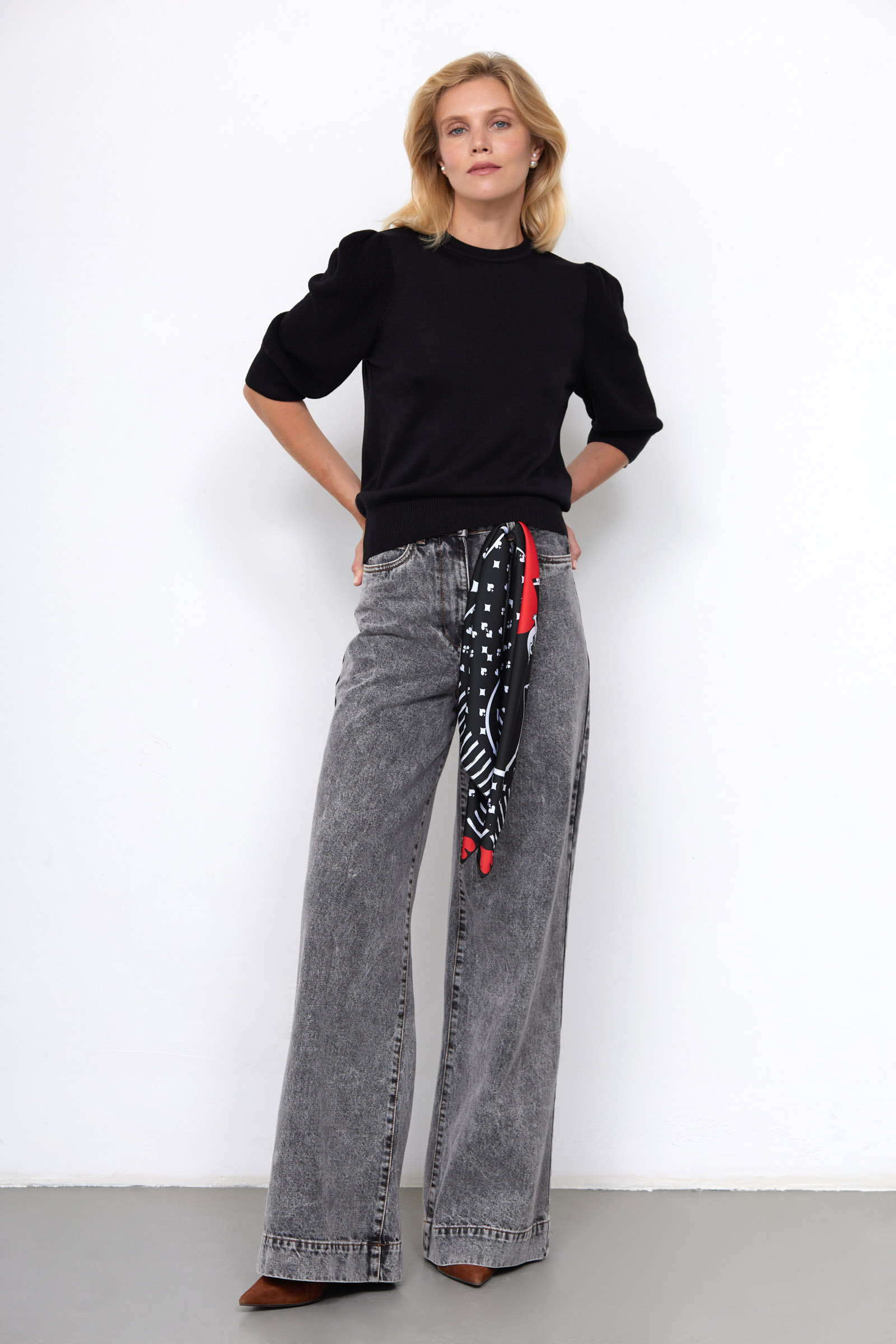 Широкие джинсы из мягкого денима с вареным эффектом и контрастными отстрочками.