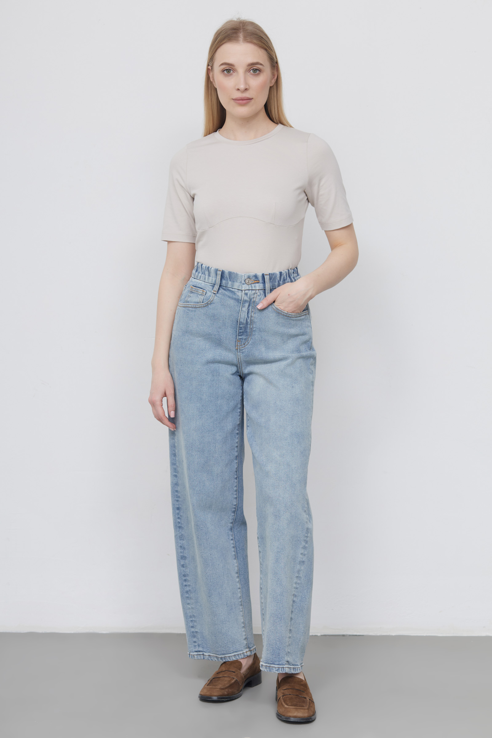 Широкие джинсы из плотного мягкого денима на эластичном поясе.
