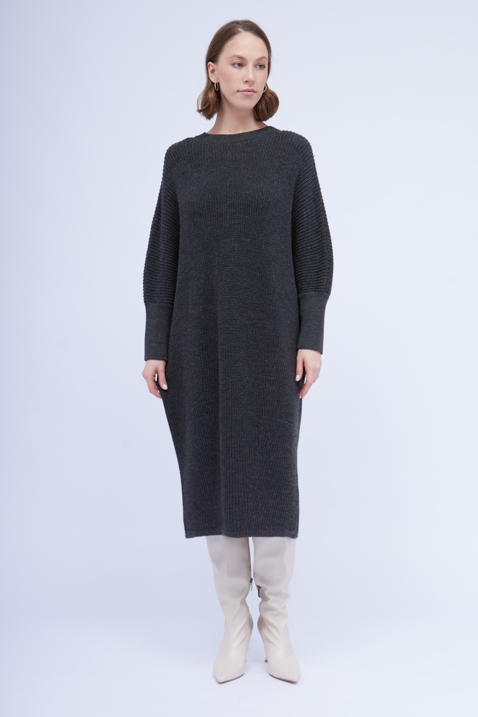 Вязаное платье oversize c рукавом летучая мышь.