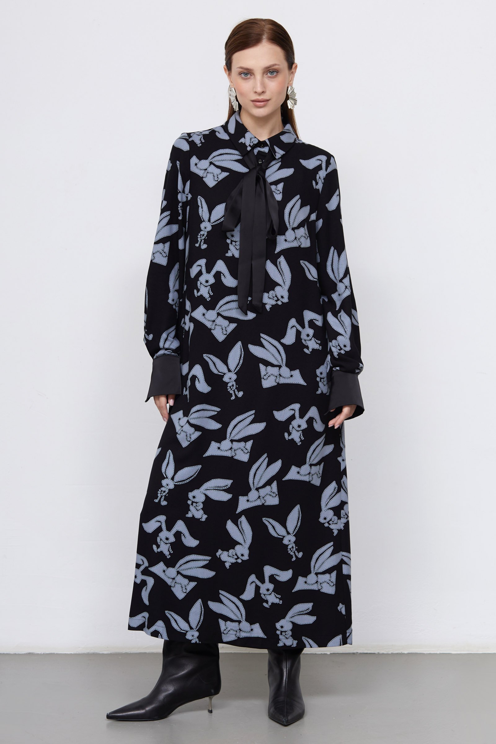 Длинное платье из креповой вискозы с фантазийным принтом и съемным атласным галстуком.