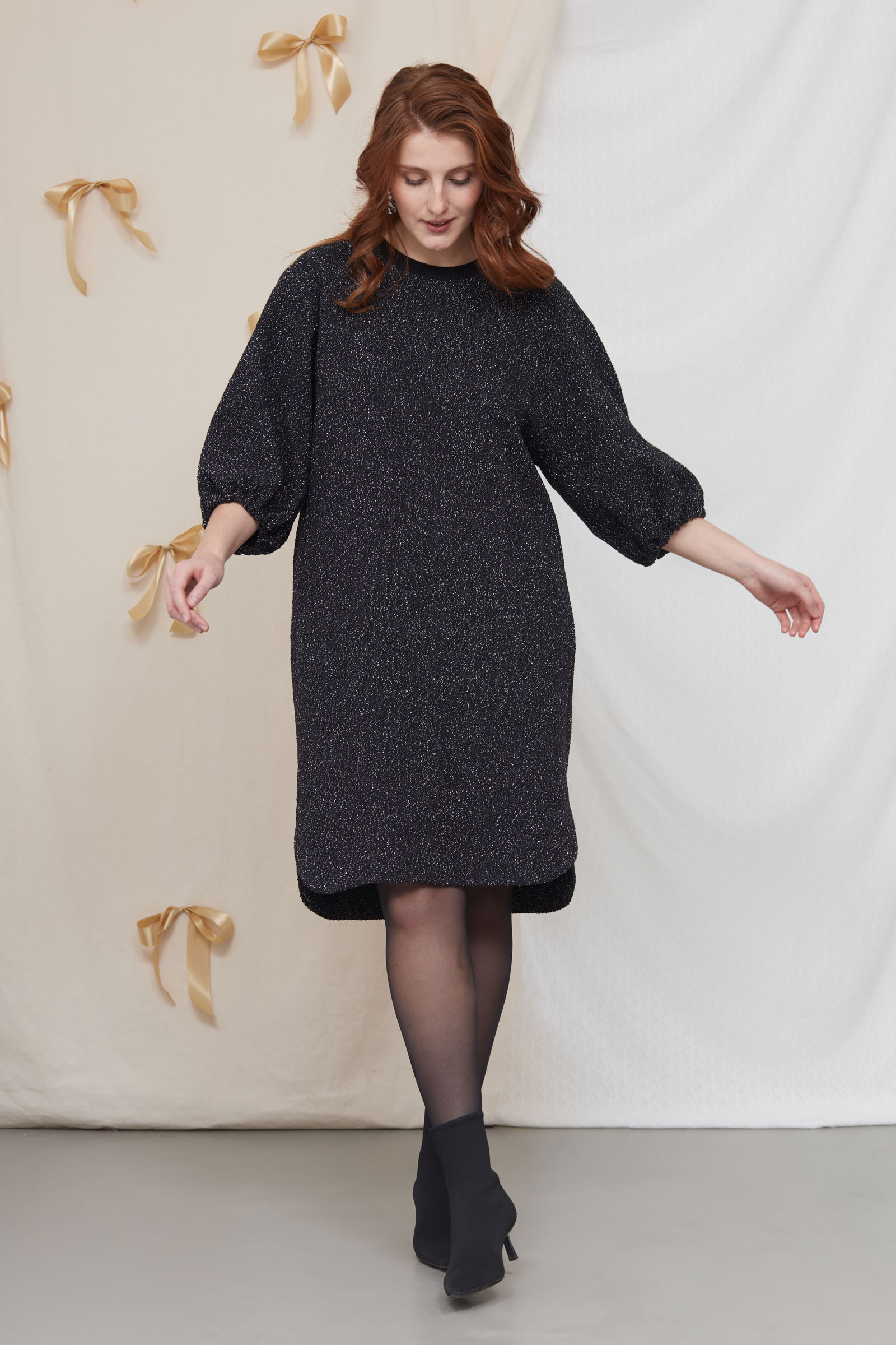 Платье oversize из фактурного трикотажа с люрексом.