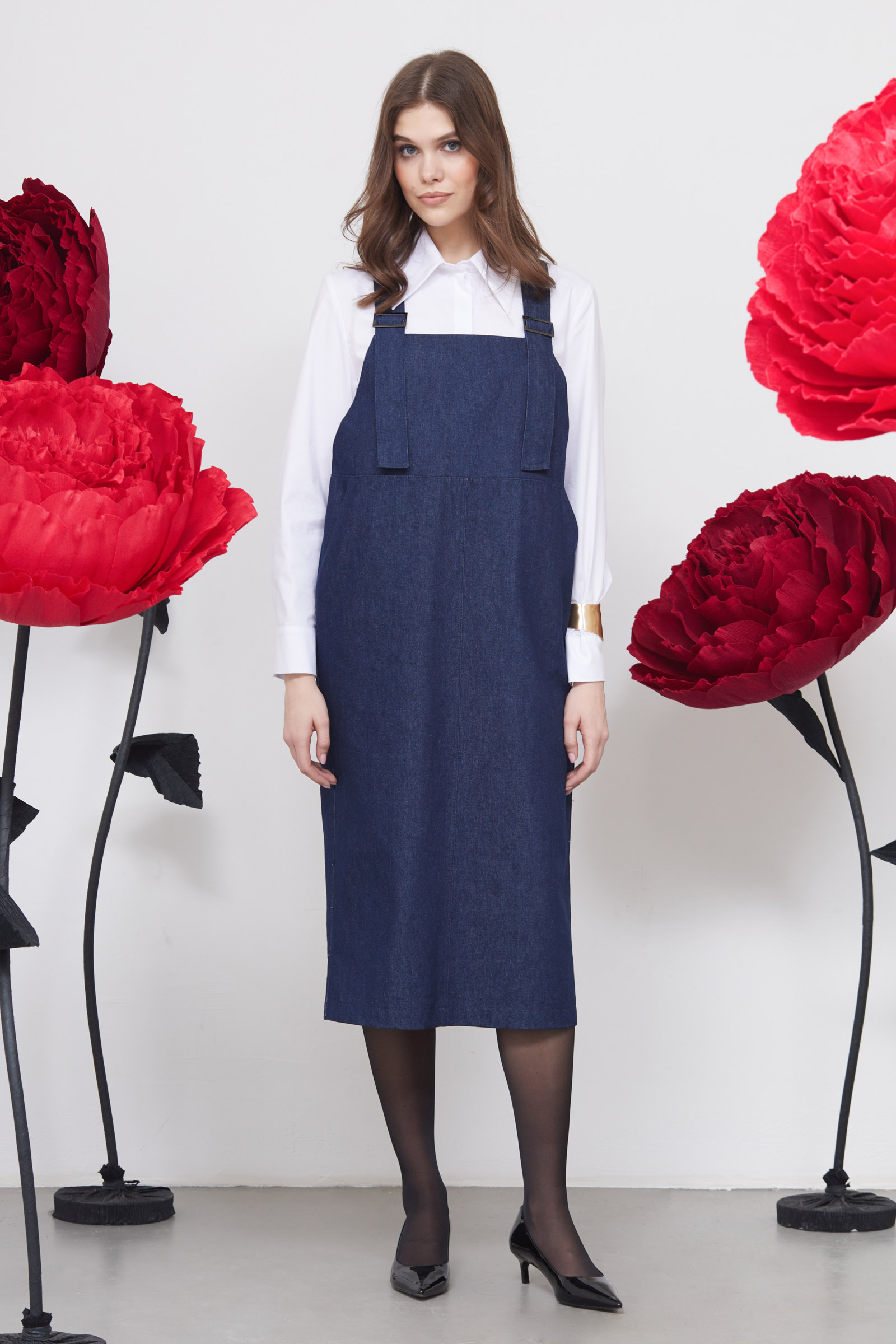 Сарафан oversize из денима на лямках.