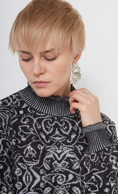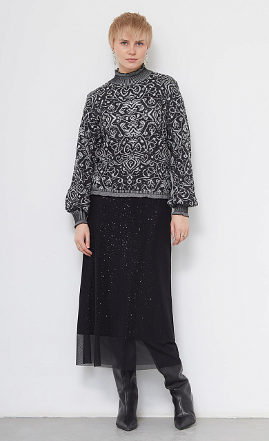 Короткий сарафан из поливискозы с люрексом и декором из кружева по низу.