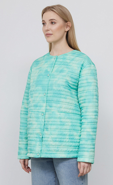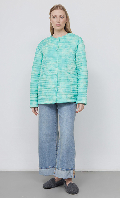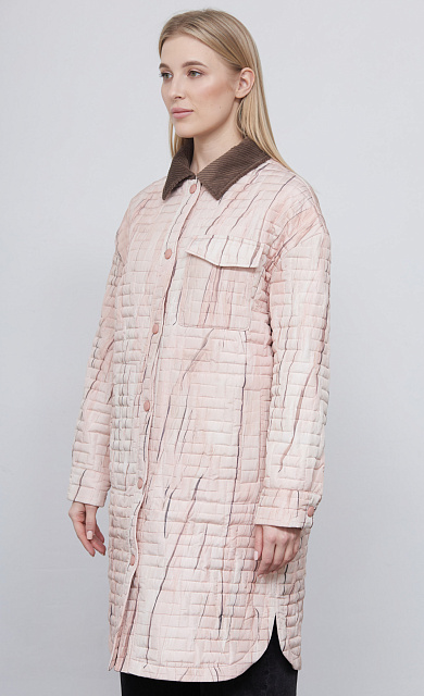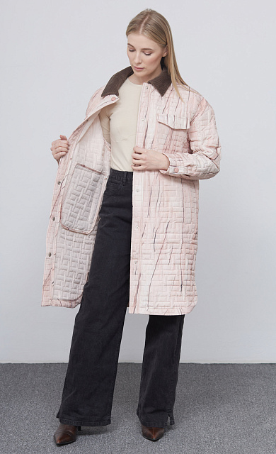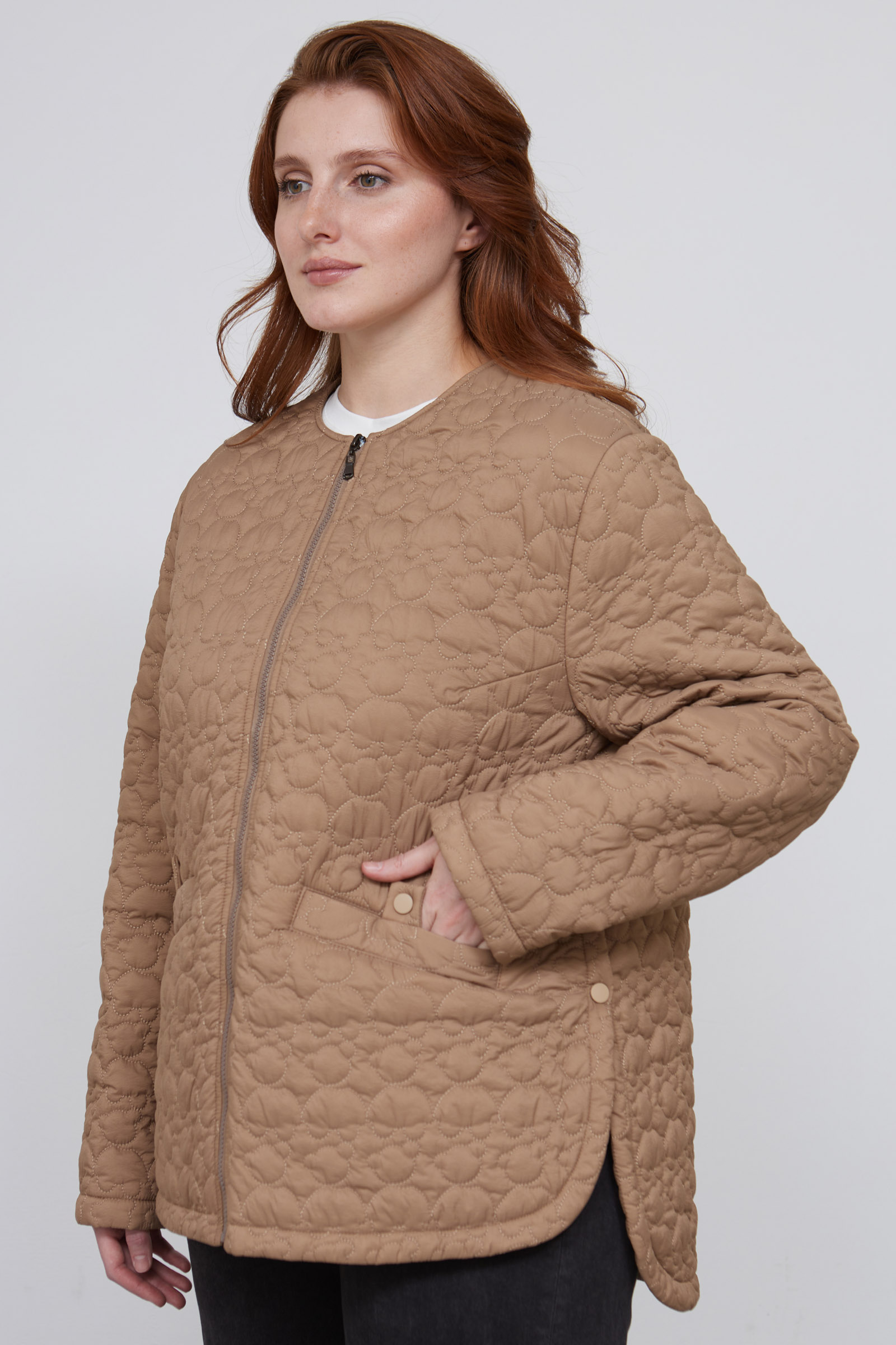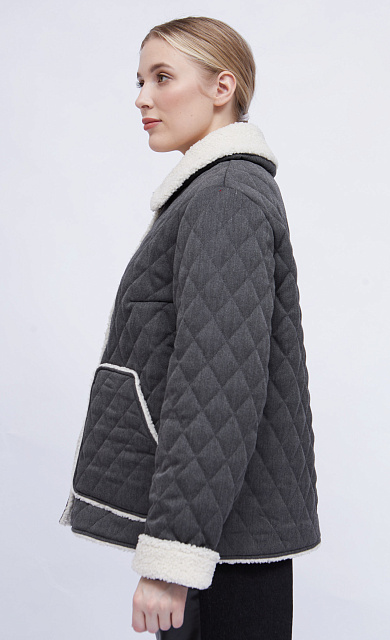 Короткая утепленная куртка на молнии с фигурной стежкой.
