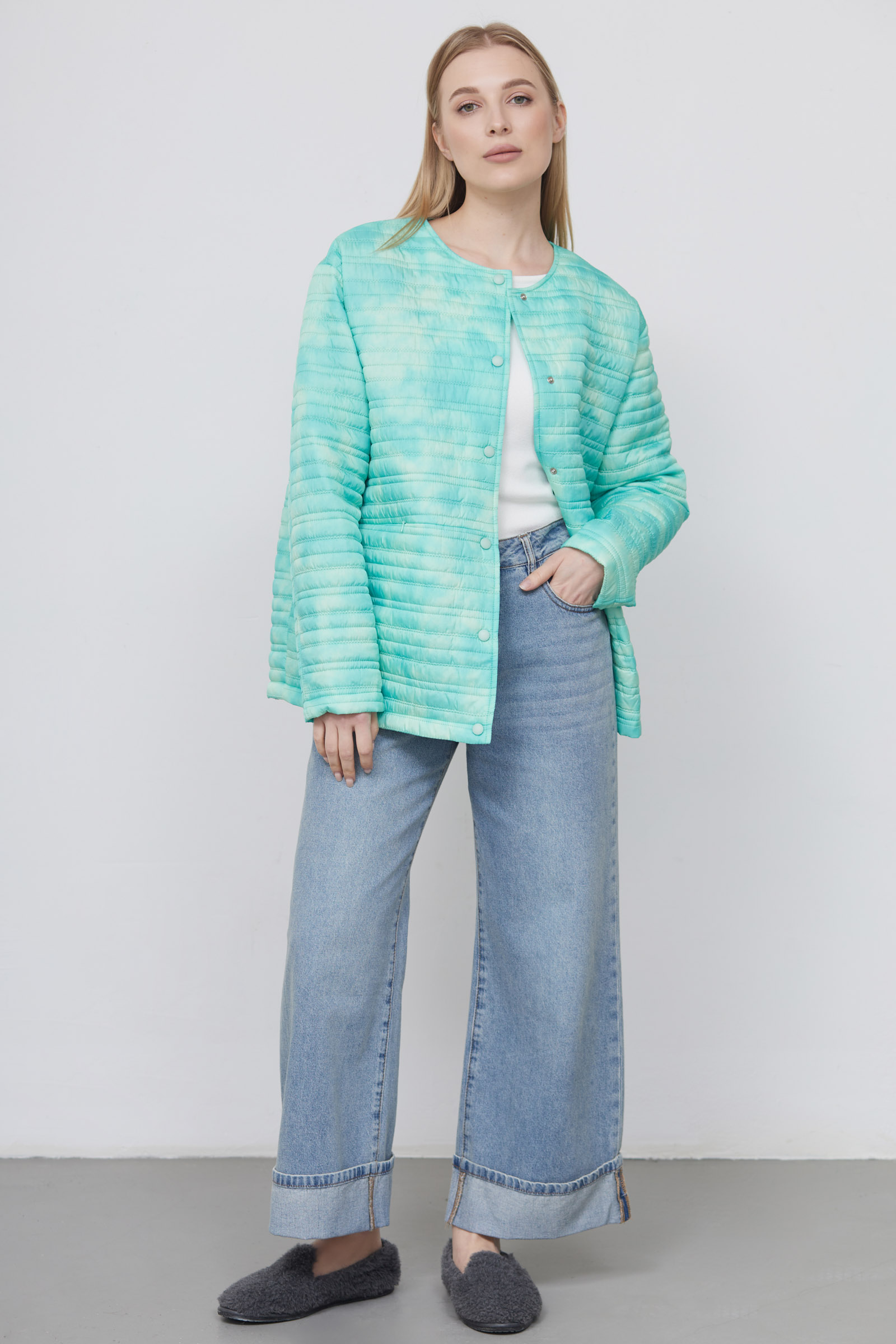 Легкая стеганая куртка oversize с принтом тай-дай.