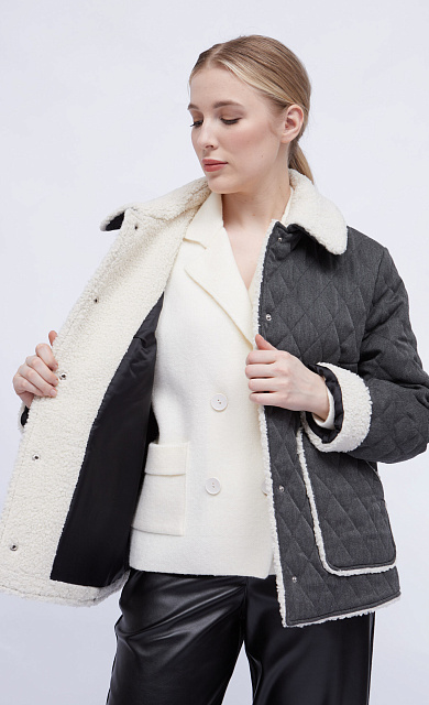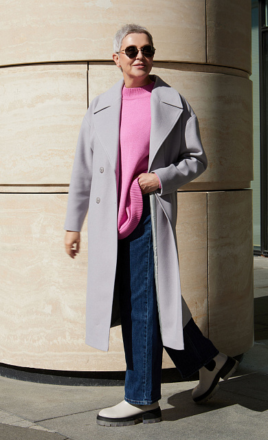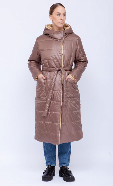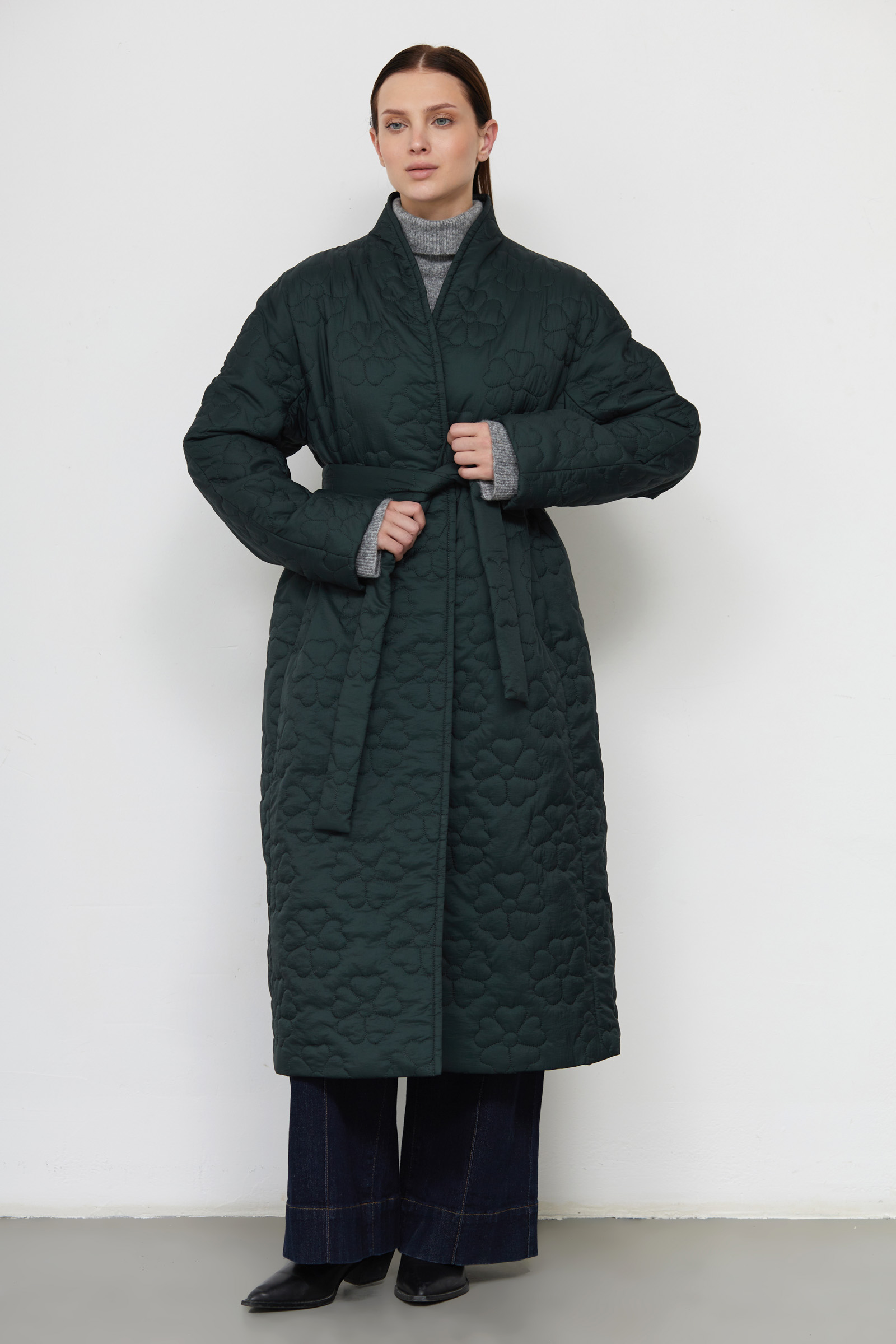 Длинное утепленное пальто oversize с фигурной стежкой и съемным поясом.