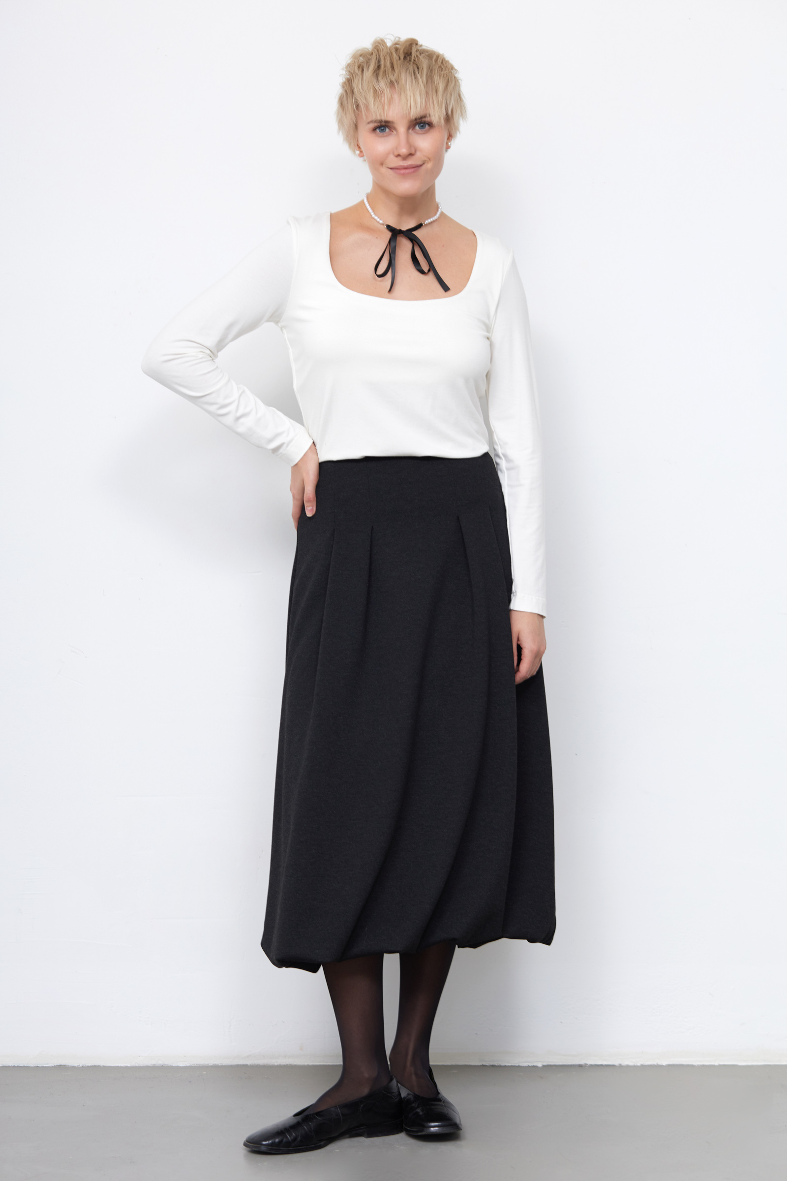 Юбка-баллон из мягкого неопрена со складками.