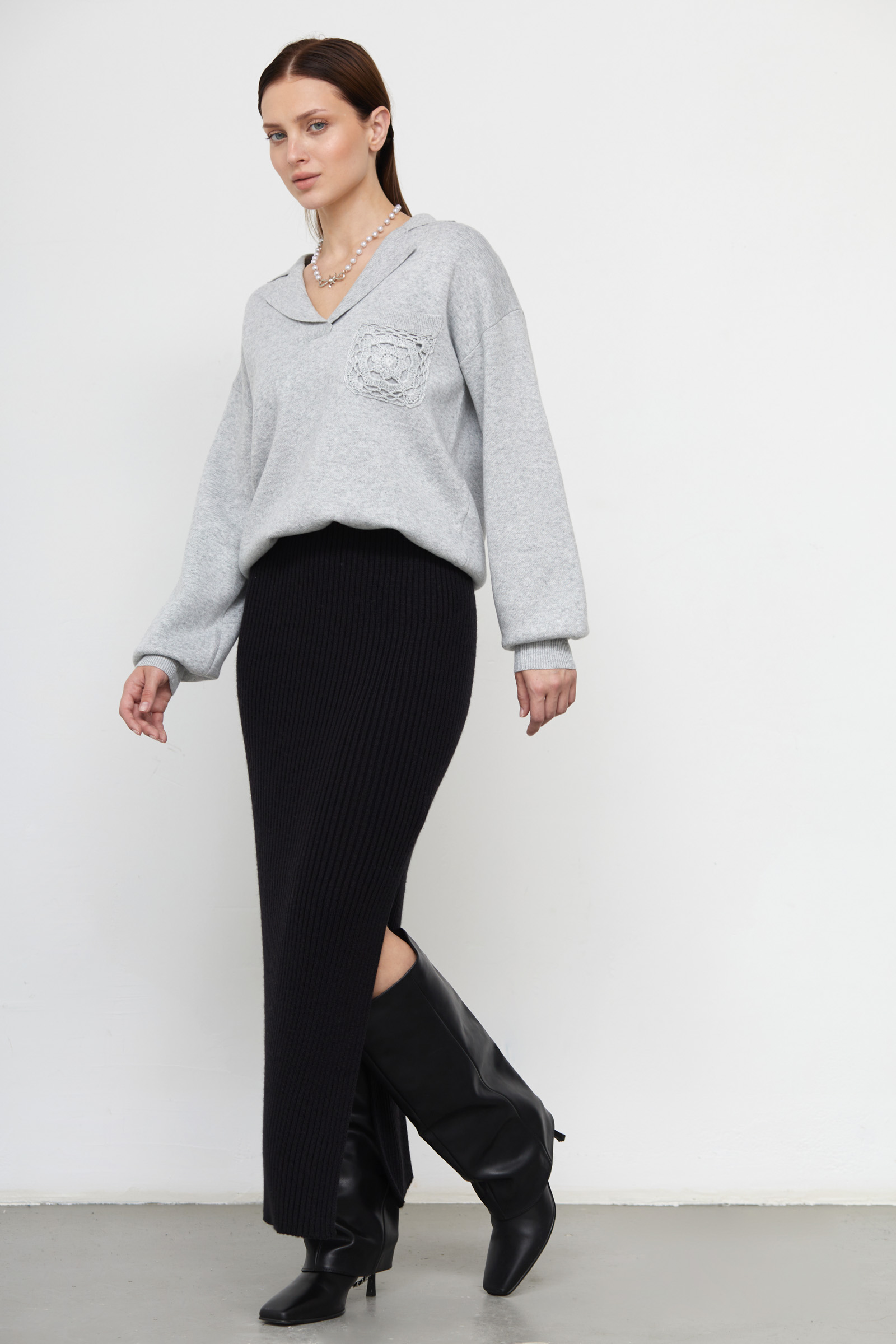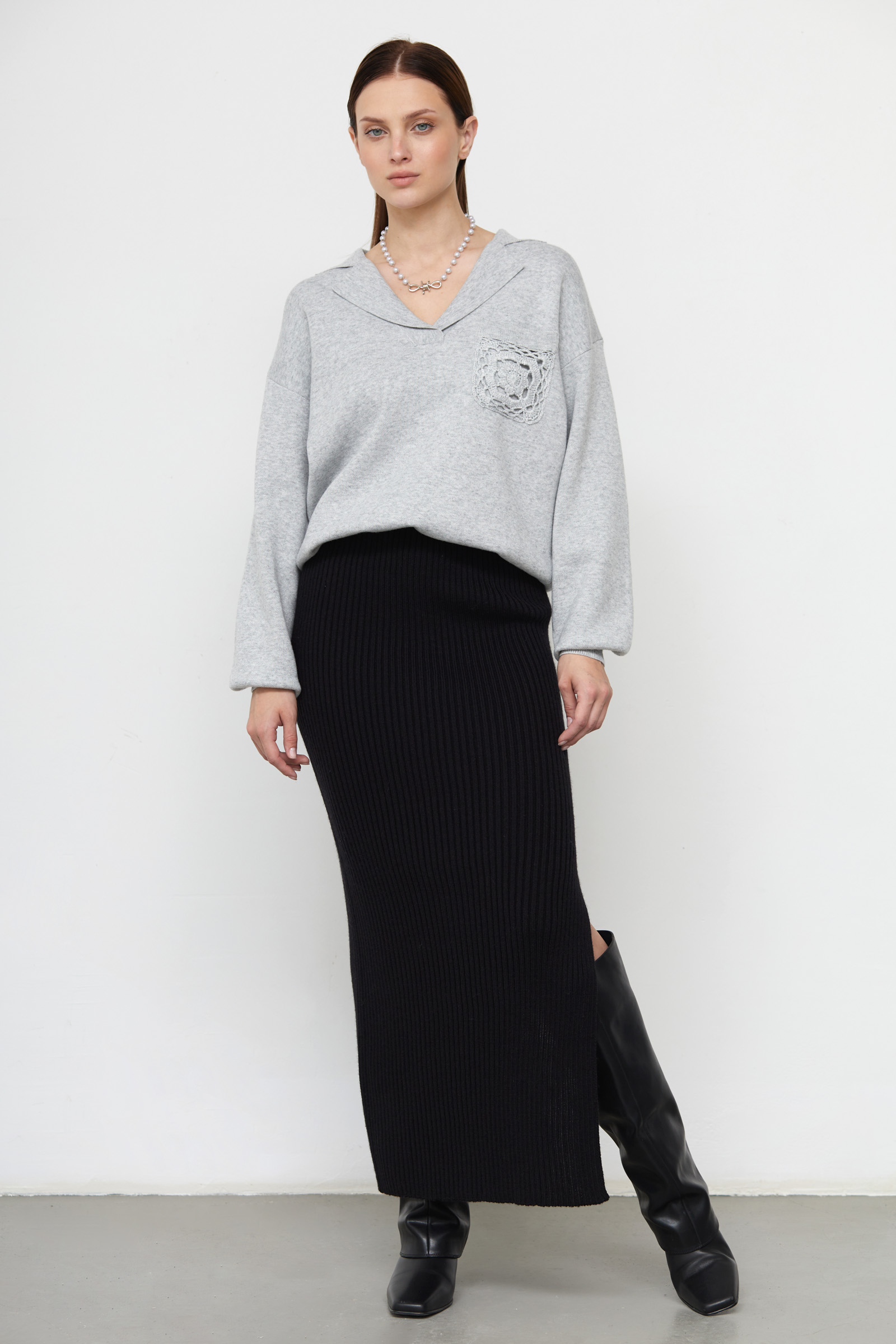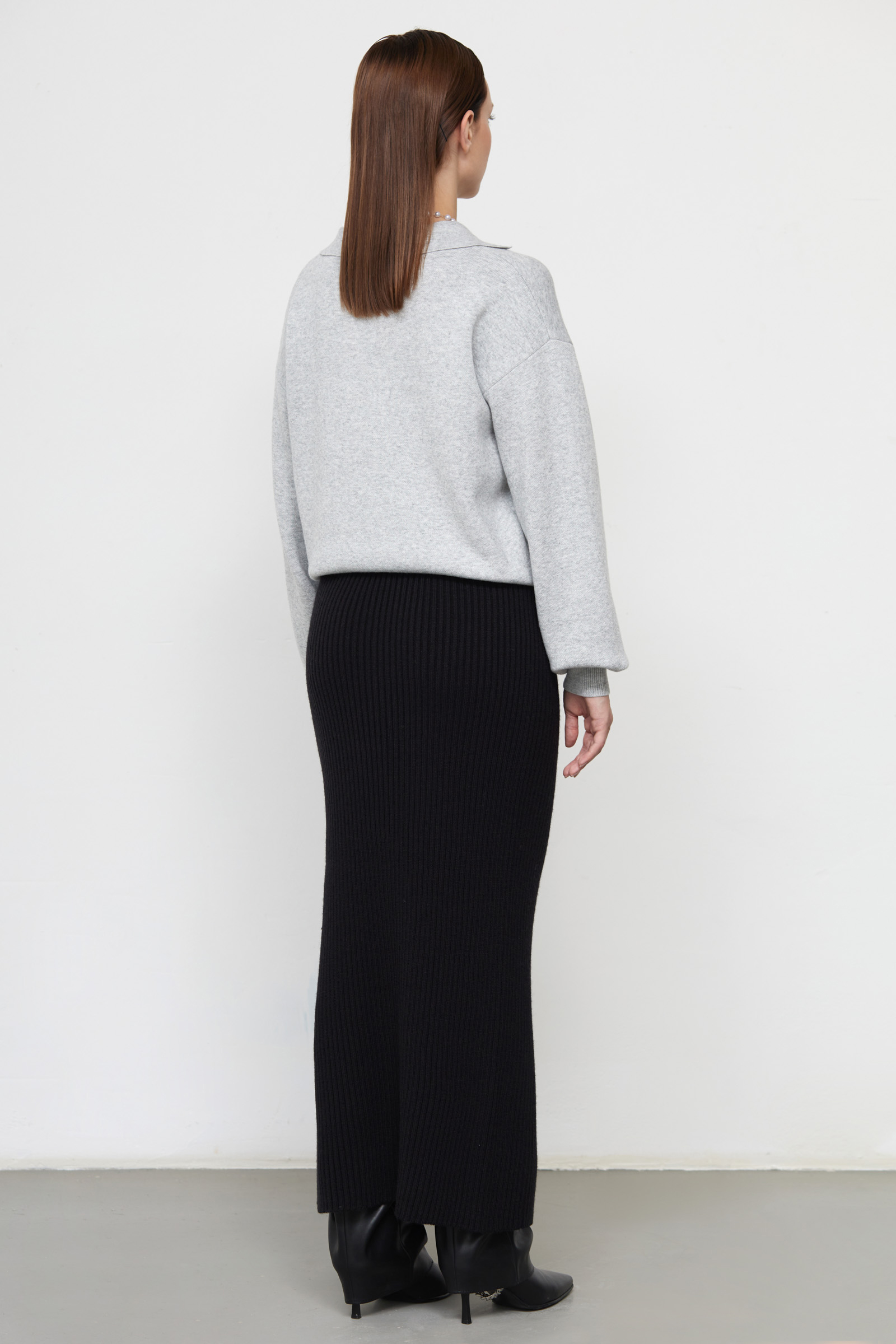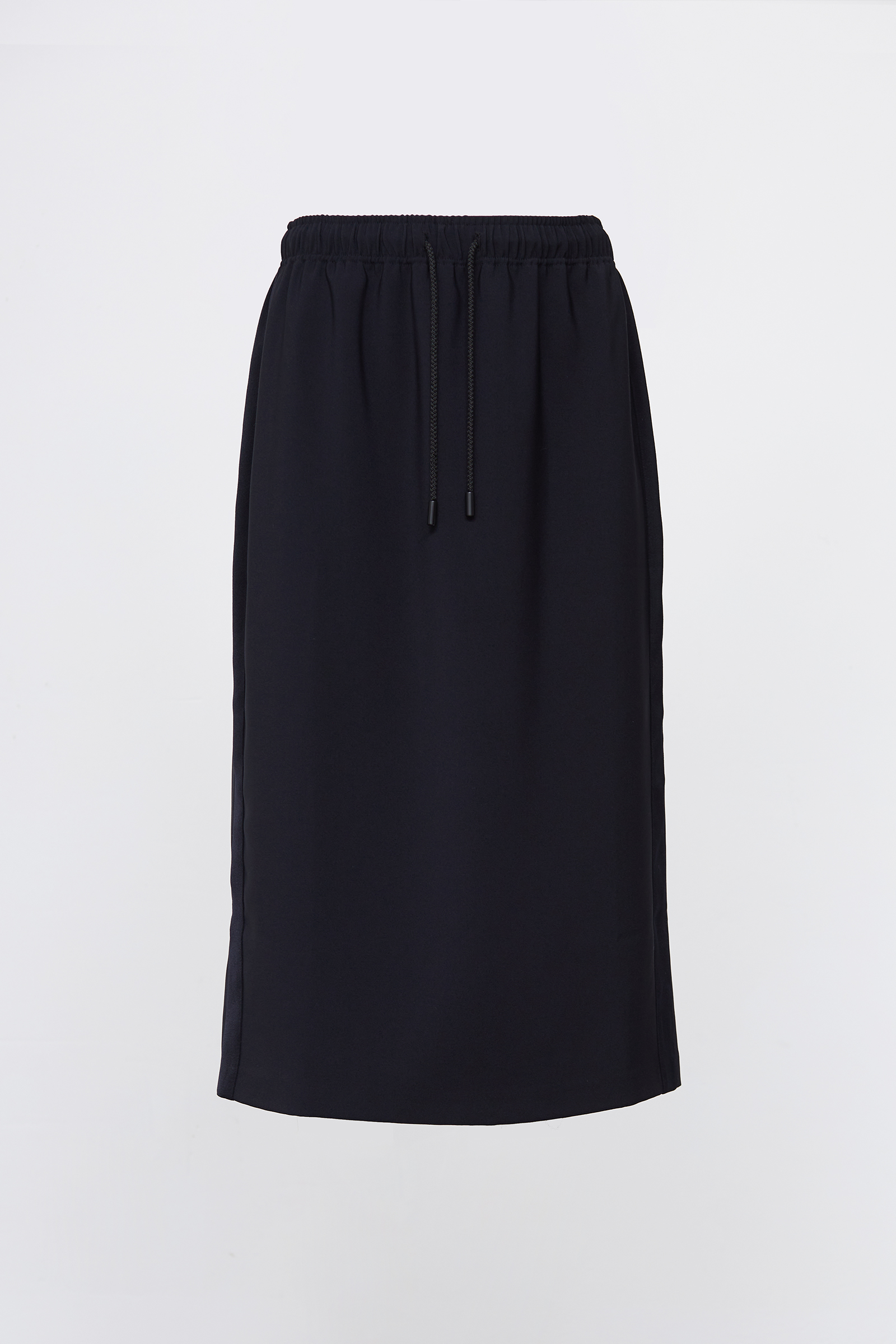 Короткая юбка-баска из костюмной ткани с фигурным низом и разрезом.