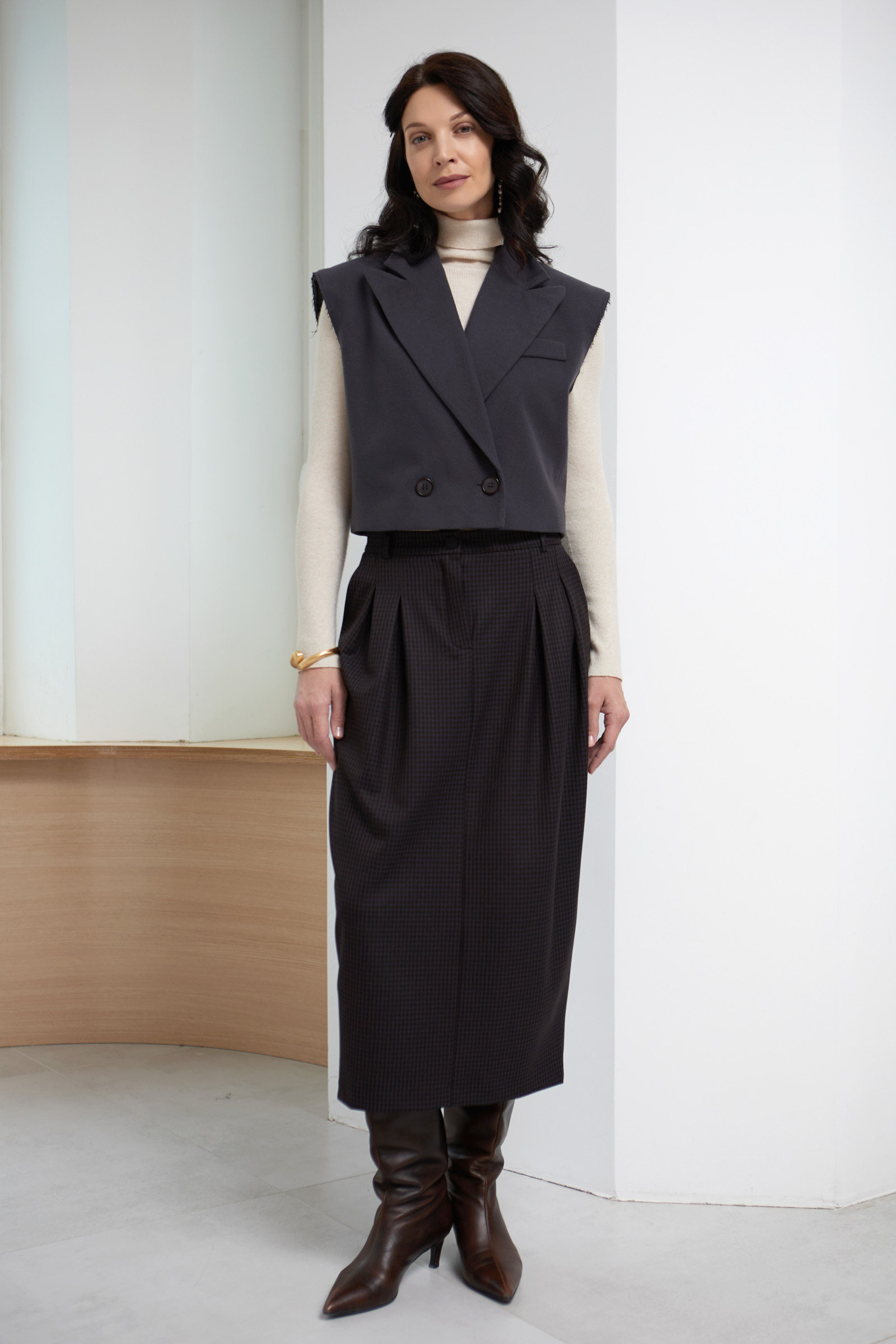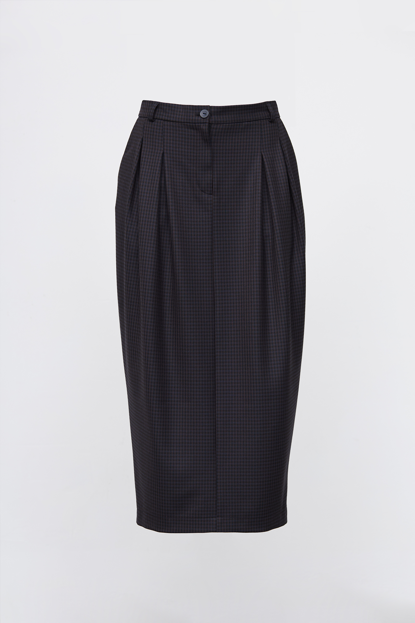 Юбка-тюльпан из поливискозы в клетку с защипами.