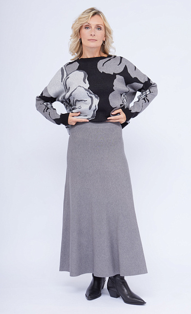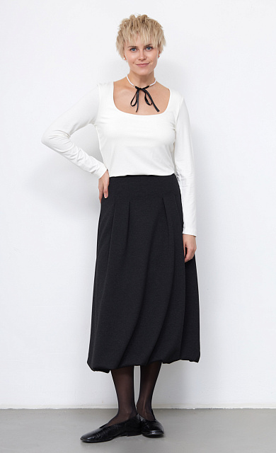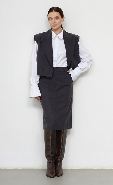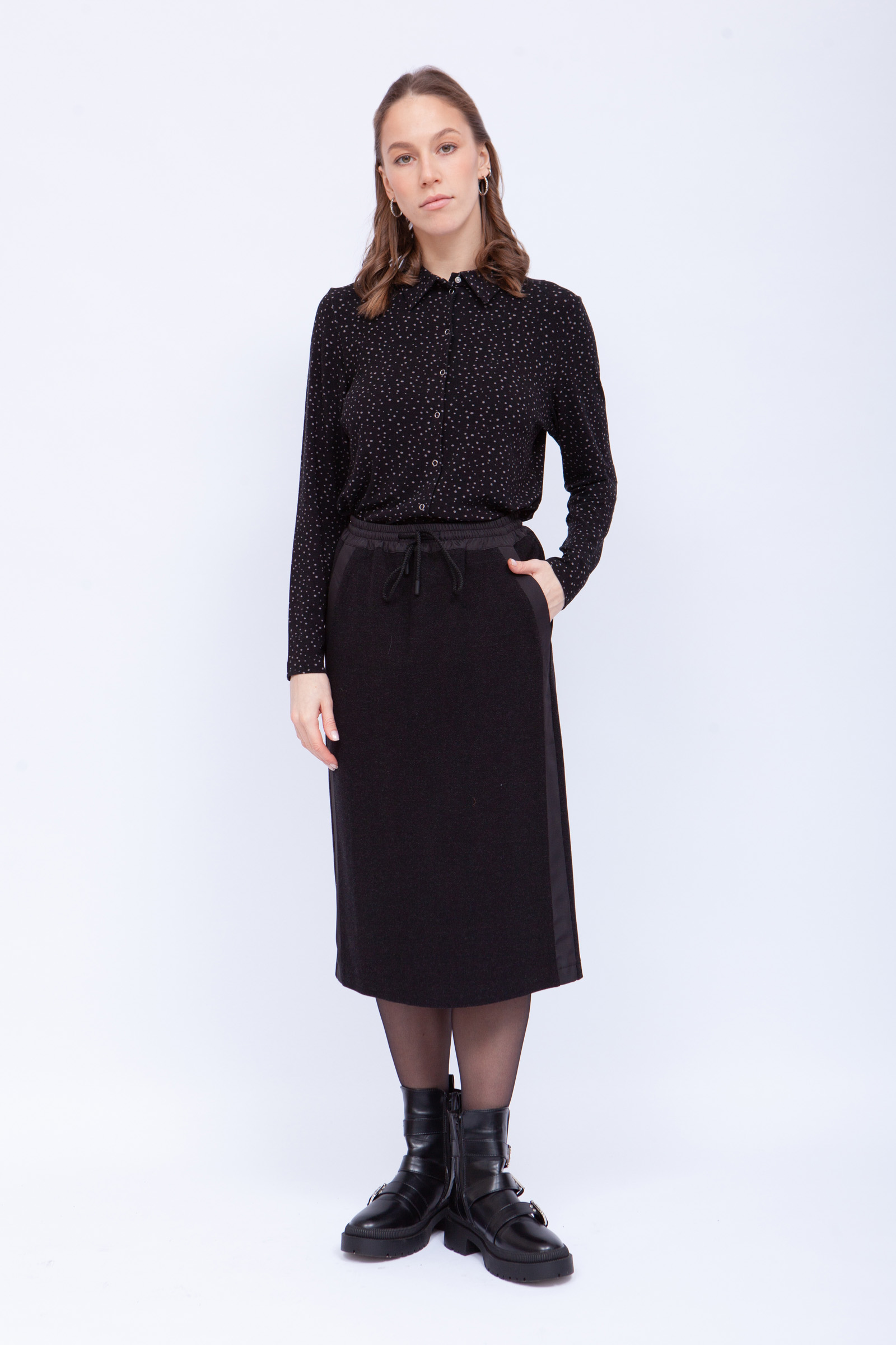 Юбка миди из мягкой костюмной ткани с поясом и лампасами из нейлона.
