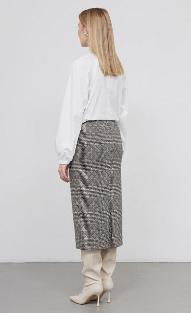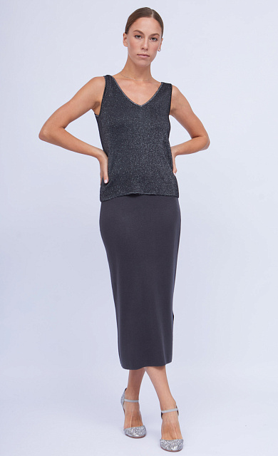 Короткая полушерстяная юбка с широким поясом и декором в виде страз.
