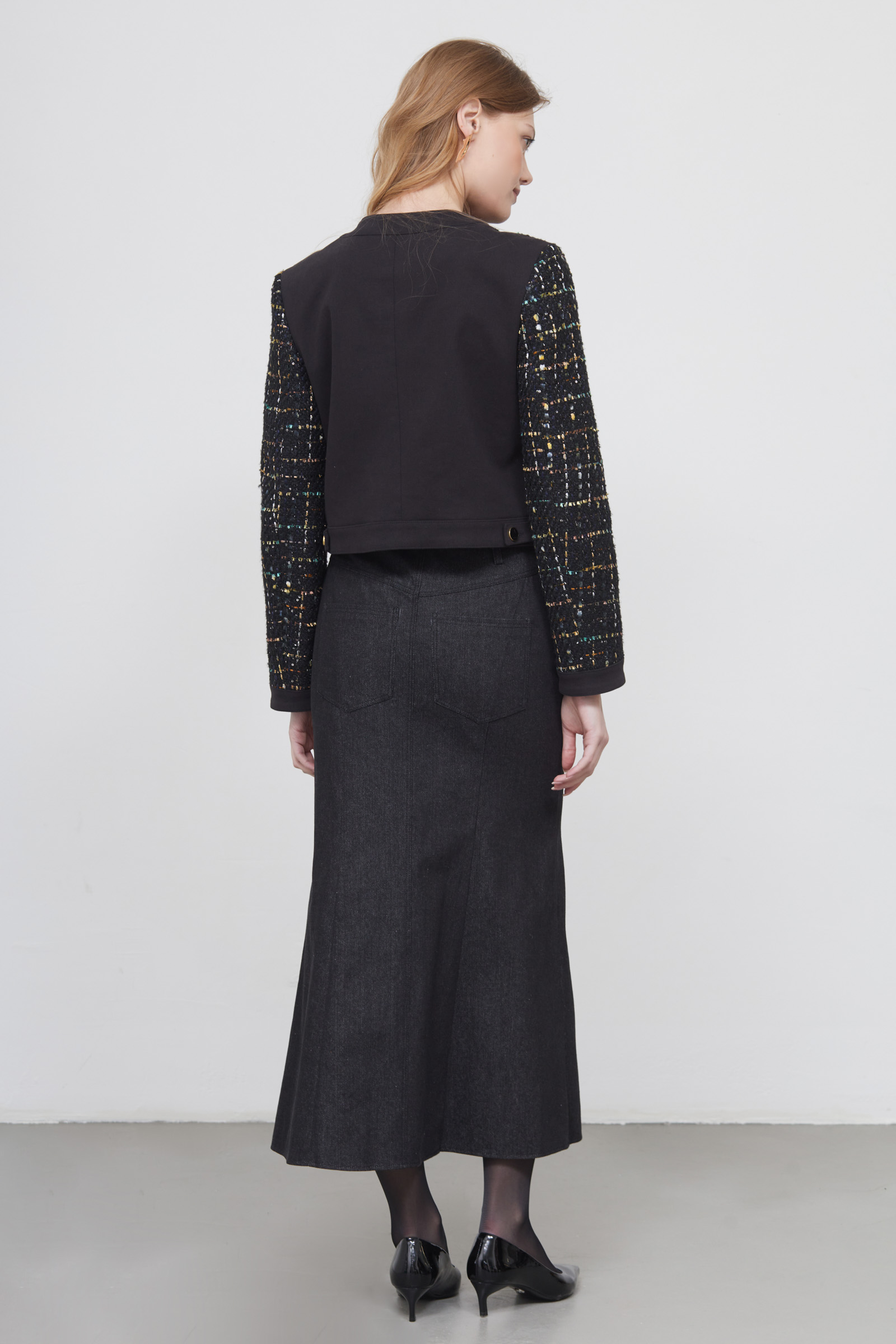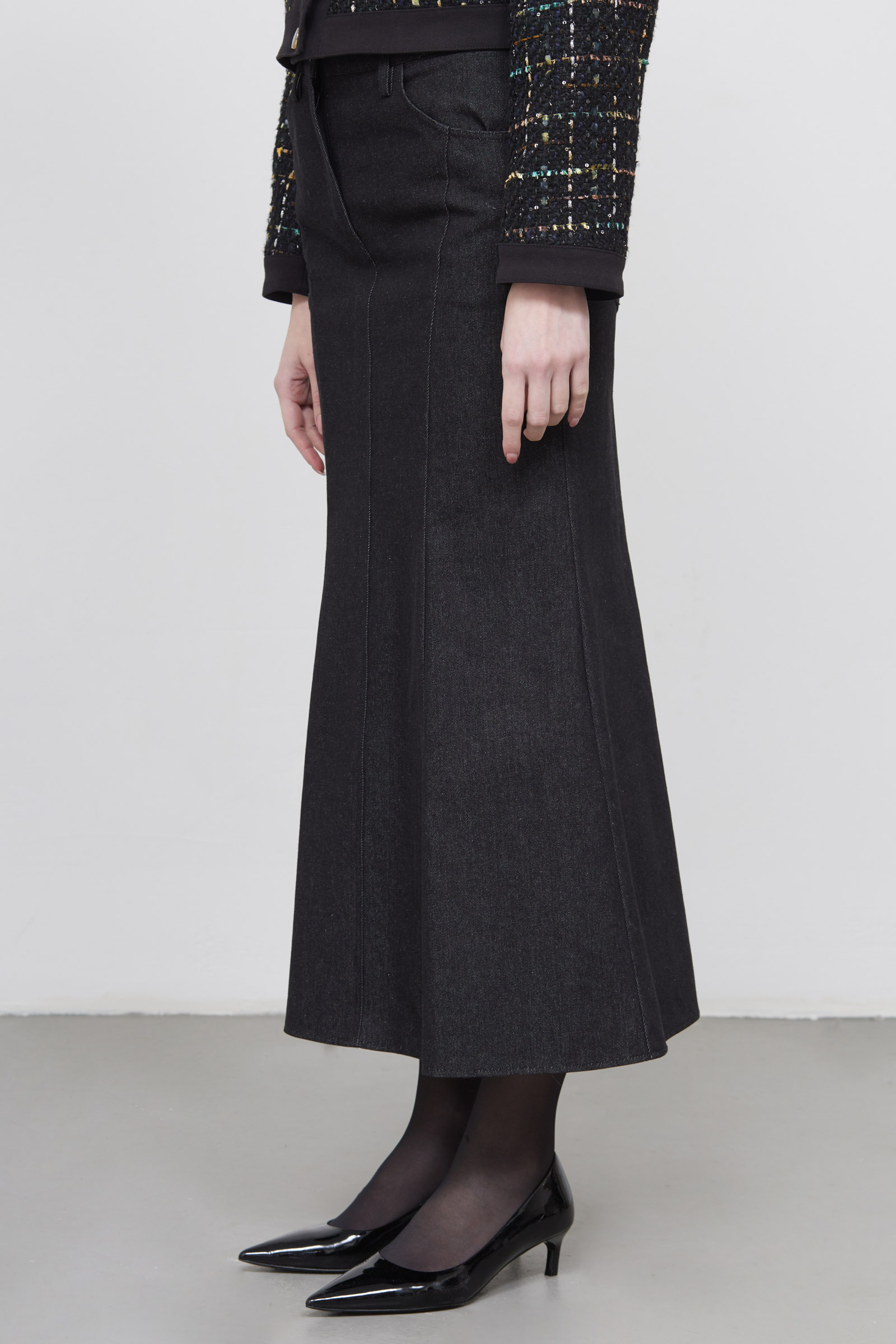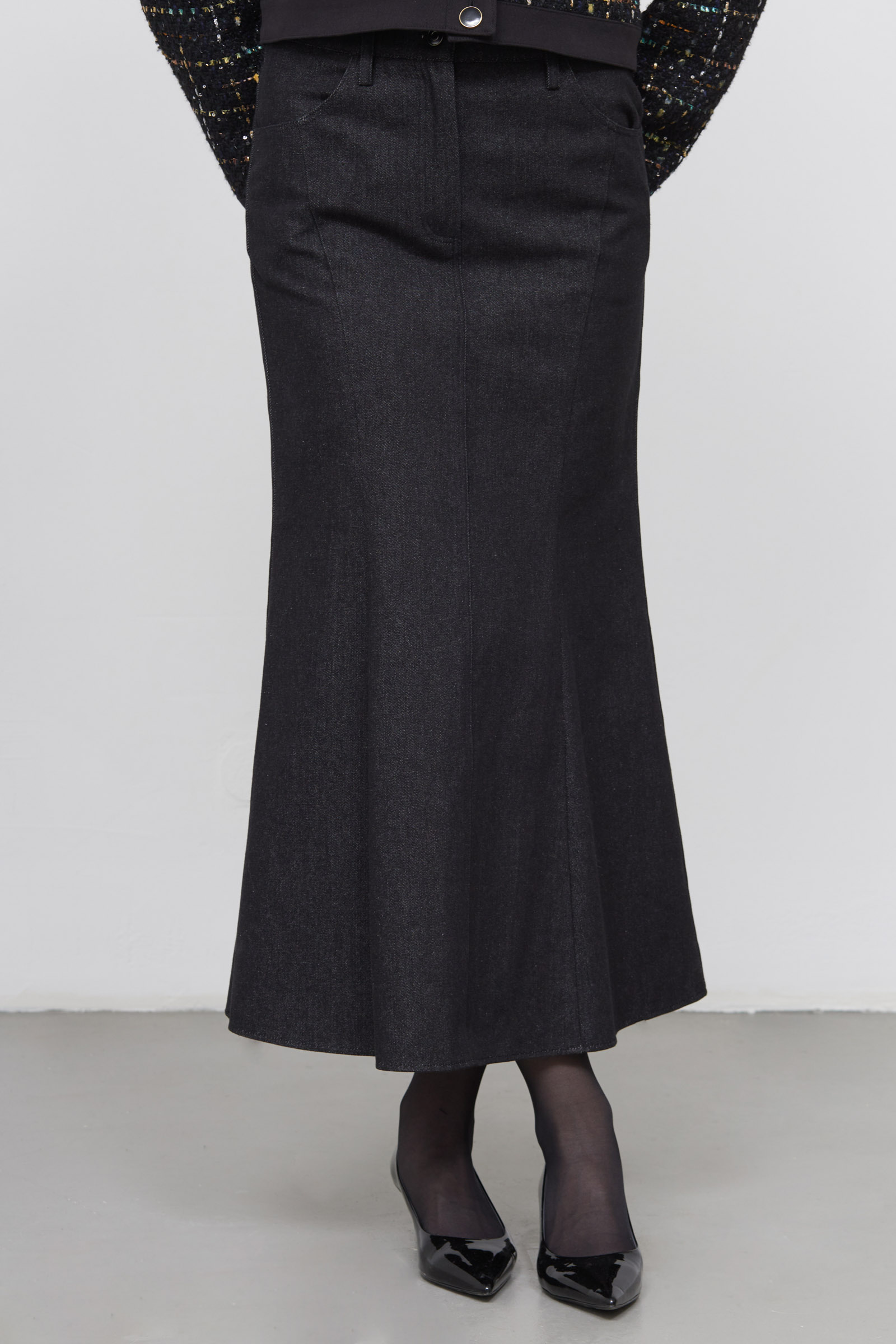 Юбка годе из денима с рельефными швами.