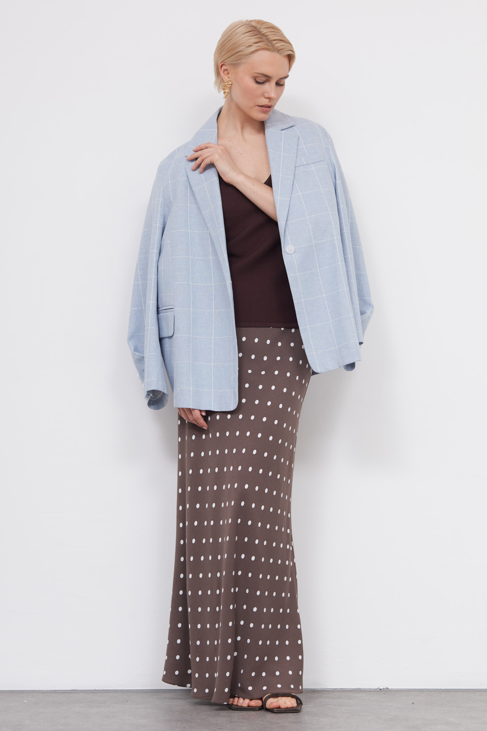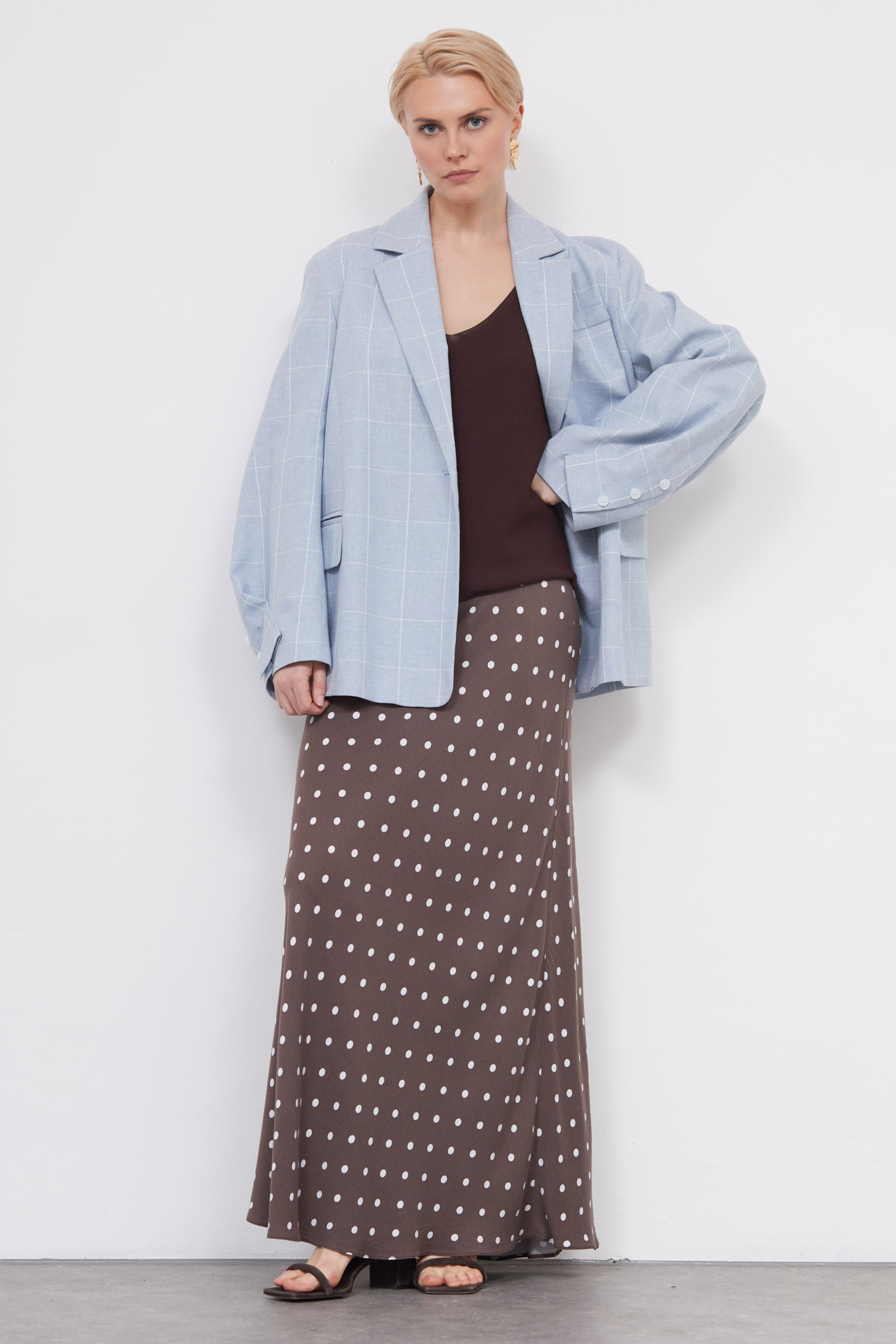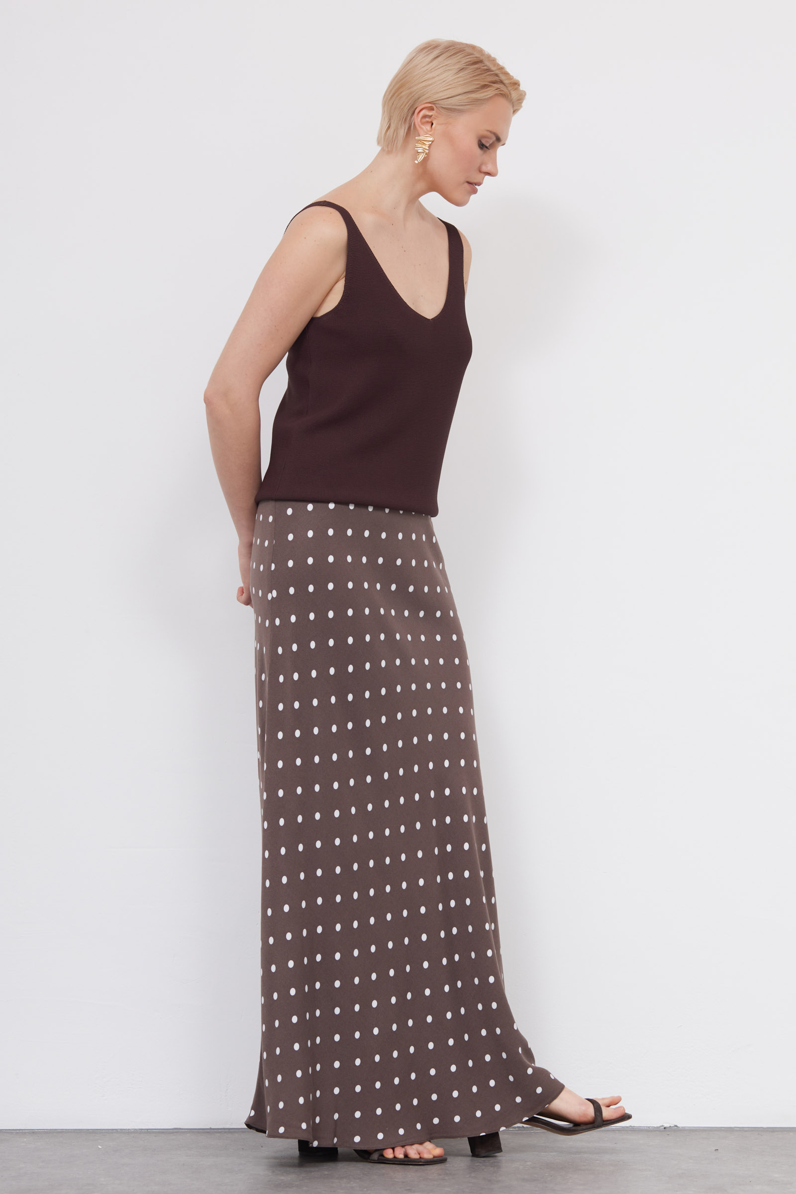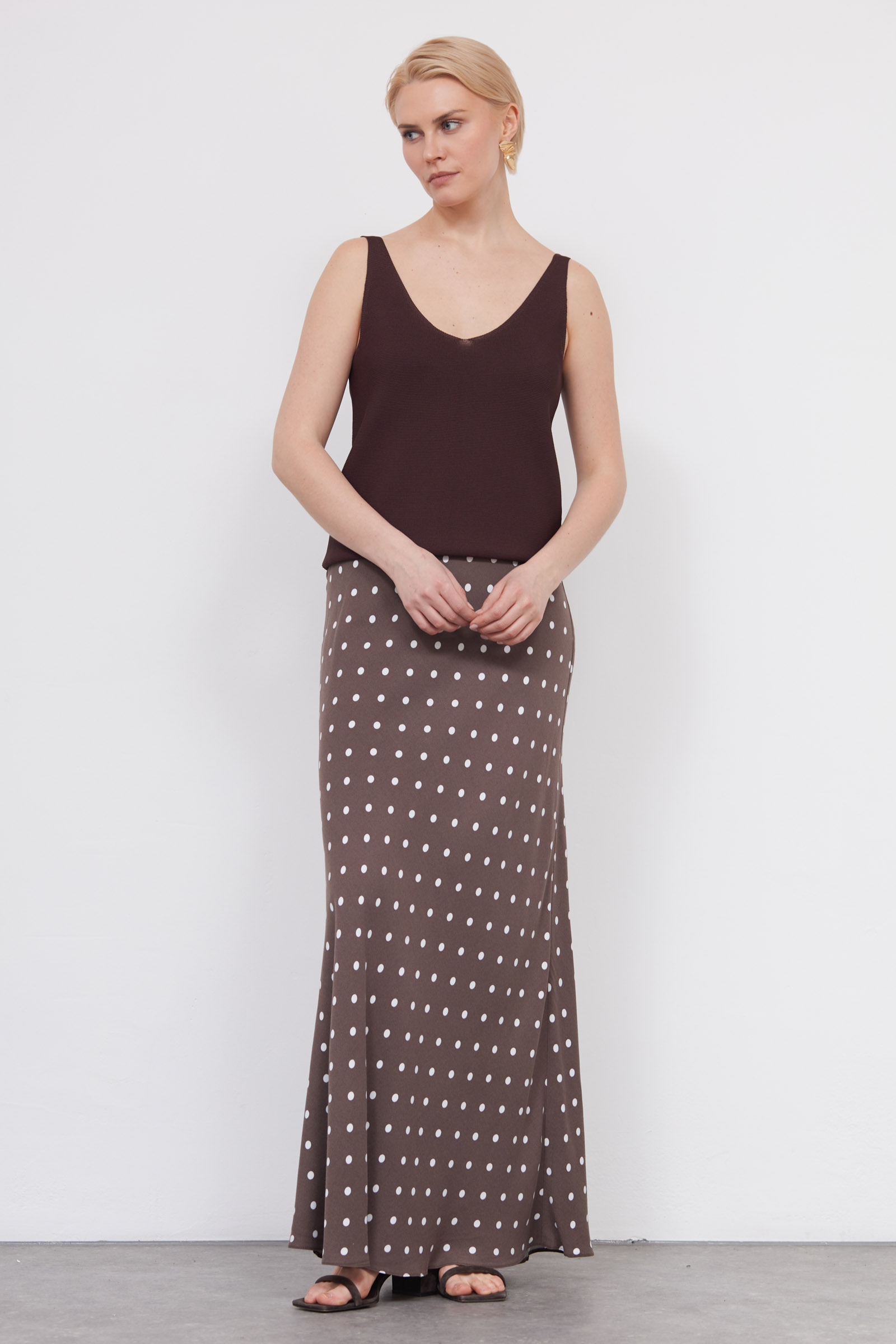 Длинная юбка годе из мягкой вискозы в горошек.