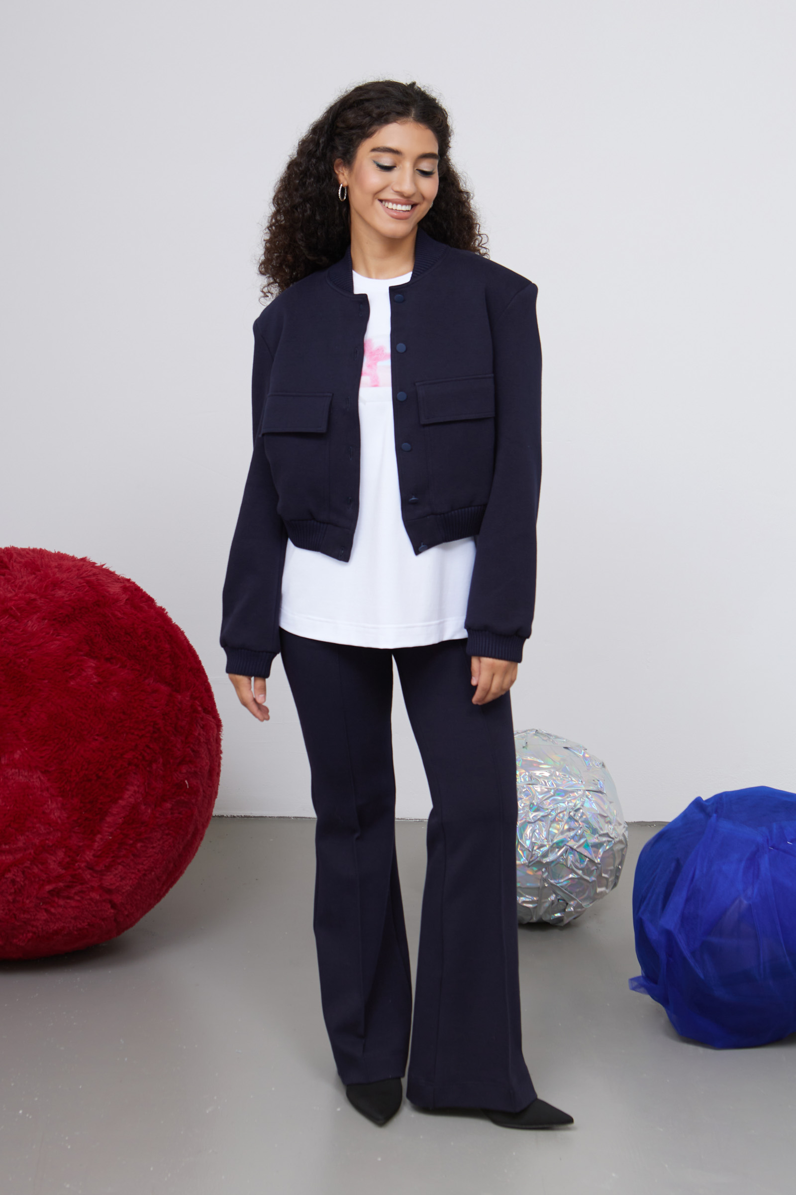 Укороченная куртка бомбер из плотной хлопковой ткани в рубчик.