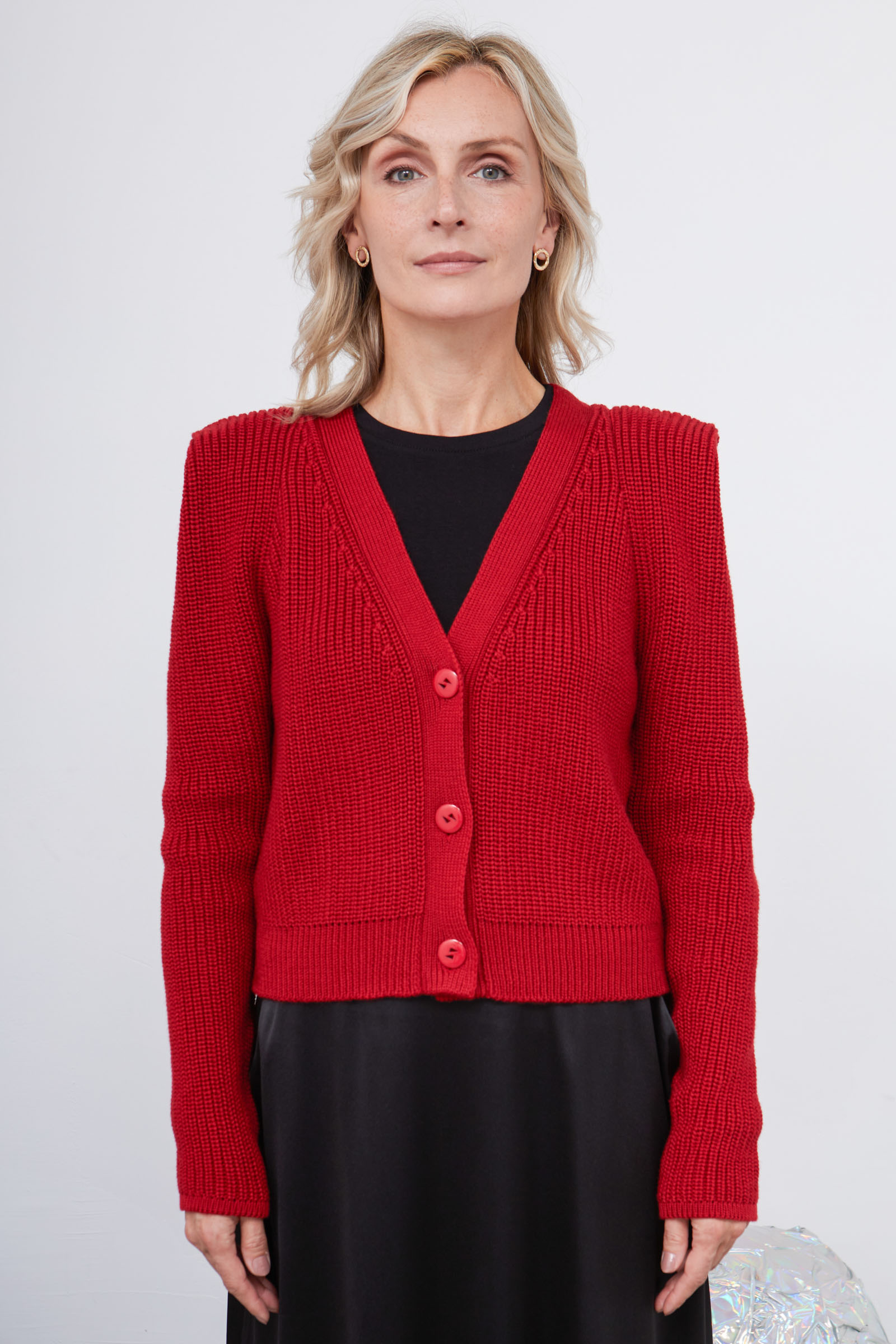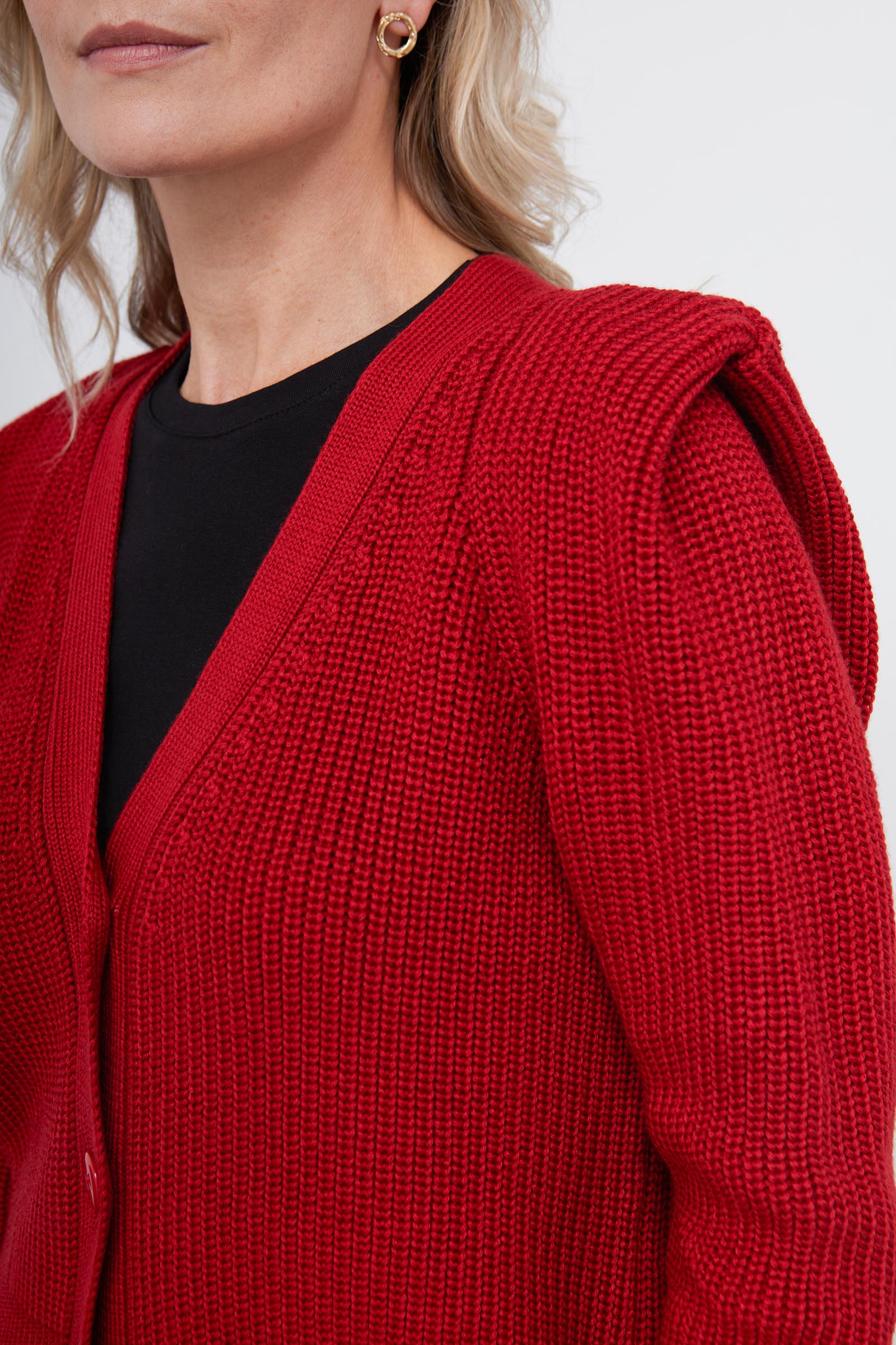 Вязаный кардиган с шерстью и акцентными плечами.