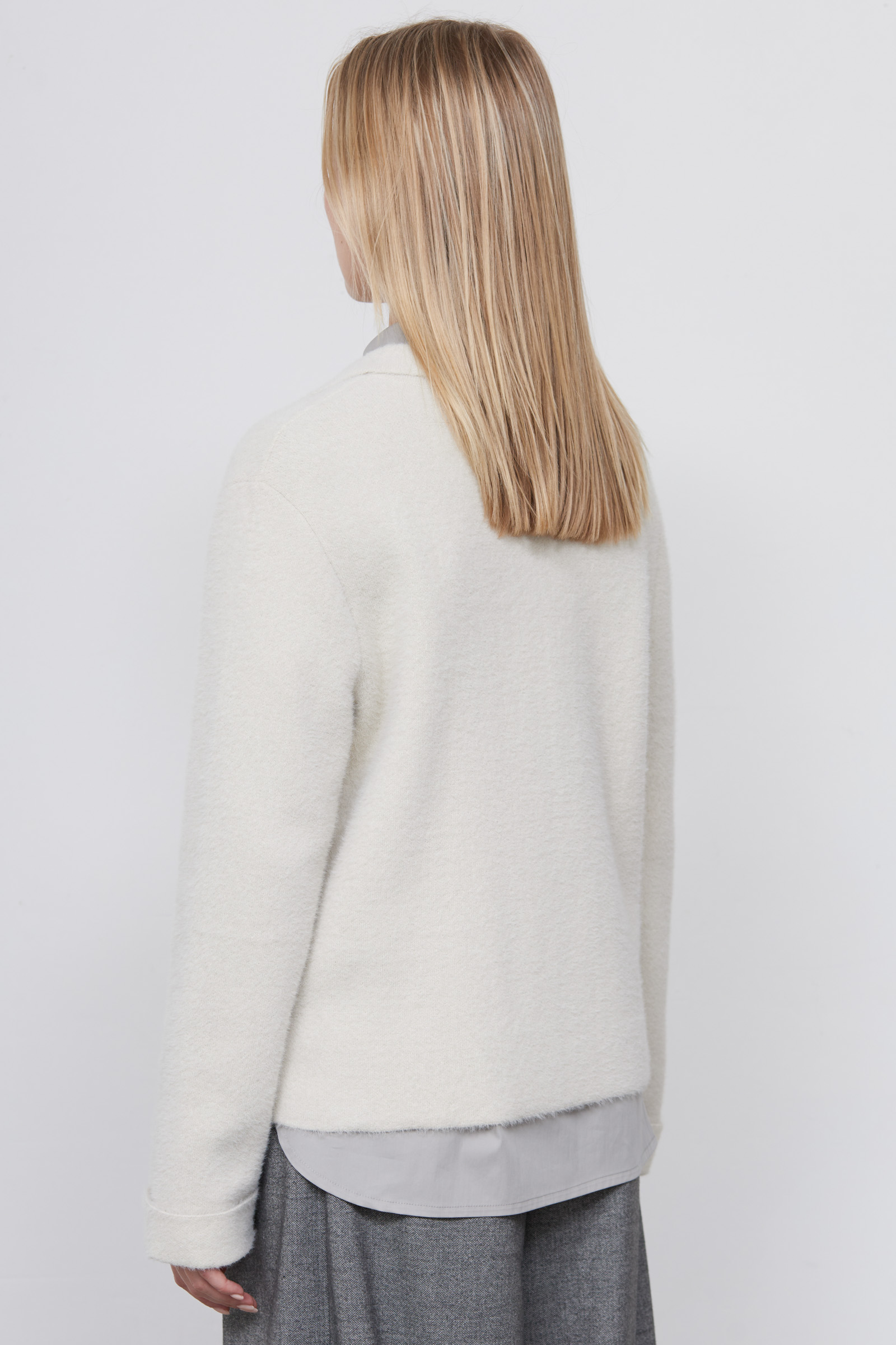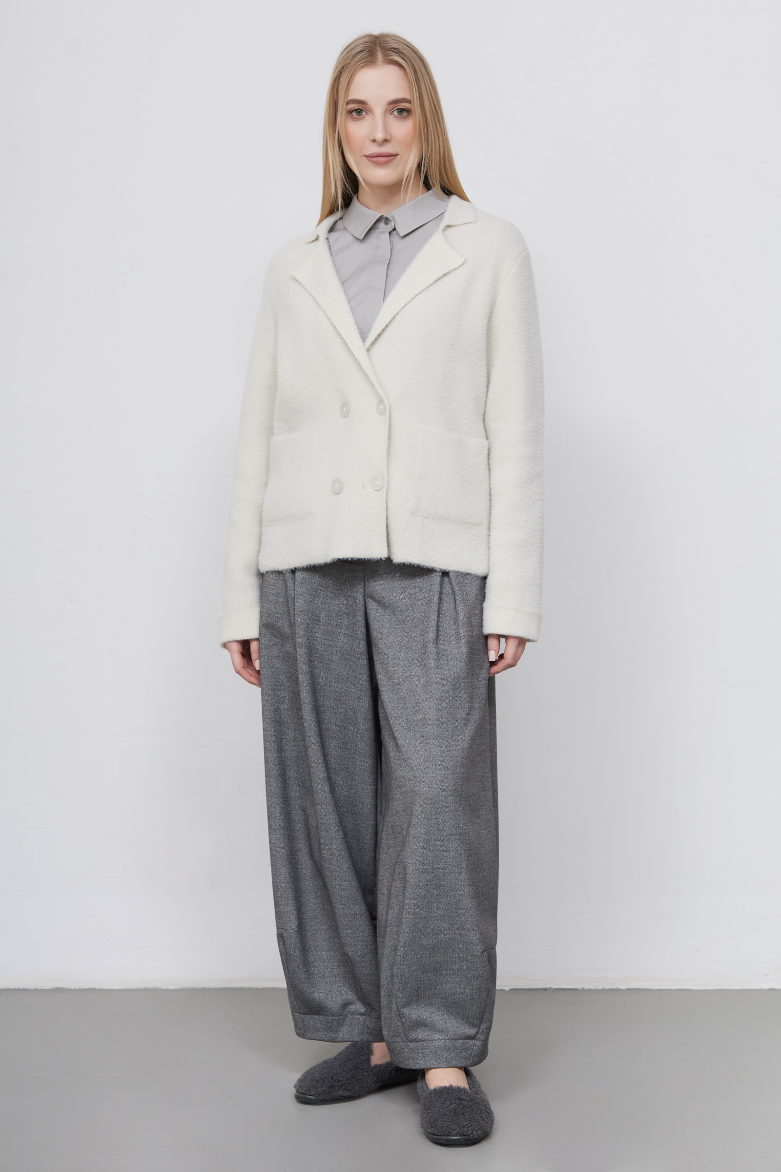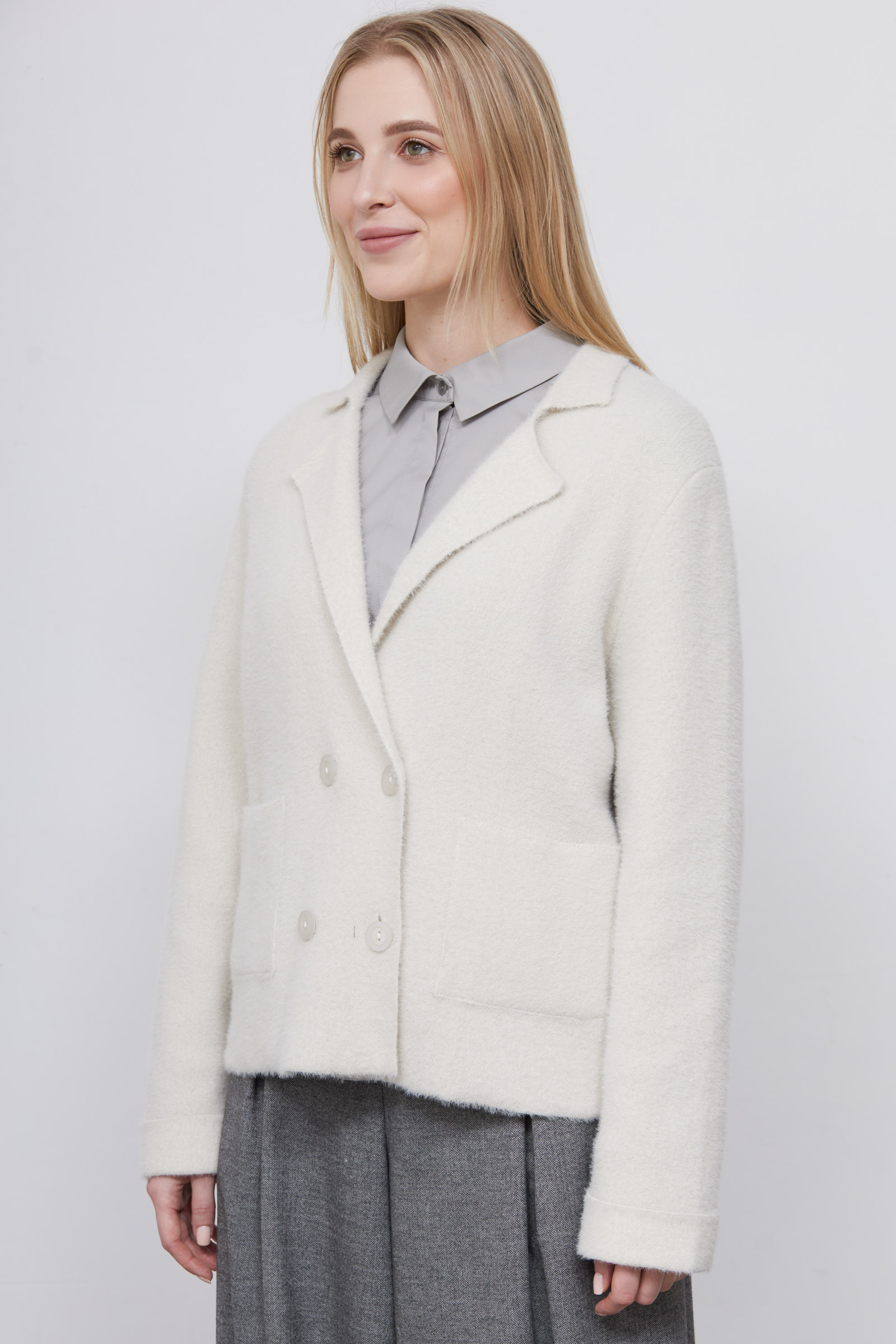 Двубортный жакет из мягкого вязаного трикотажа с шерстью.