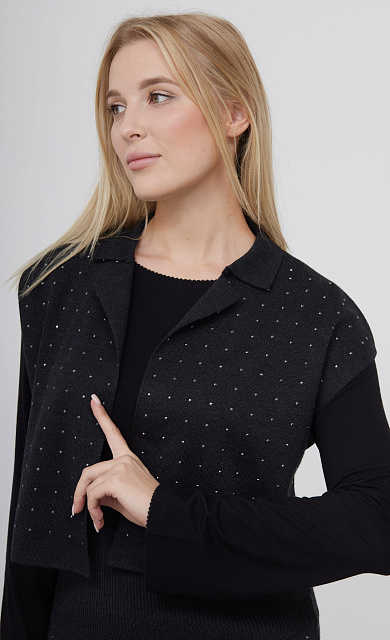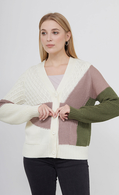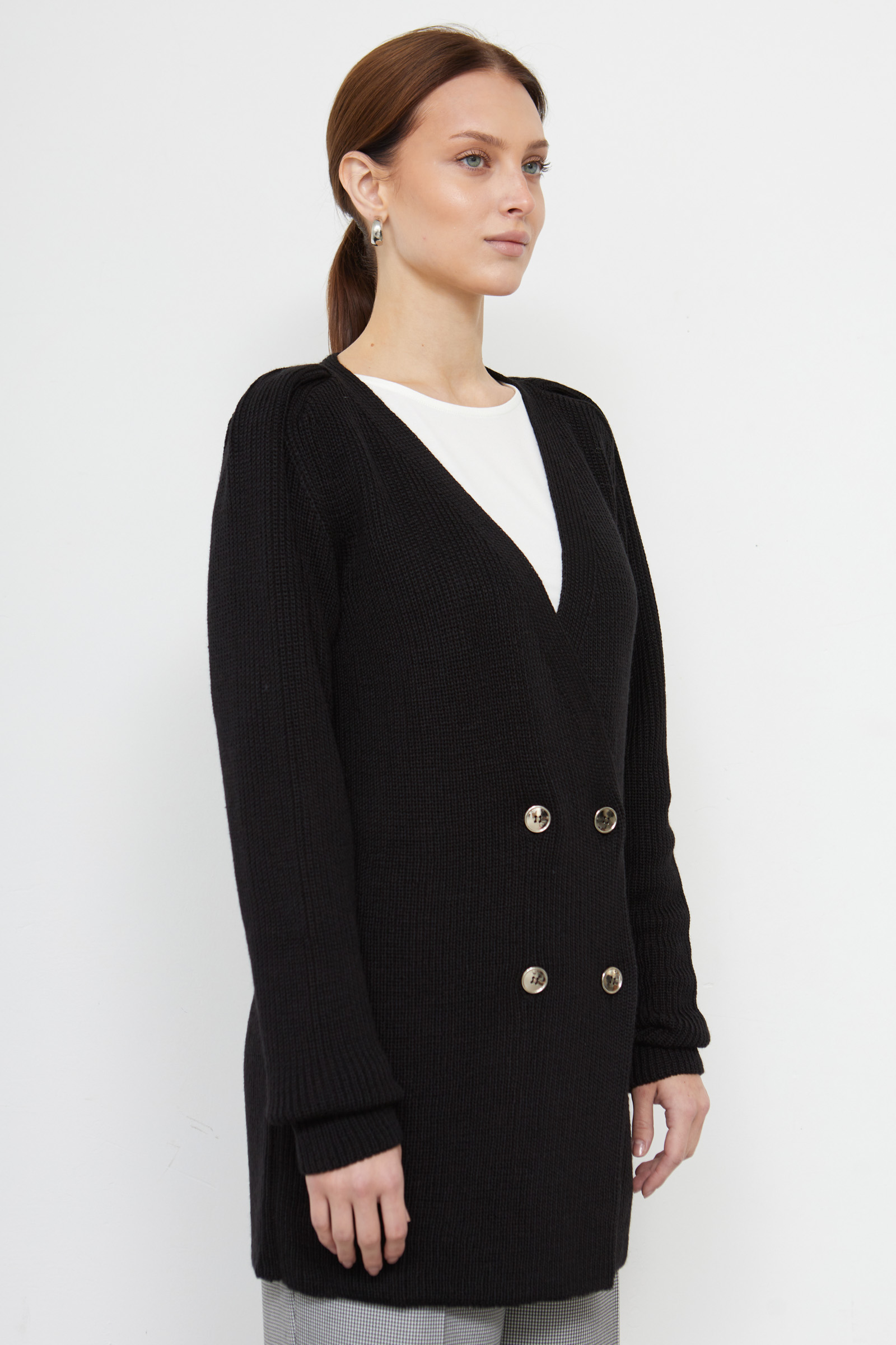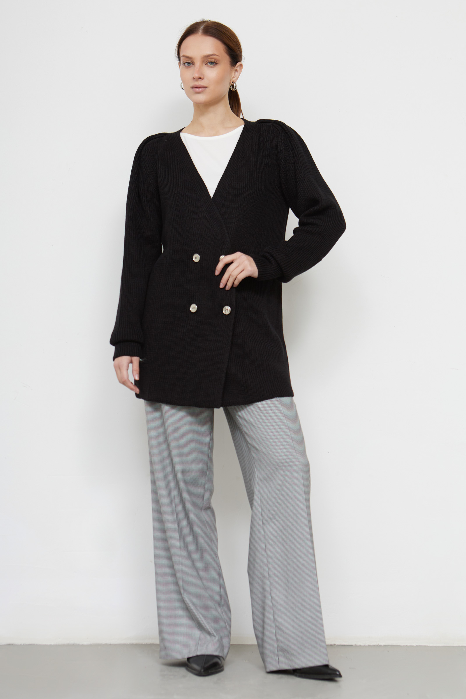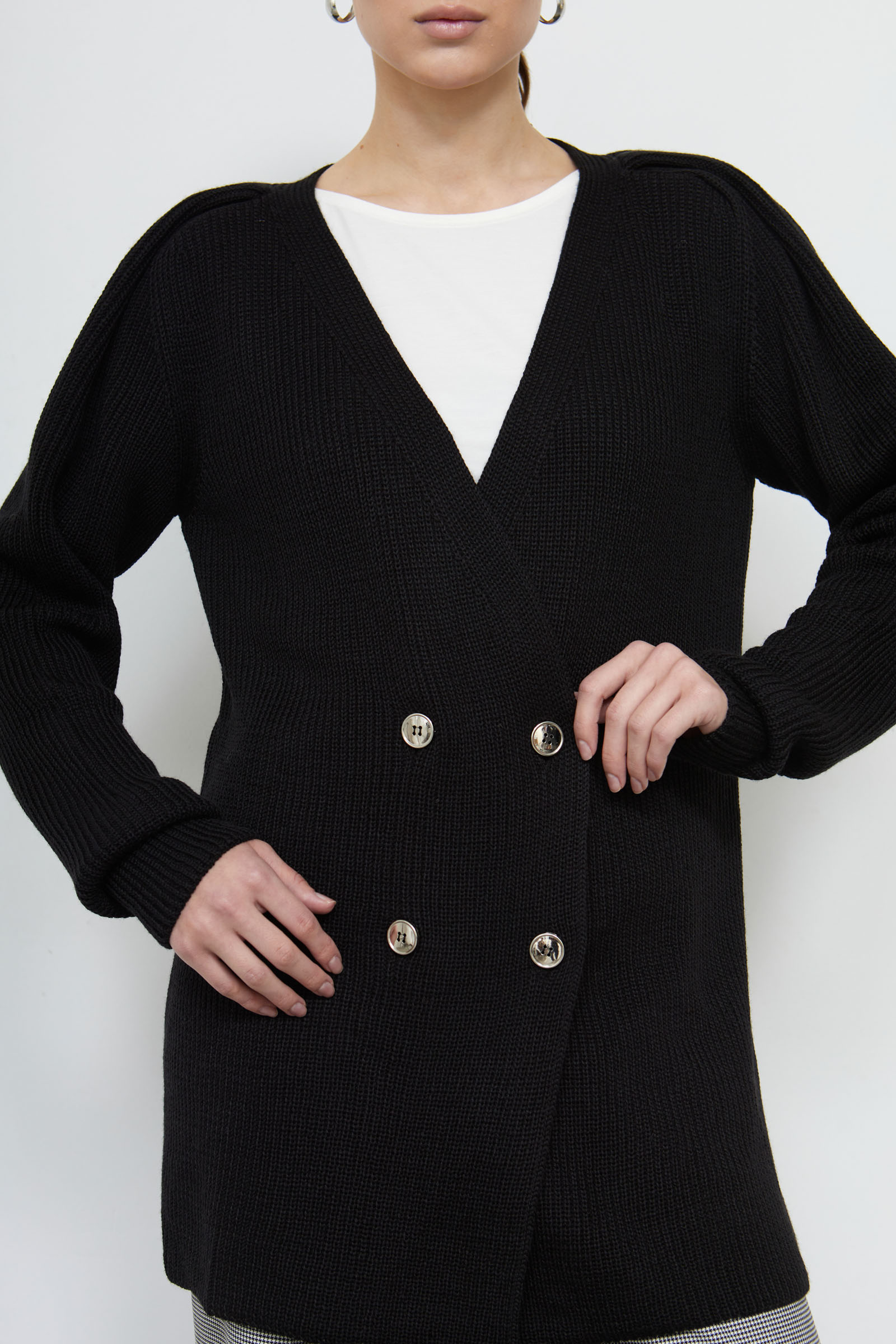 Кардиган из смесовой шерсти с двубортной застежкой и акцентными плечами.