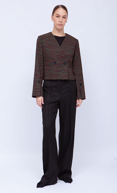 Удлиненный кардиган жаккардовой вязки с шерстью и контрастной внутренней стороной.