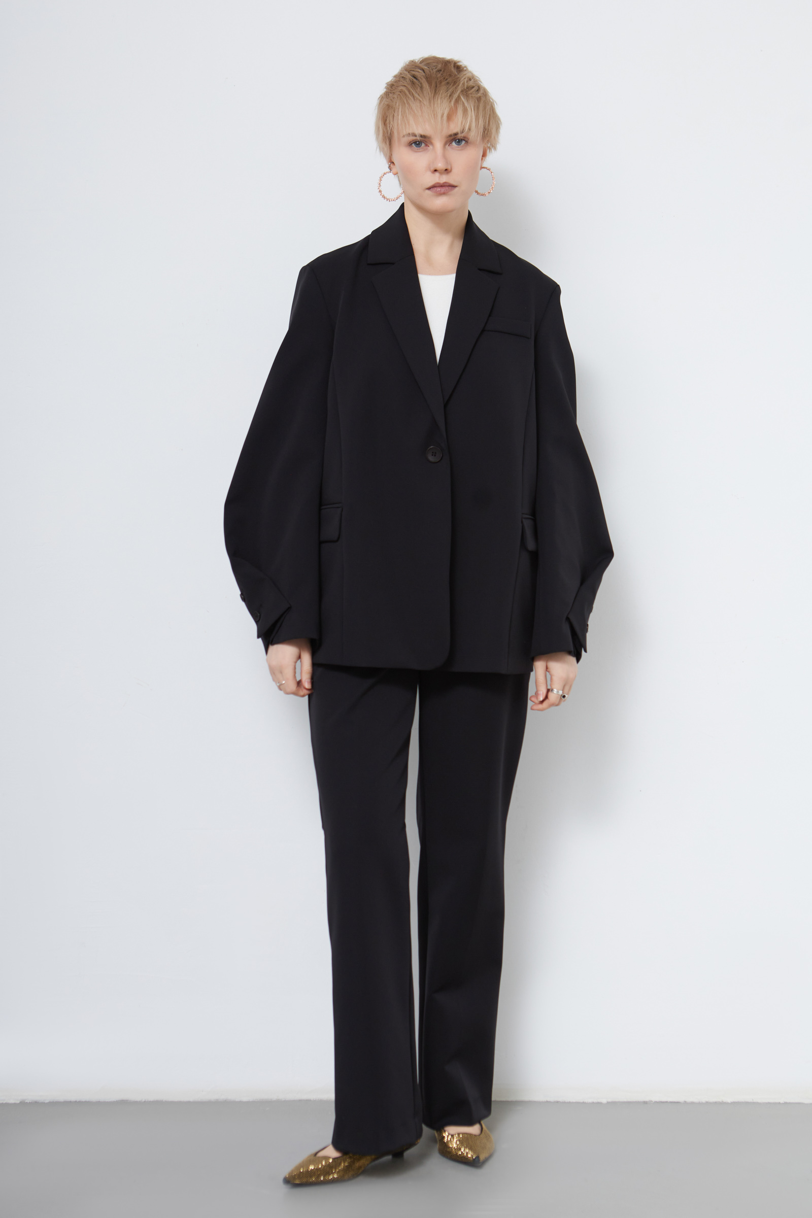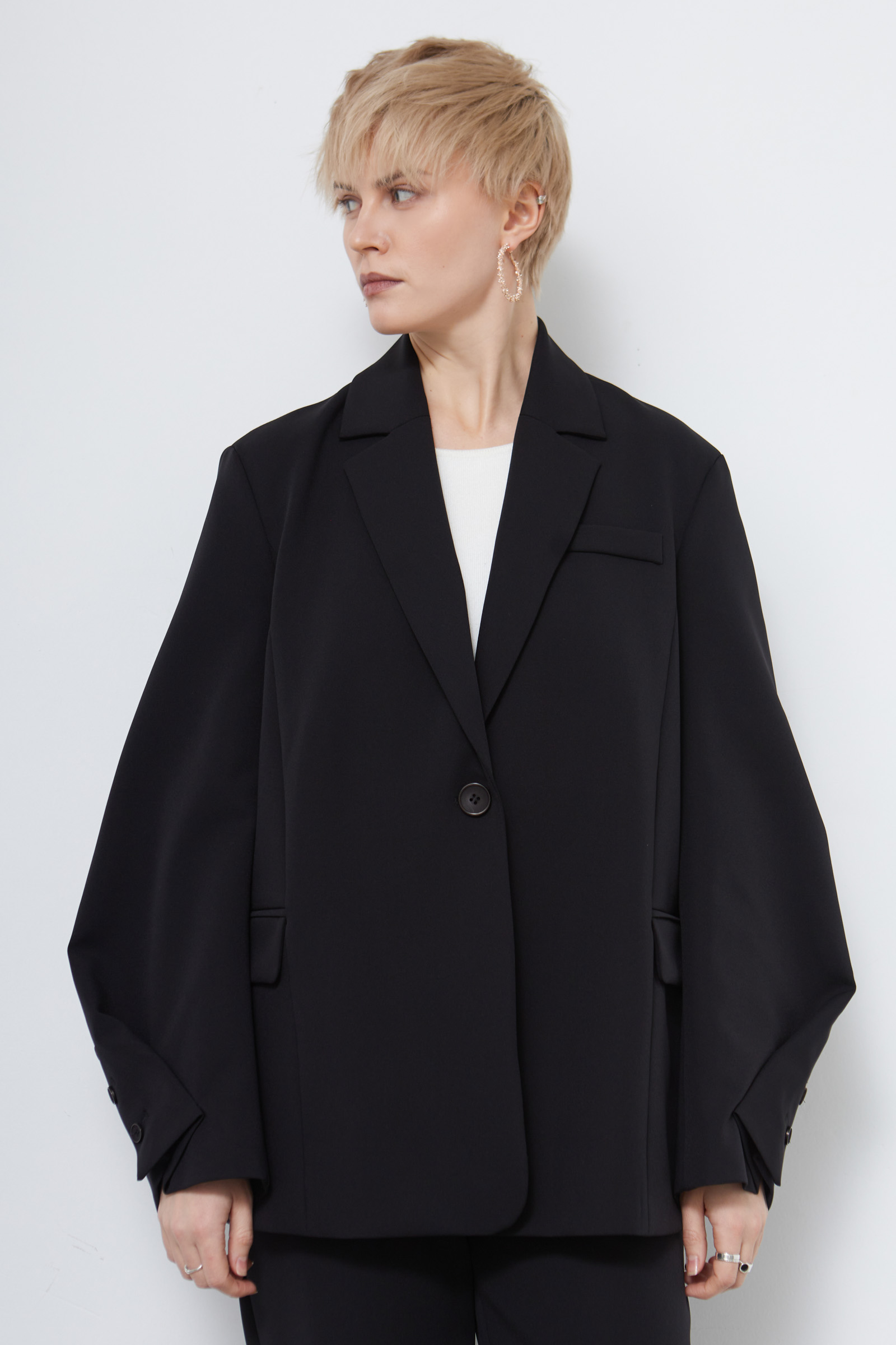 Жакет со скошенными рукавами по низу.