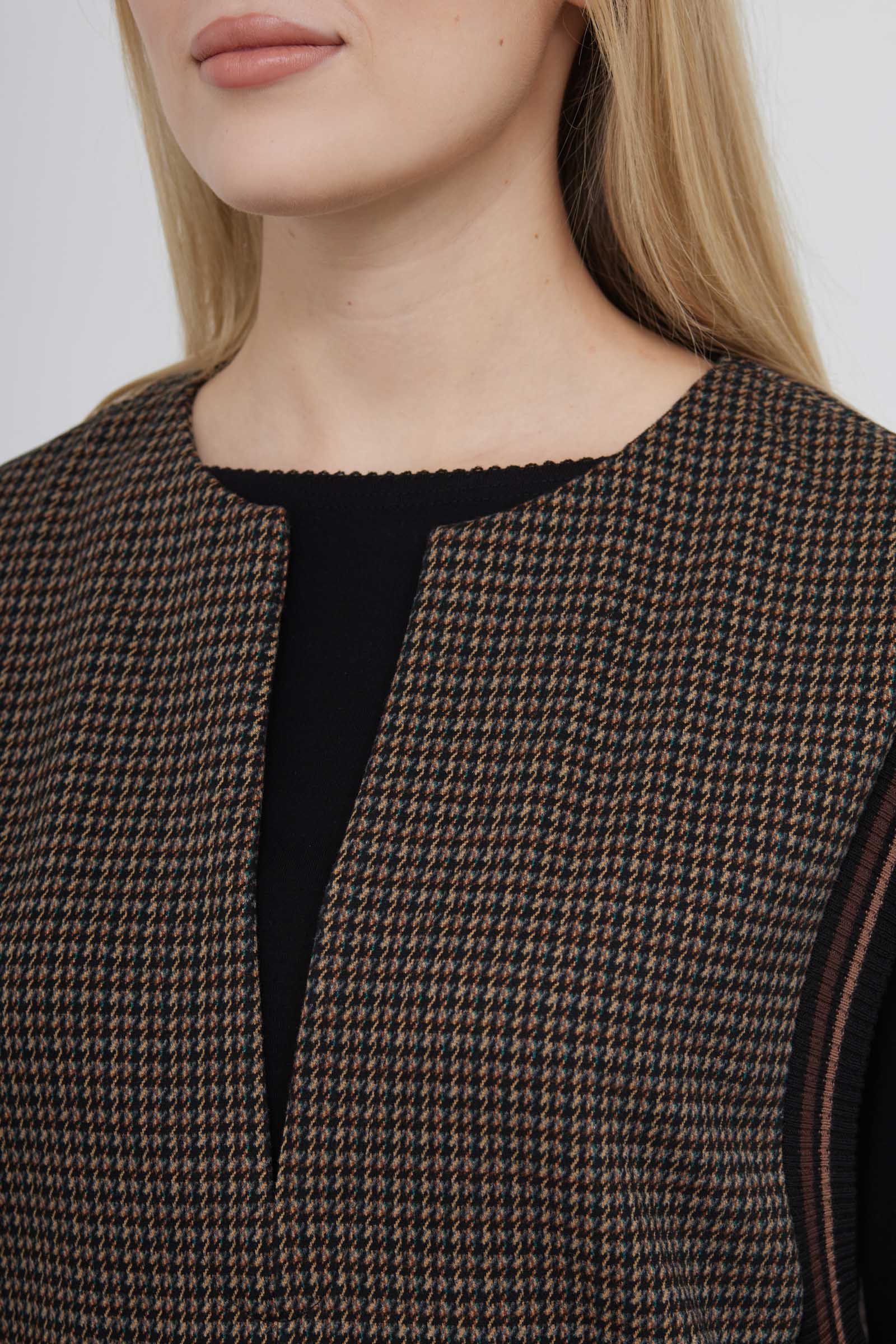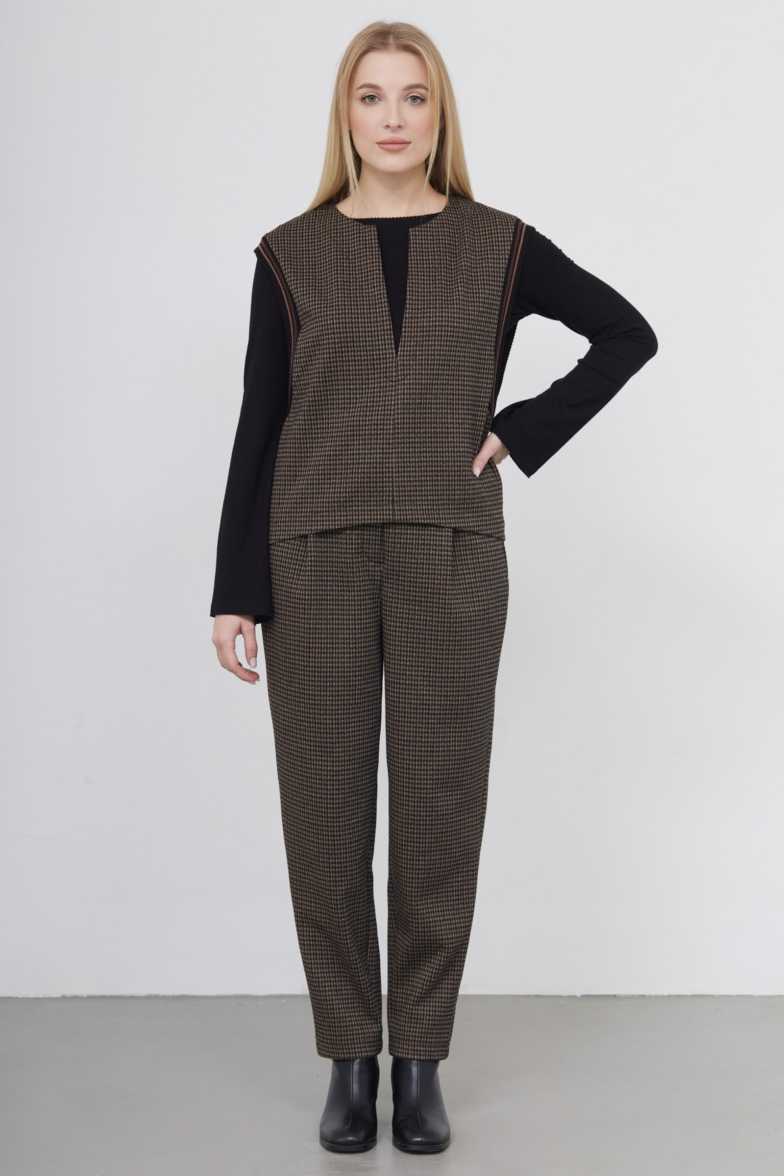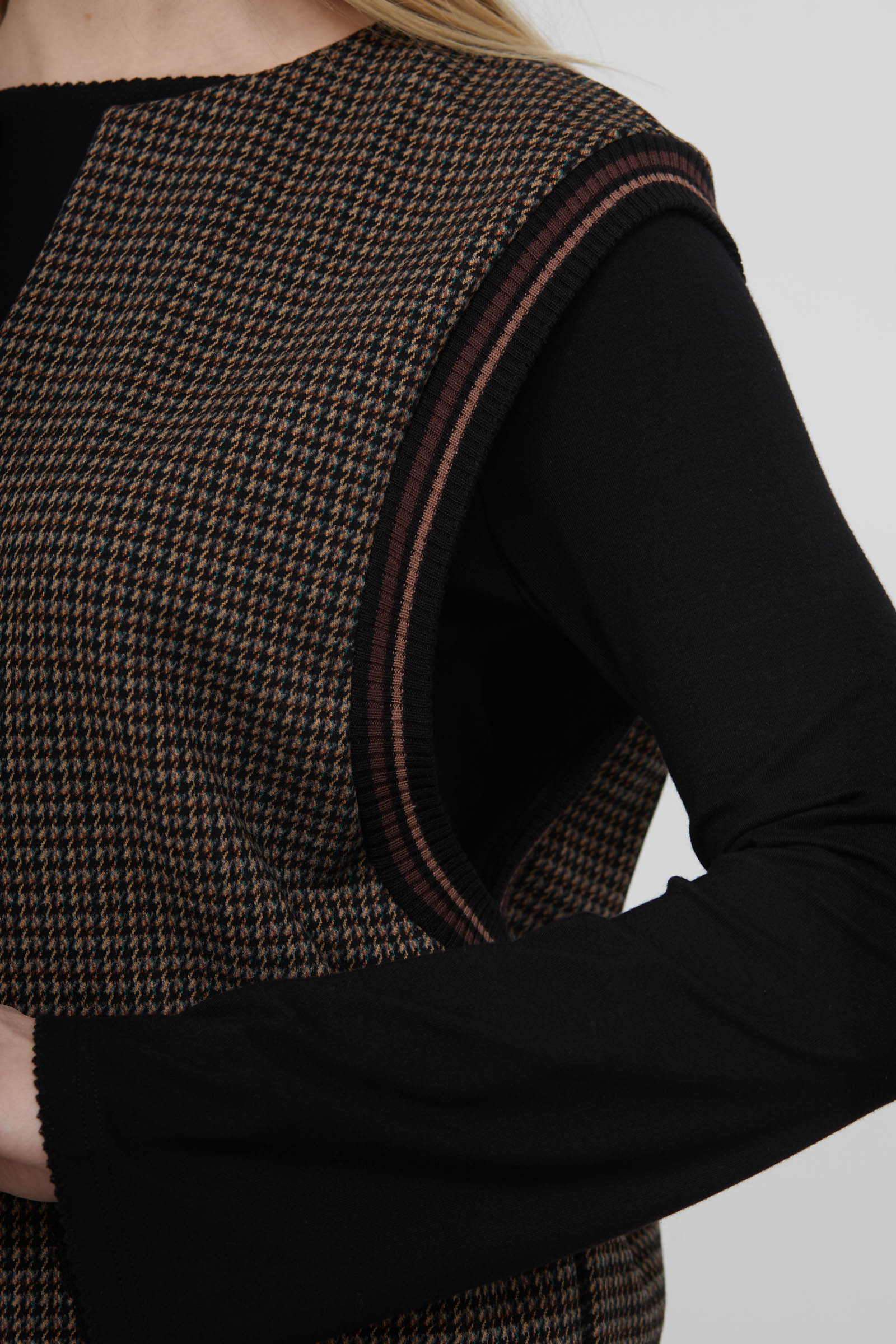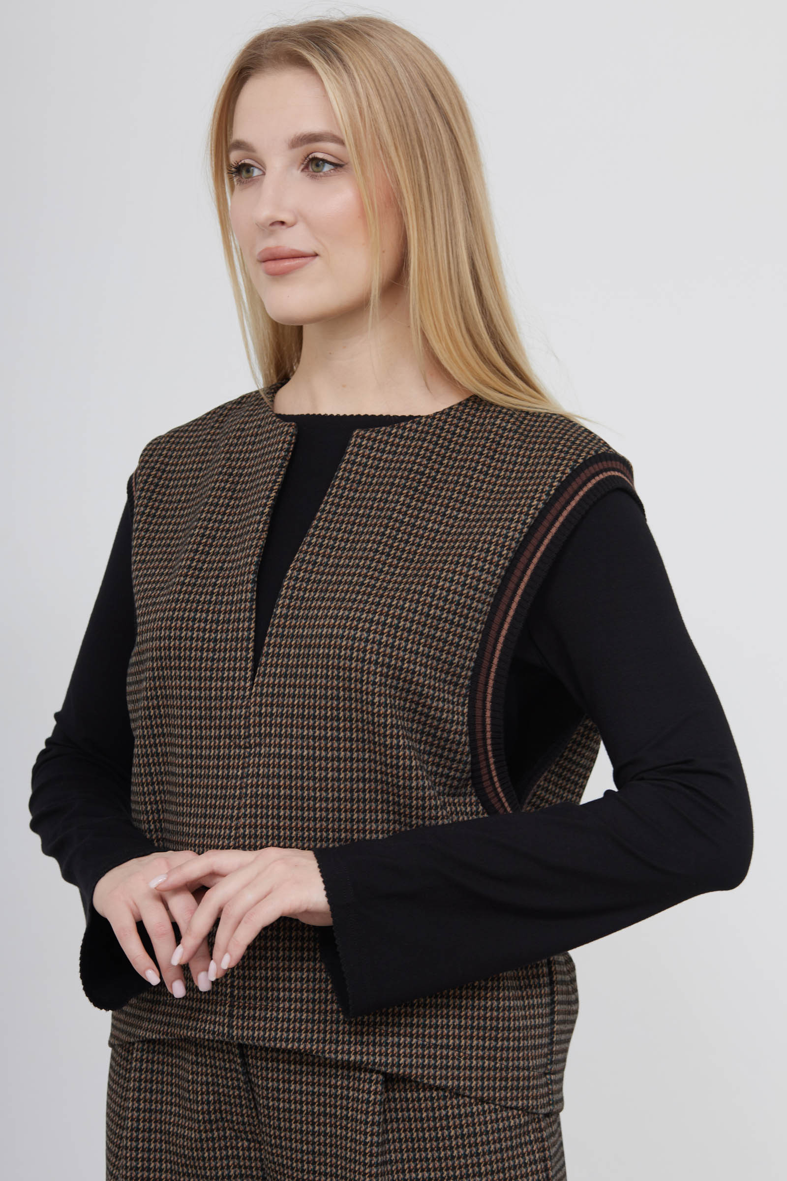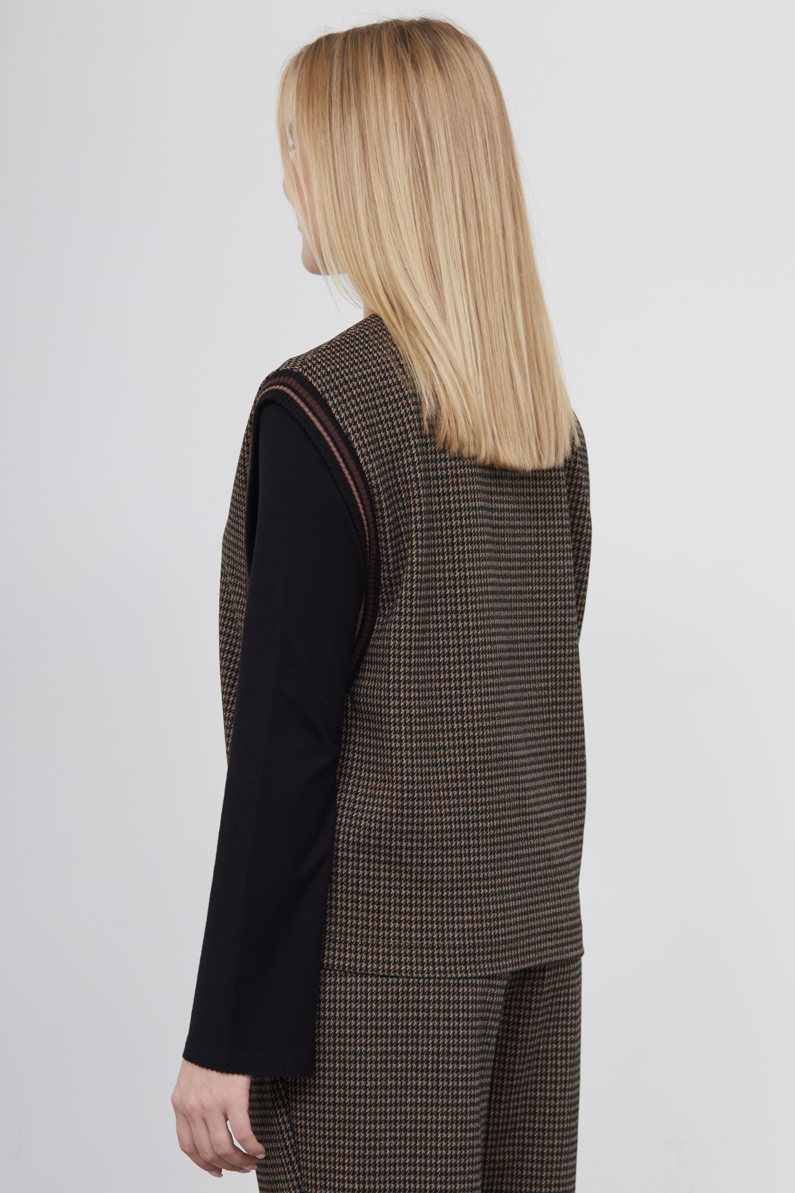 Жилет oversize из мягкой фланелевой ткани с контрастным рисунком и широкими проймами.