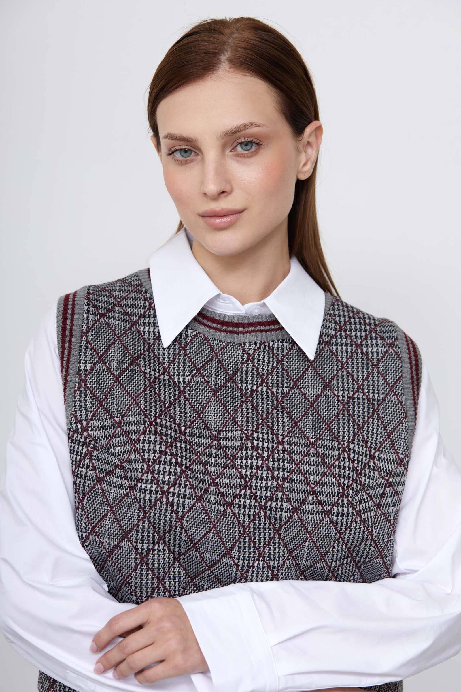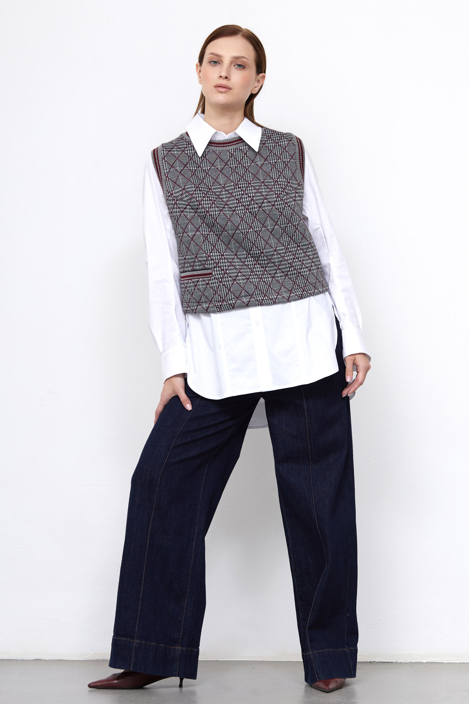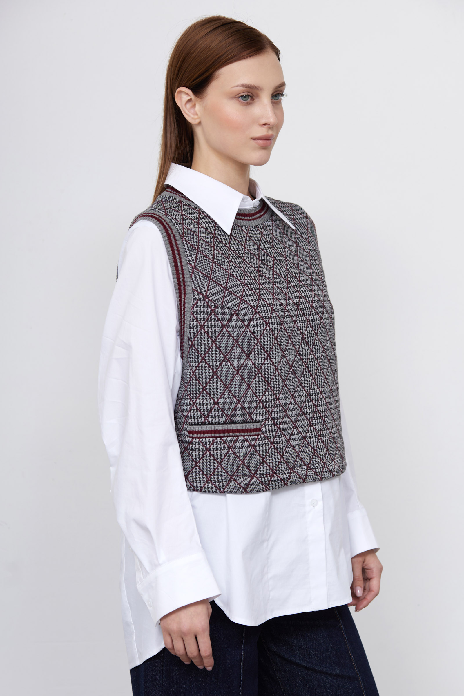 Жилет из мягкого стеганого трикотажа с принтом пье-де-пуль.