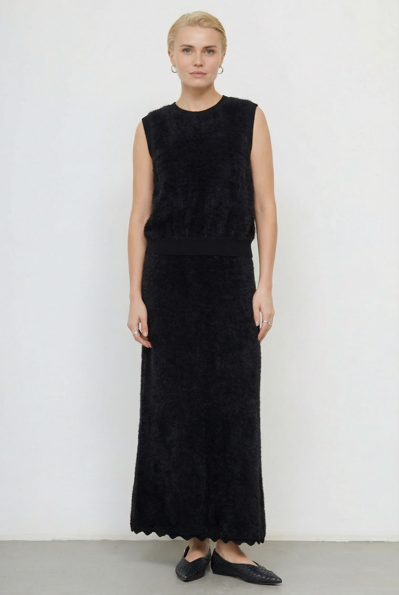 Жилет из пушистого трикотажа с отделкой из рибаны.